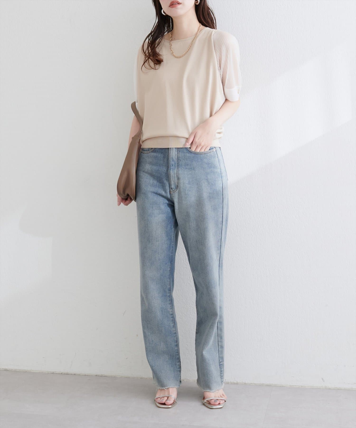シアー素材を袖に採用し、程よい透け感で軽やかさと上品さをプラスします。