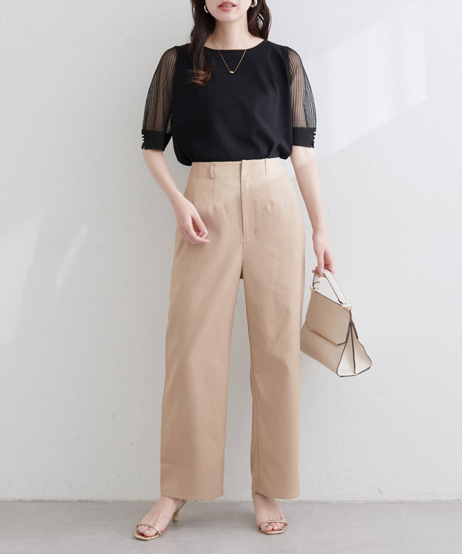 テーパードパンツやフレアパンツと合わせて、オフィスにも対応できるきちんとスタイルに。