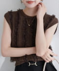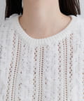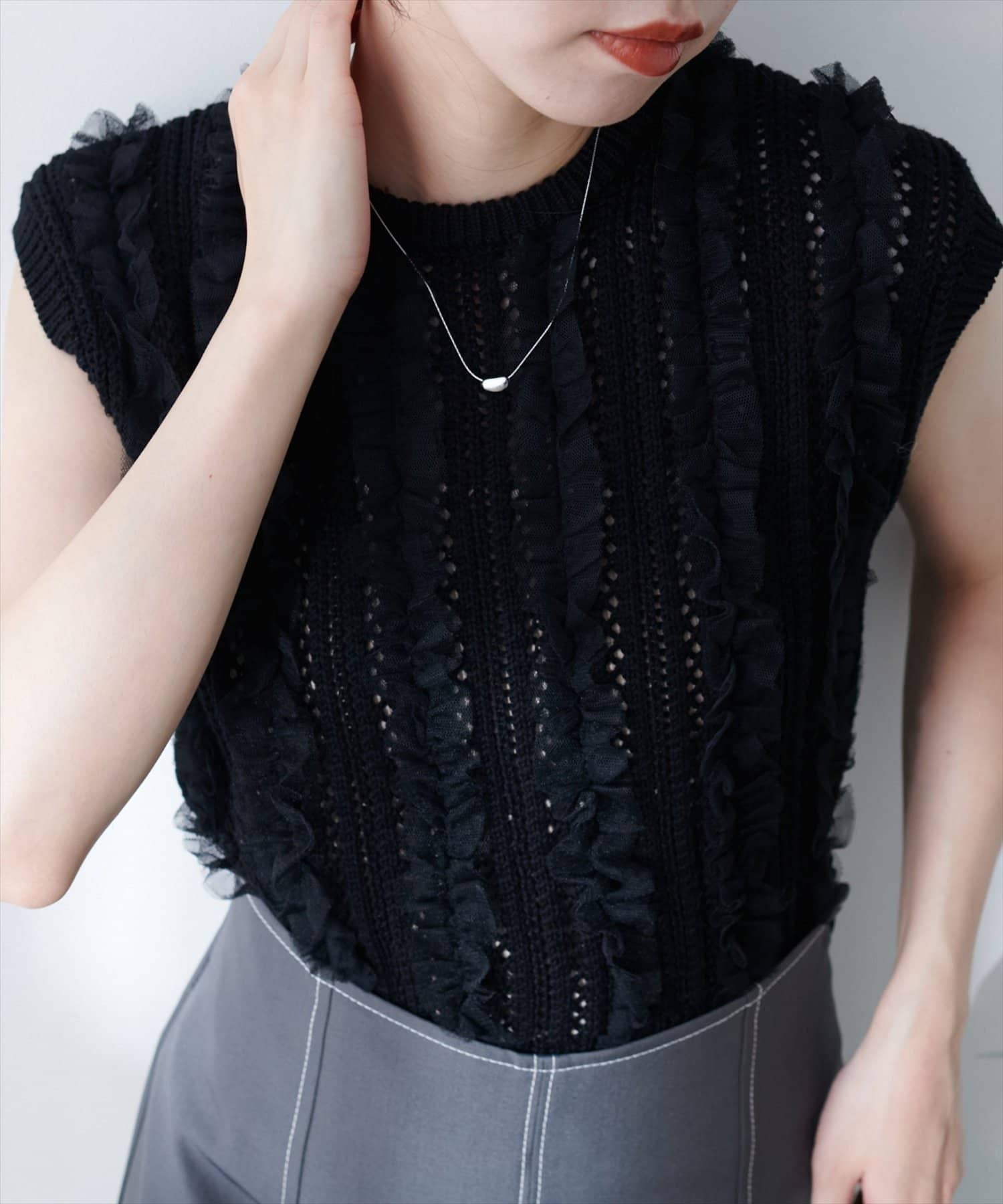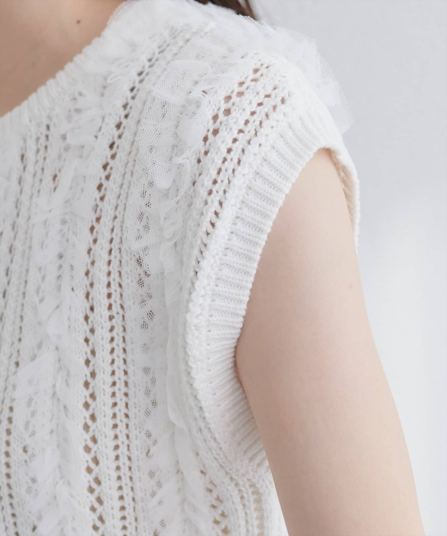 繊細な透かし編みニットに、ふんわりと柔らかなチュールを組み合わせた