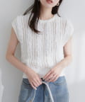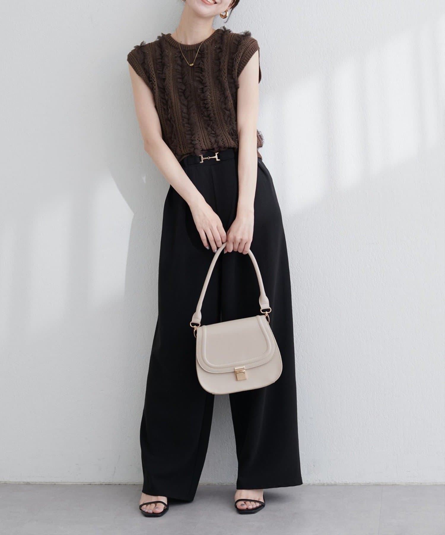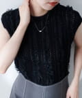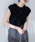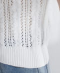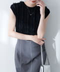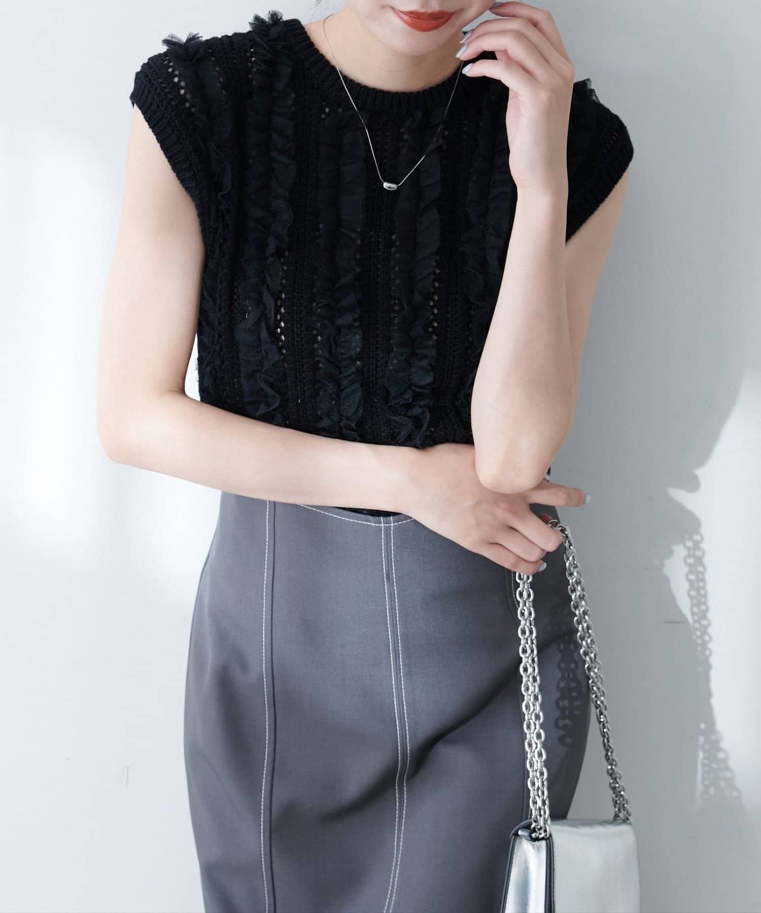 重くなりがちなニットスタイルに軽やかさを与え、涼しげな印象を与えます。
