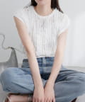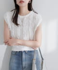 他にはないデザインが魅力のブラウス。繊細な透かし柄が、程よい肌見せと抜け感をプラス。
