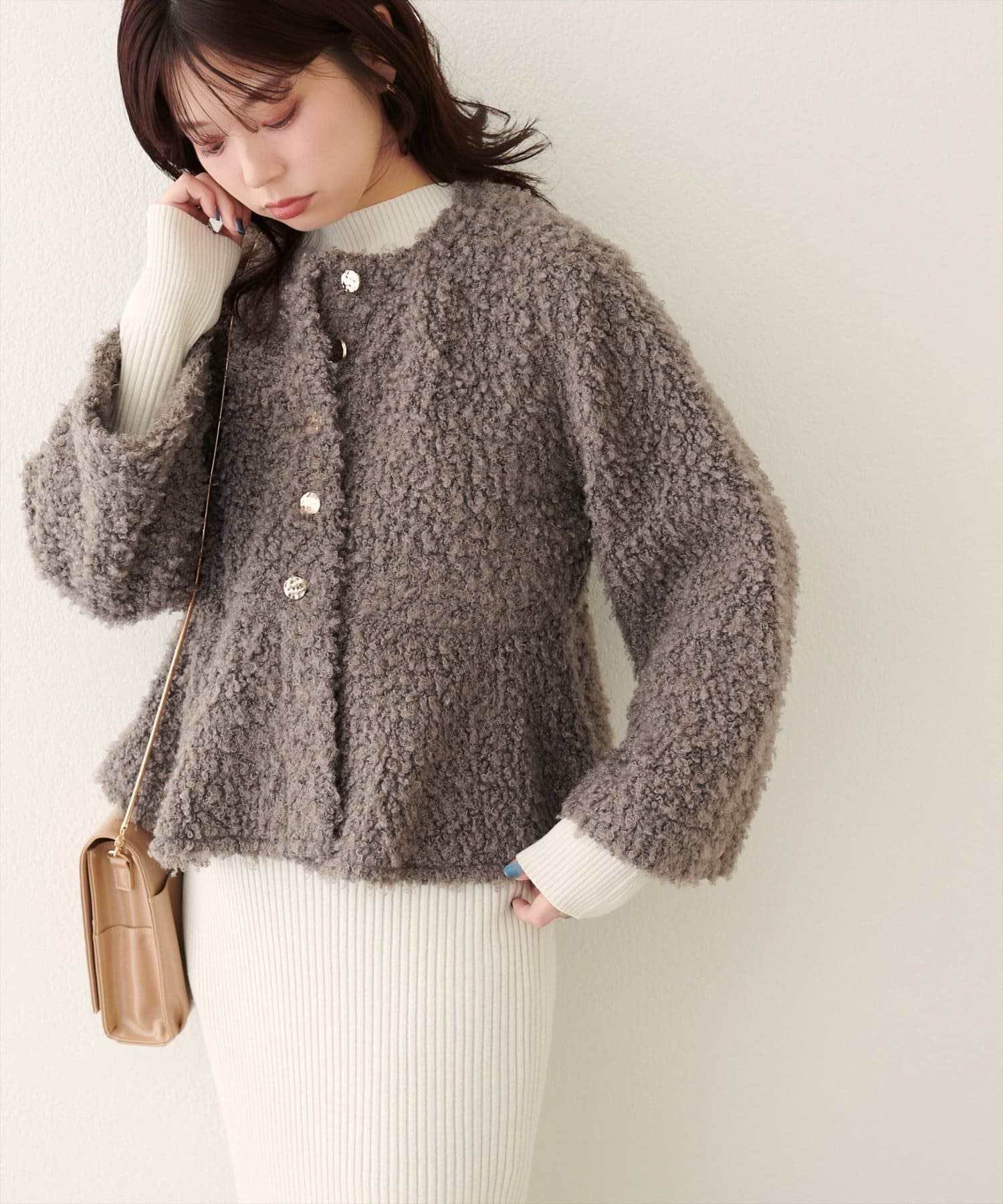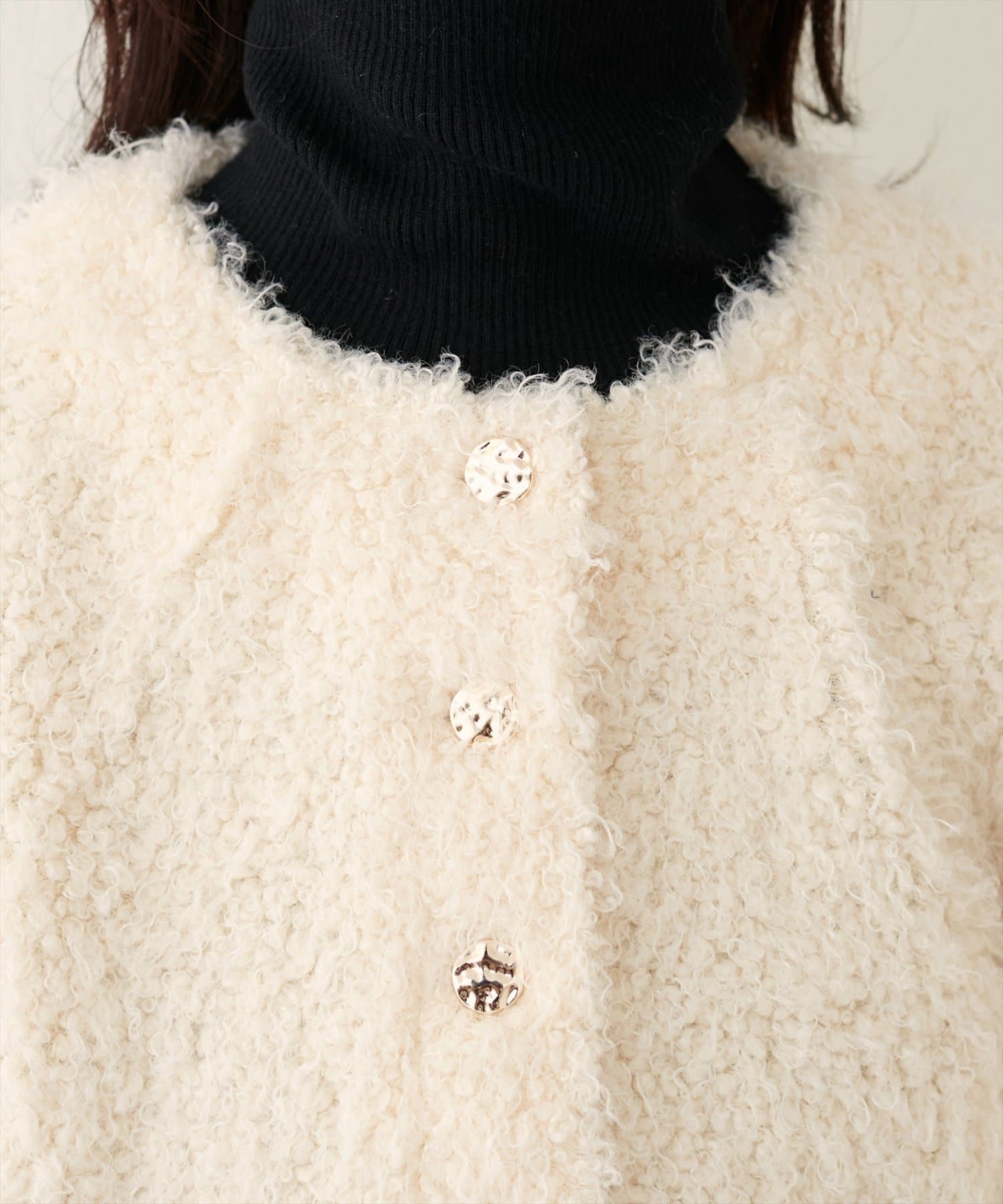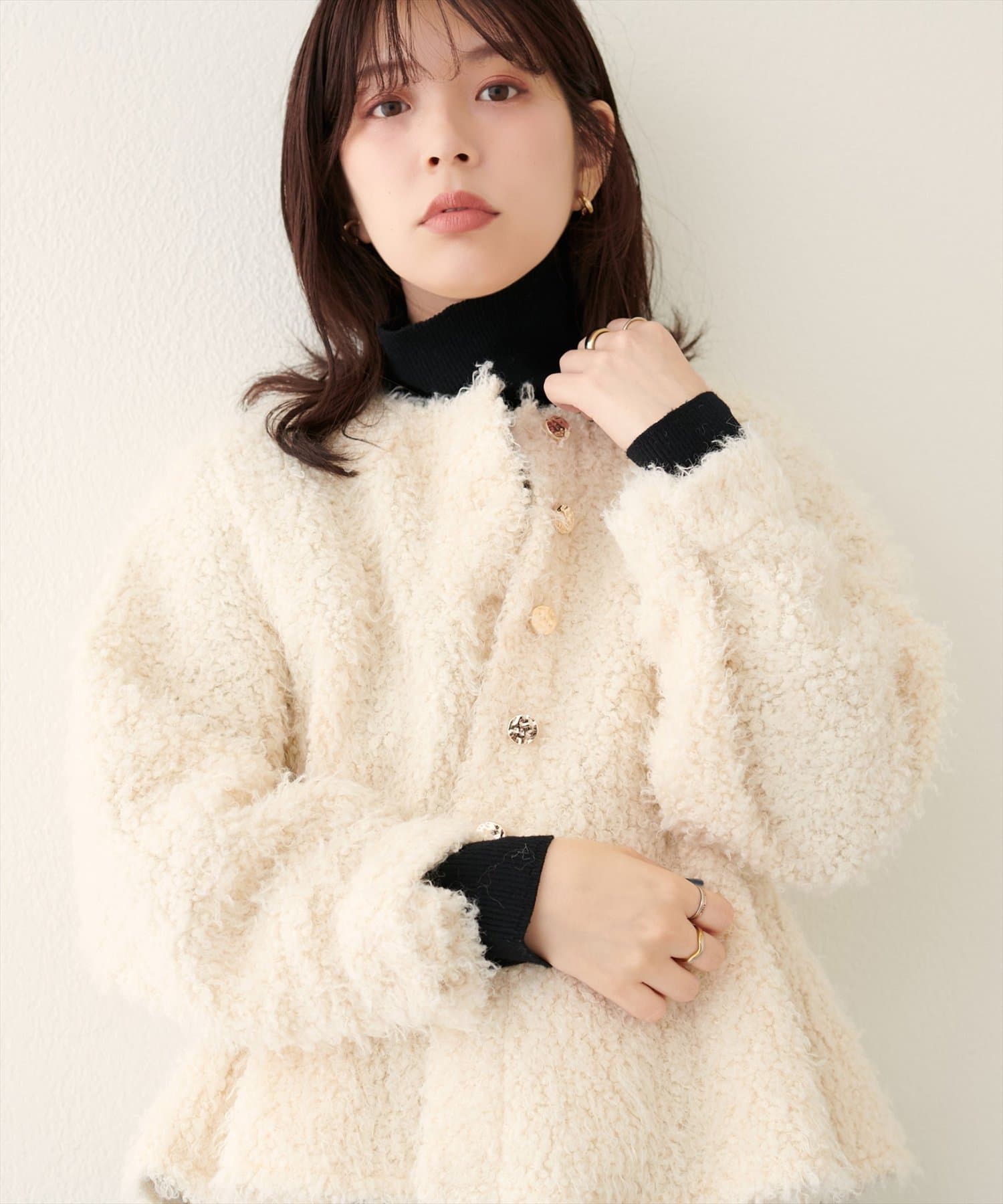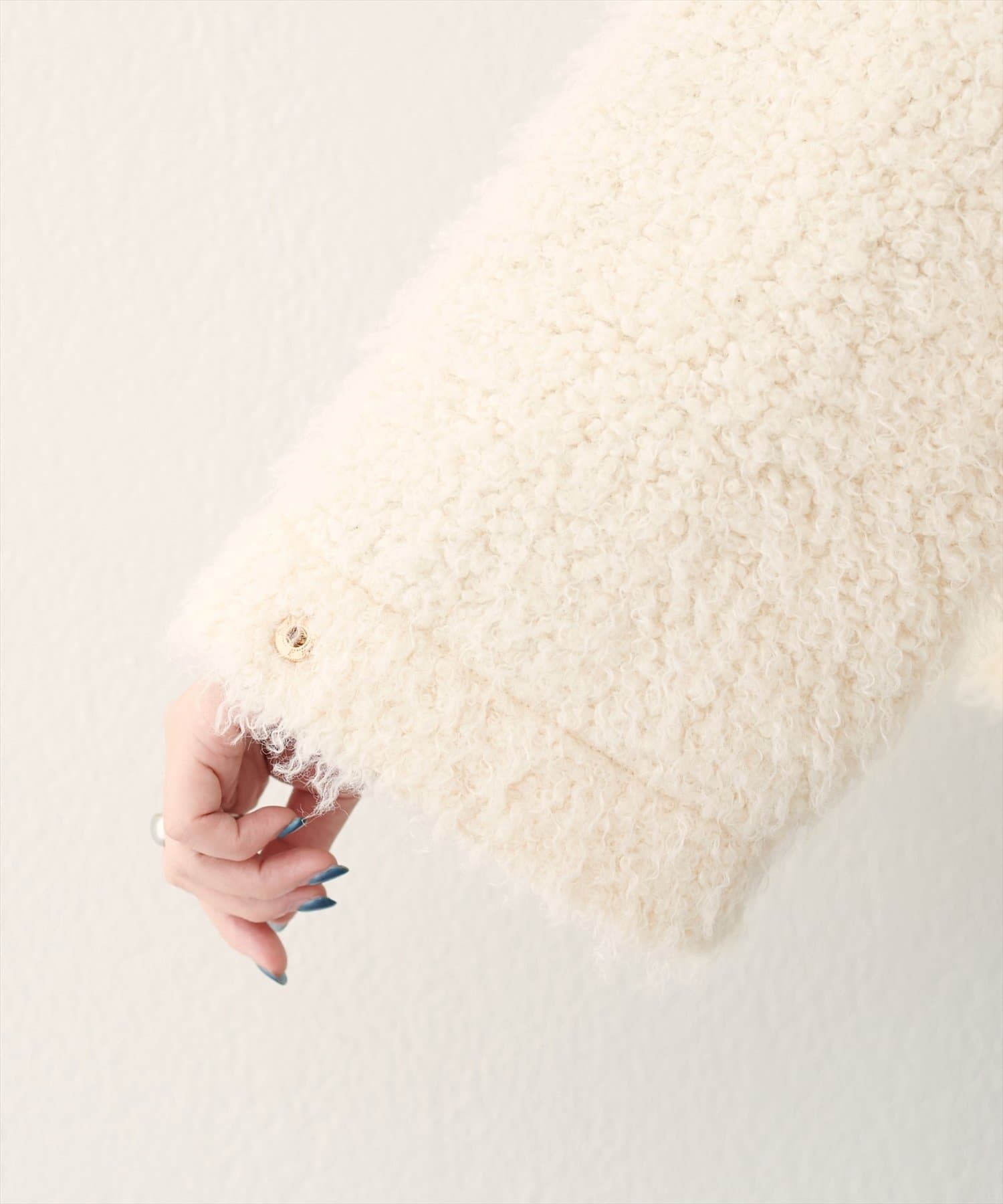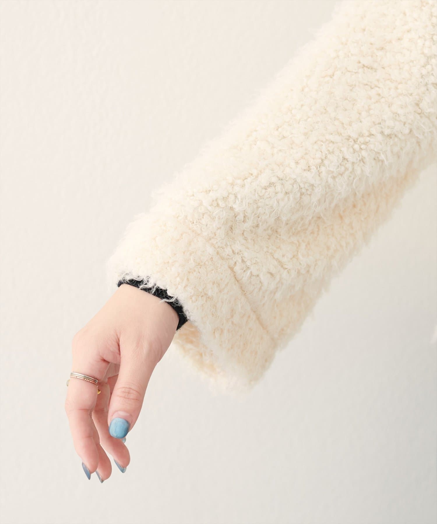 まるでぬいぐるみのような、ふわふわのボア素材が、見た目にもあたたかく、思わず触れたくなる可愛らしさ。