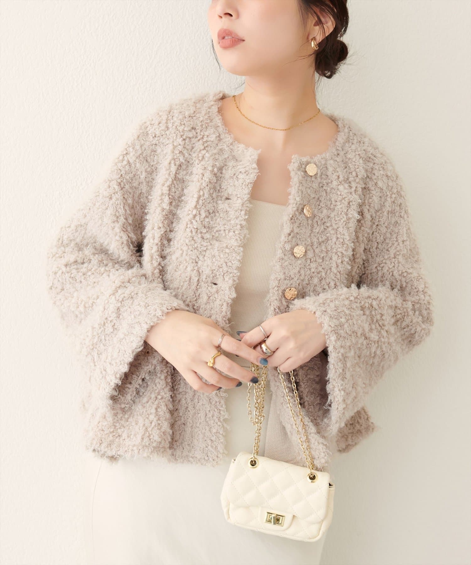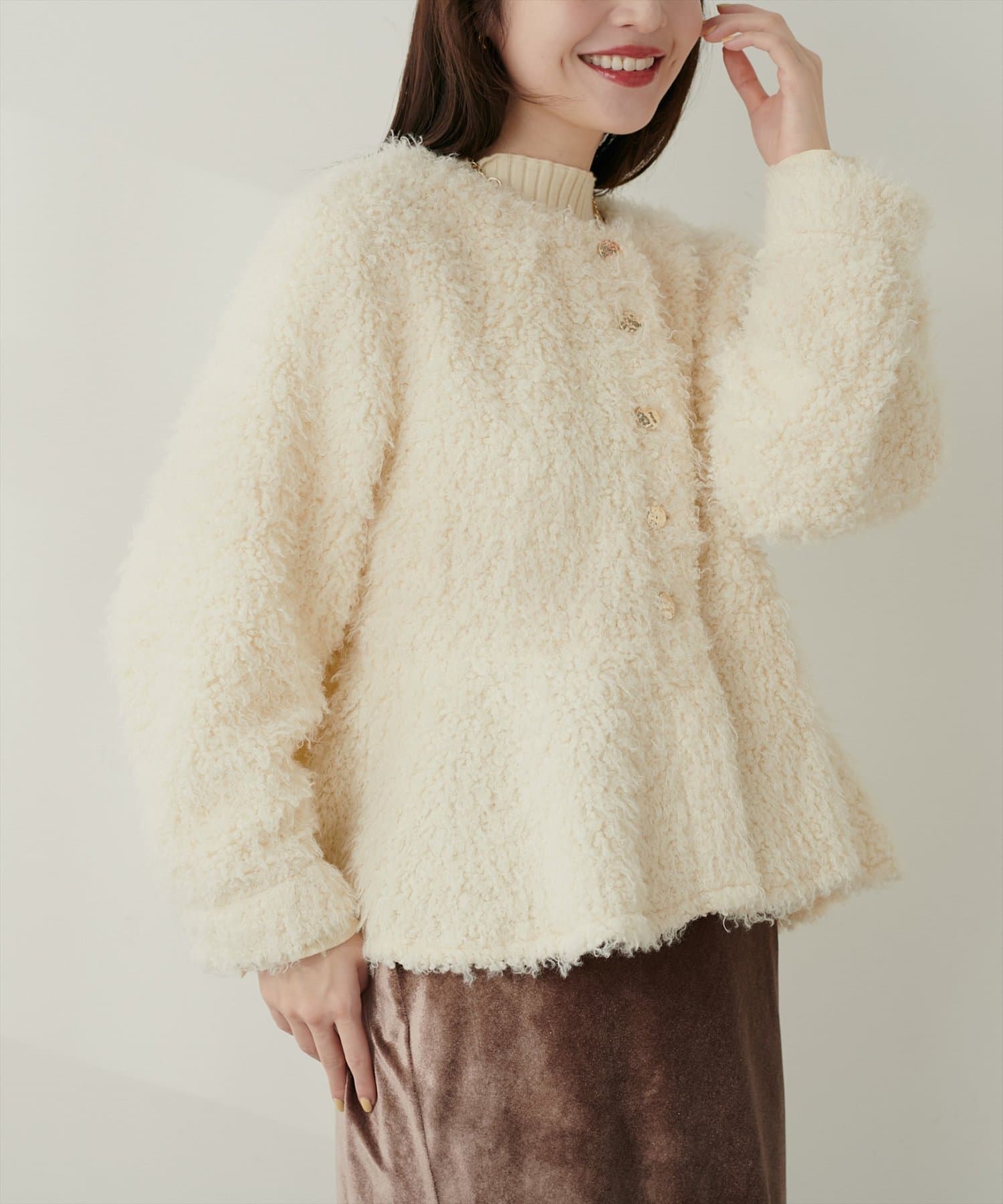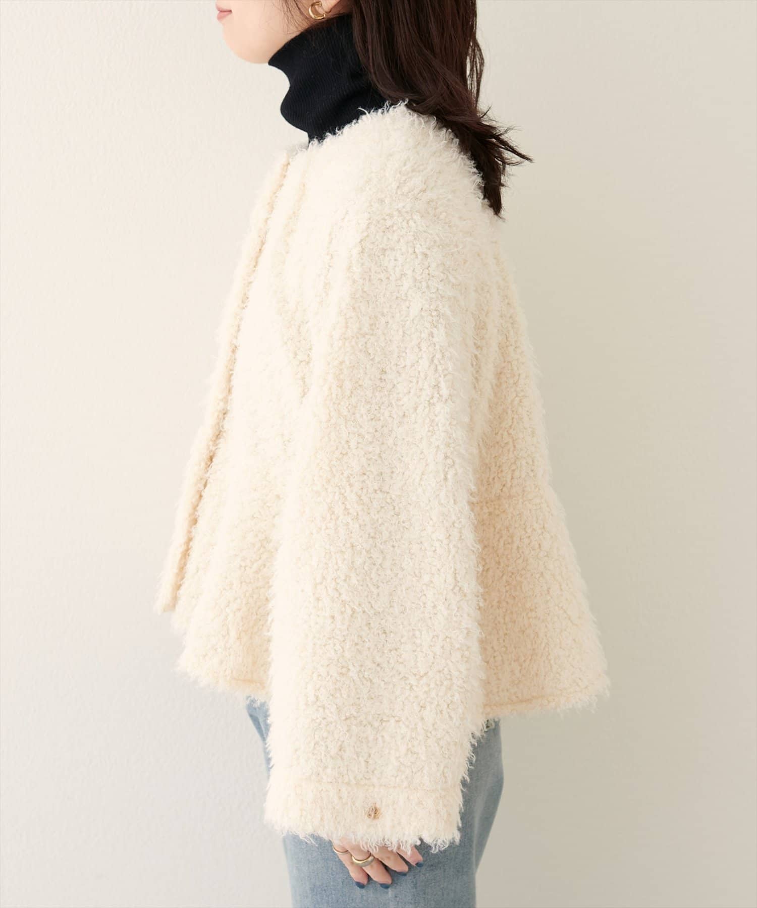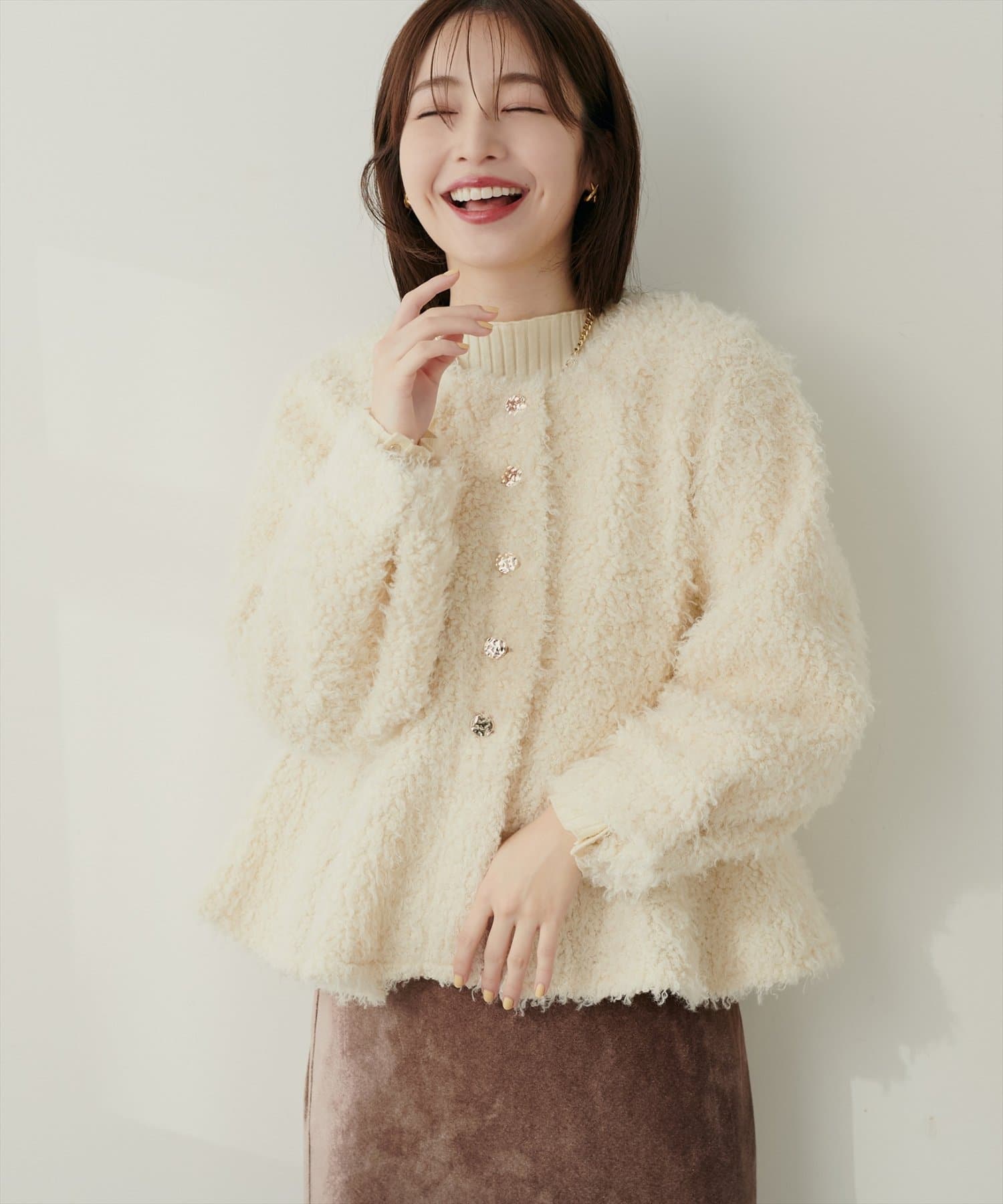まるでぬいぐるみのような、ふわふわのボア素材が、見た目にもあたたかく、思わず触れたくなる可愛らしさ。
