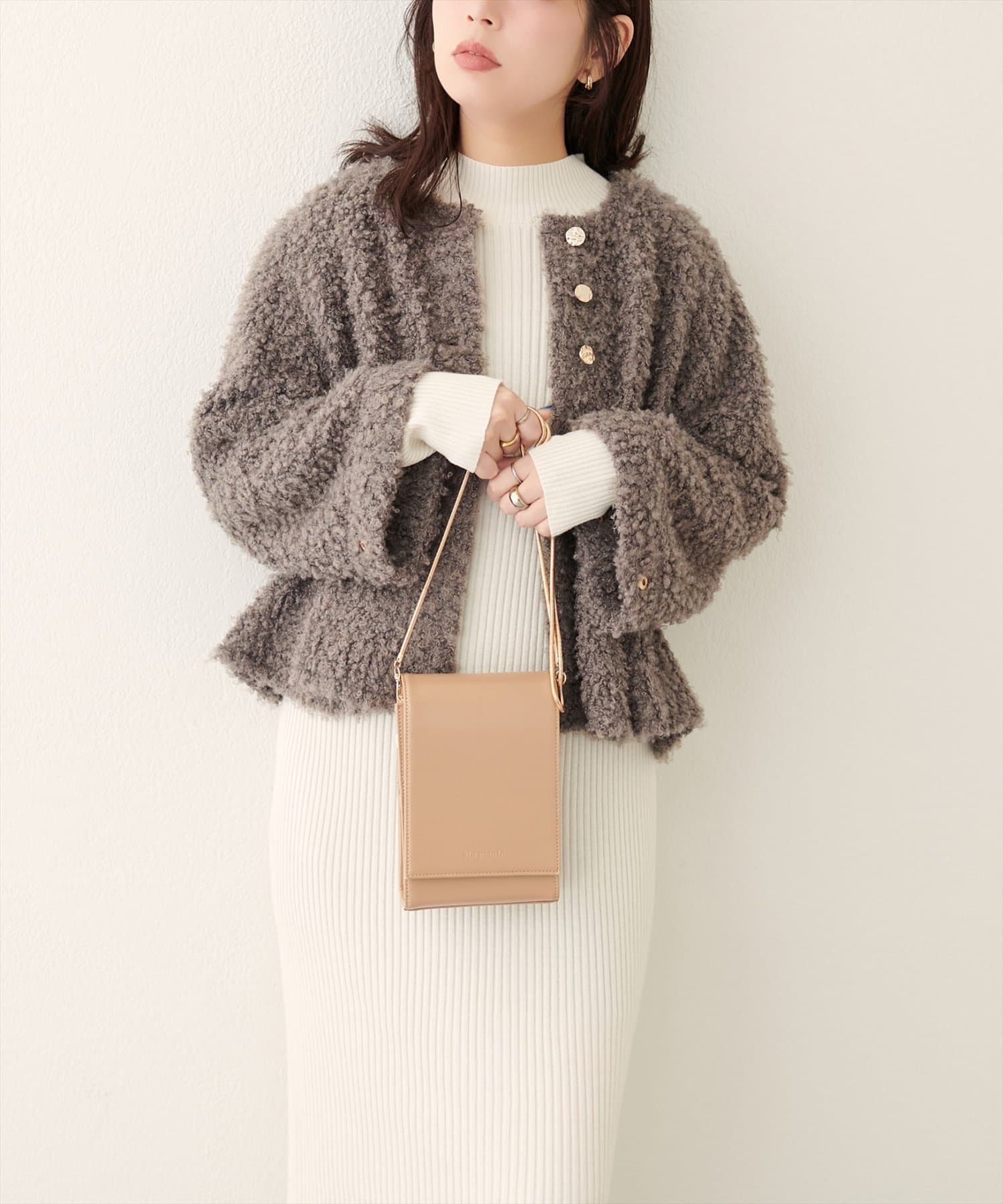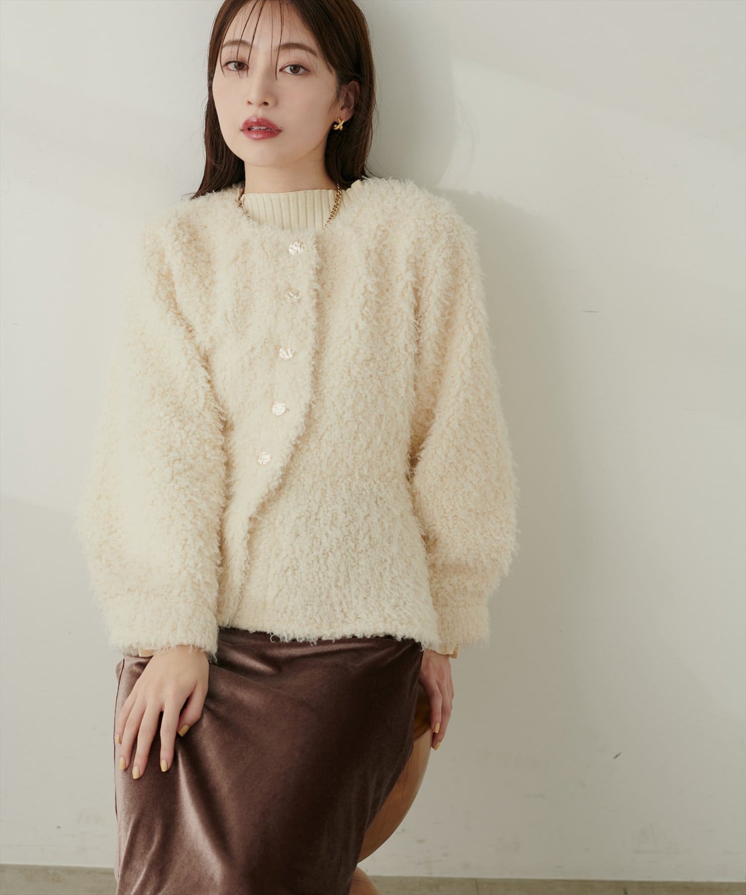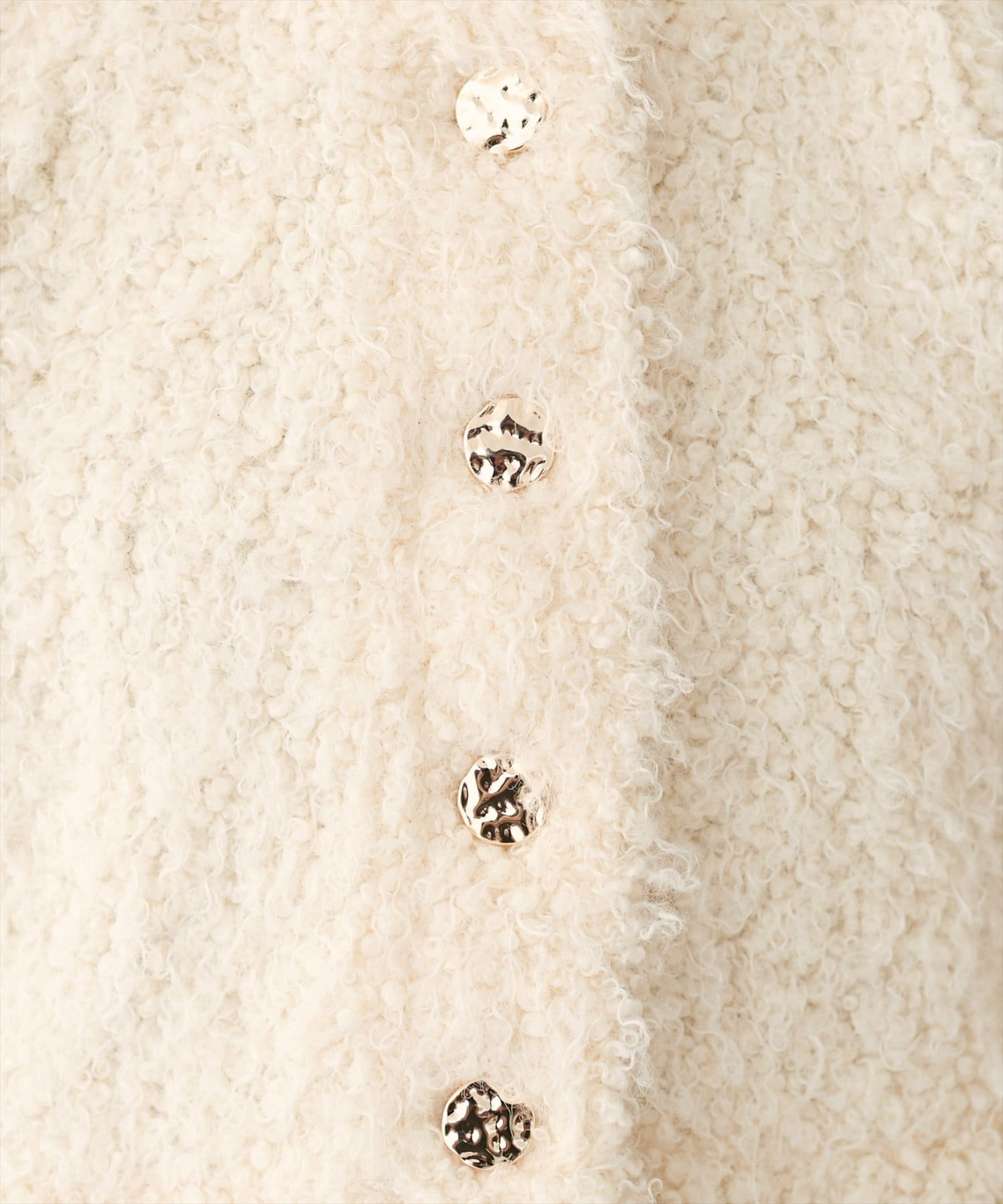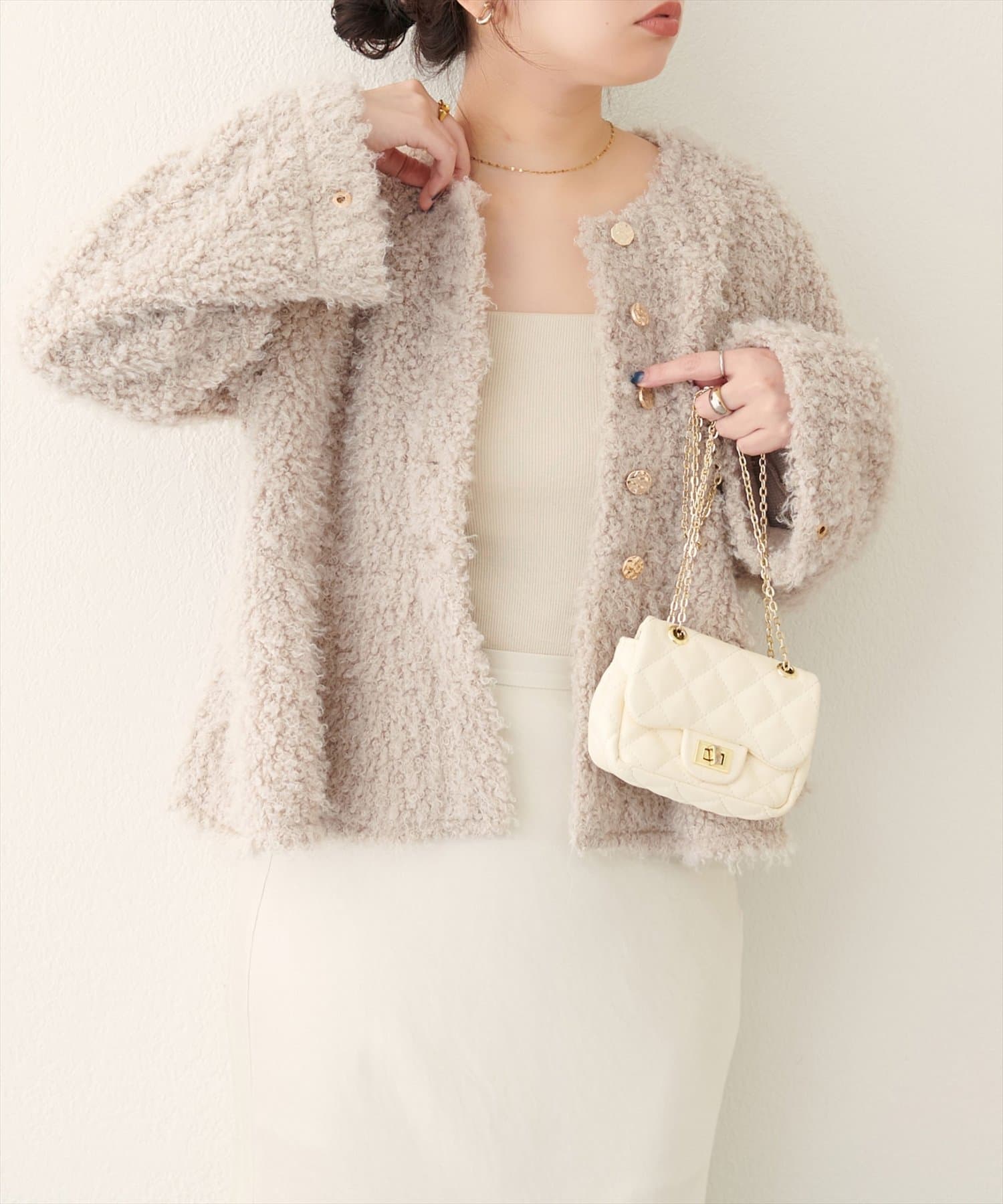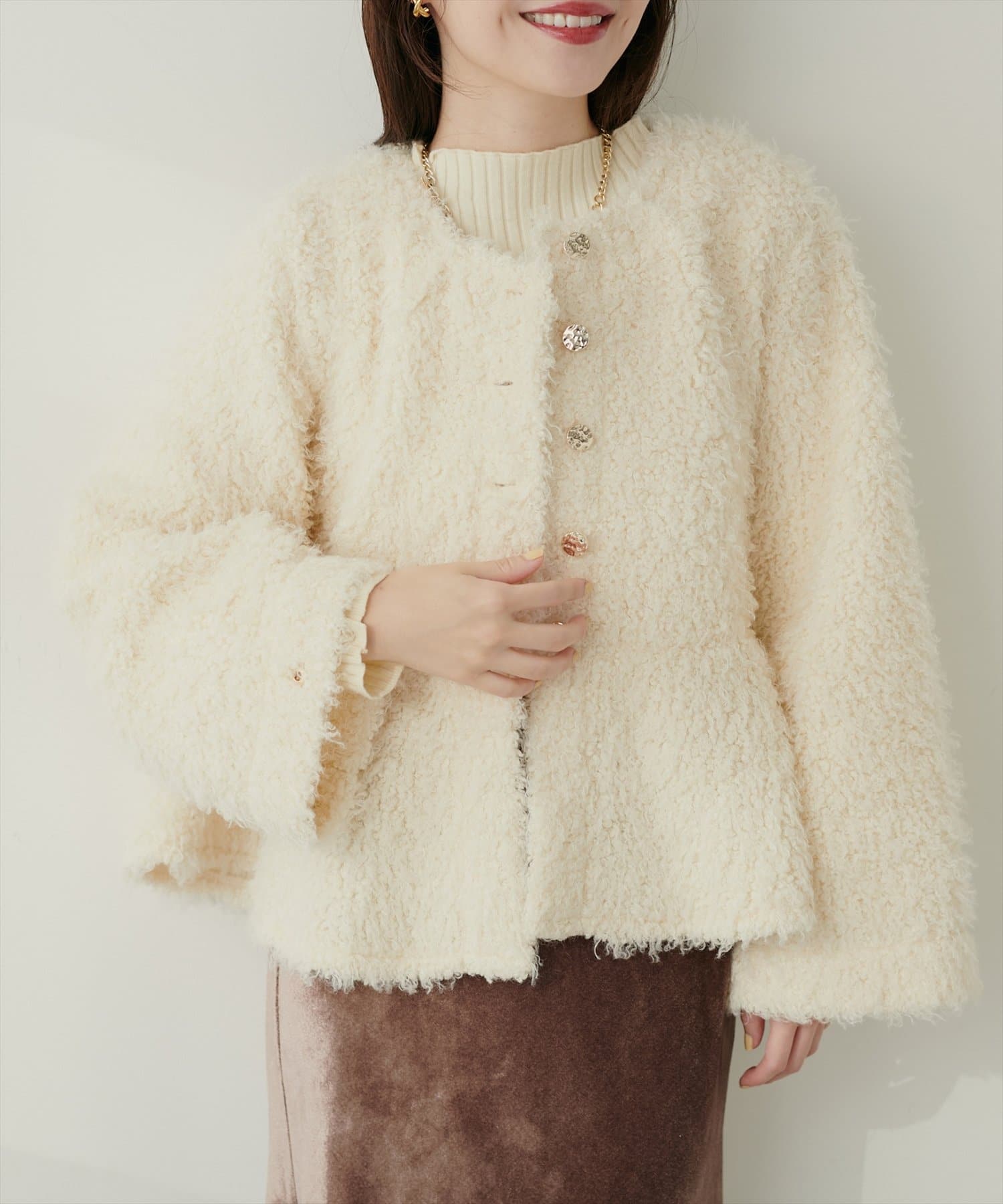まるでぬいぐるみのような、ふわふわのボア素材が、見た目にもあたたかく、思わず触れたくなる可愛らしさ。