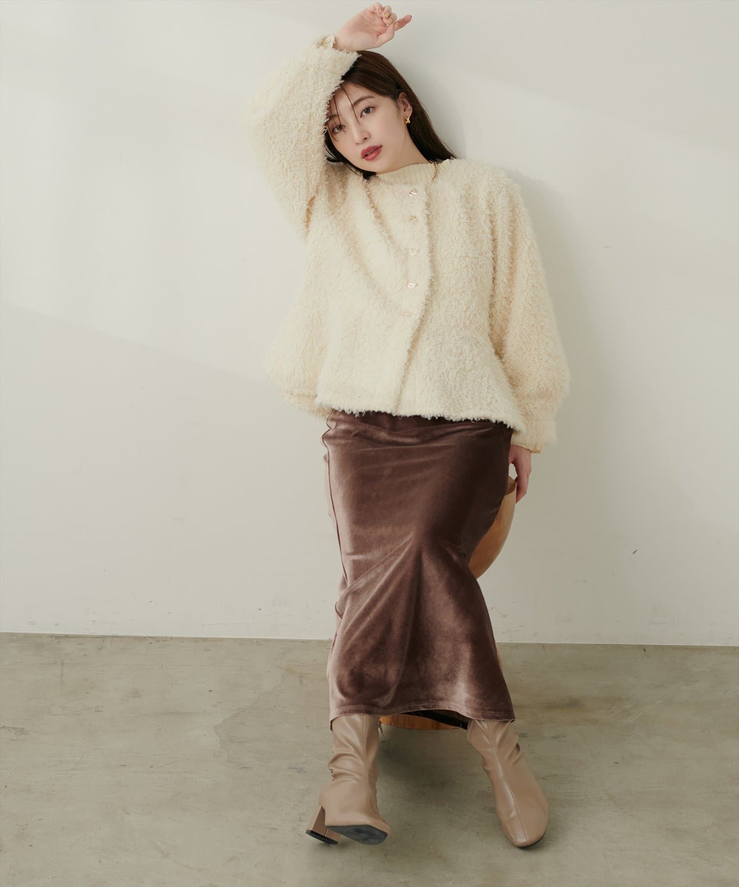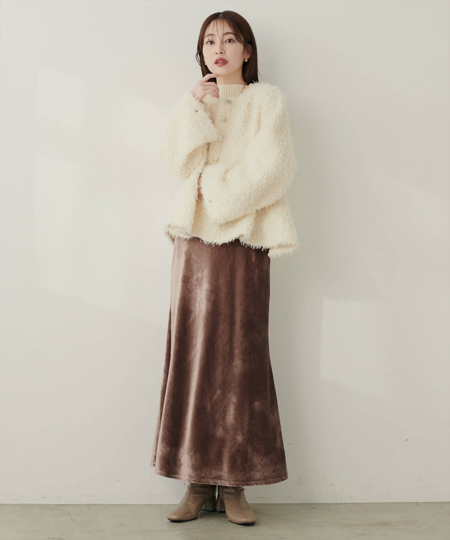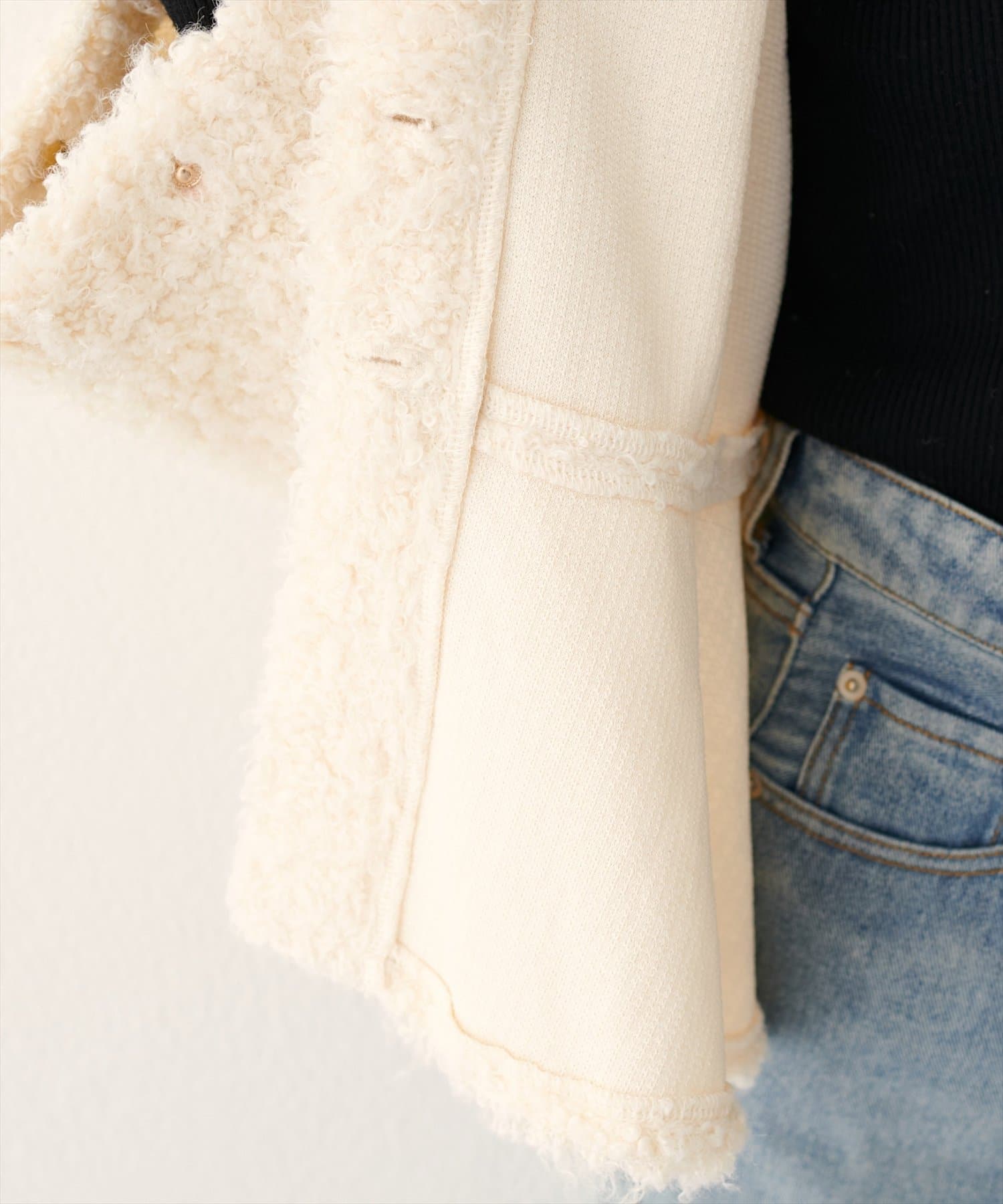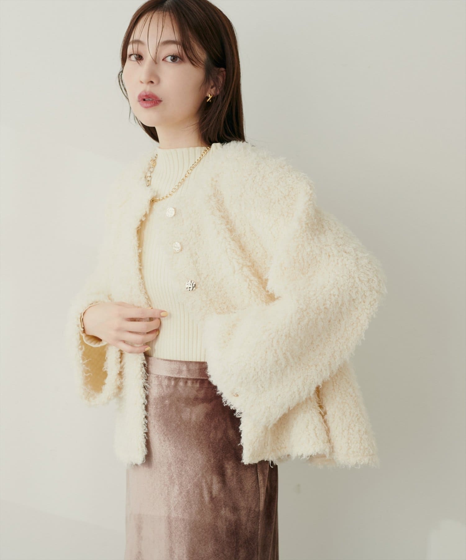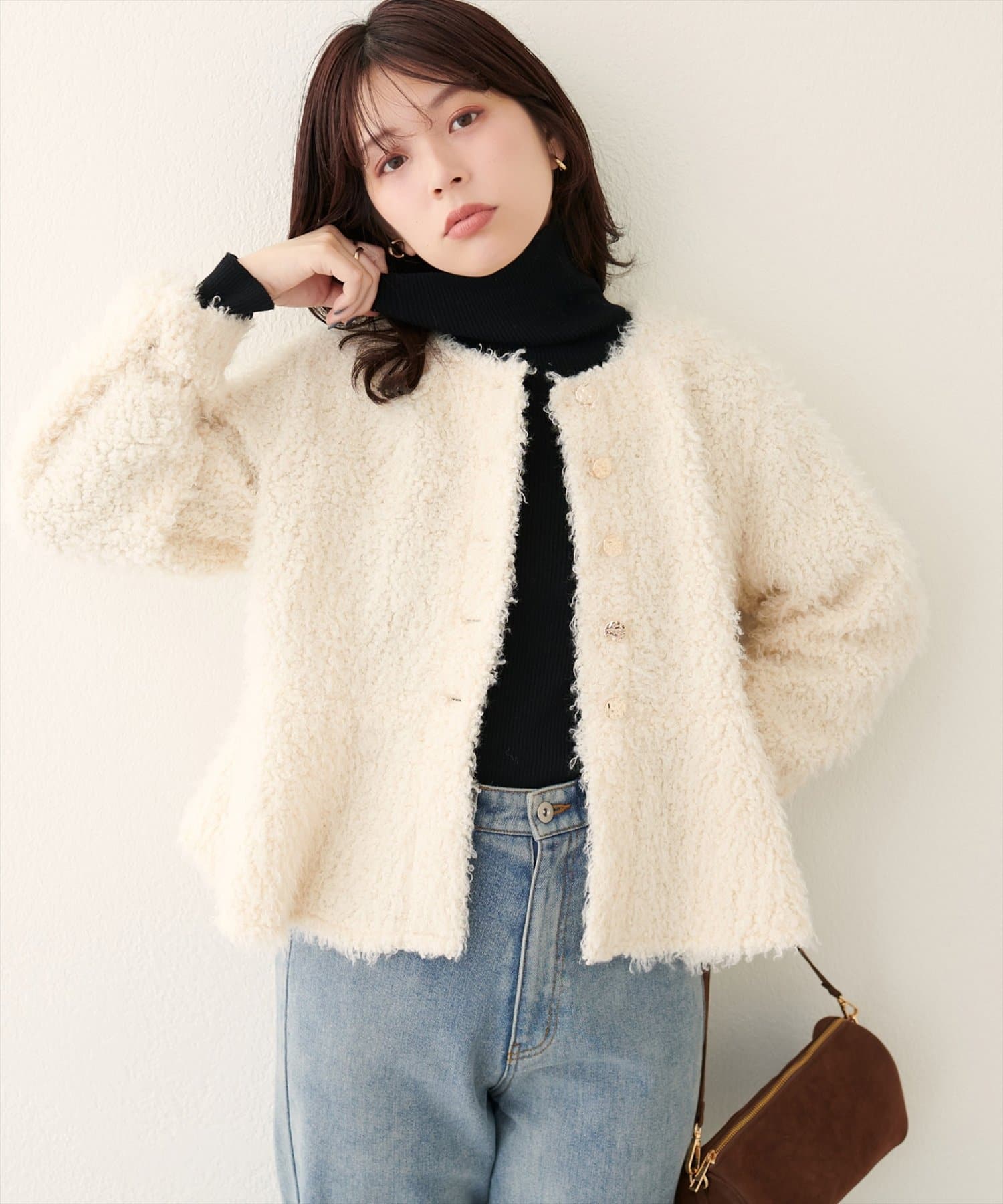 デニムと合わせたカジュアルスタイルも、ボア素材の持つ上品さで、大人っぽく仕上がります。
