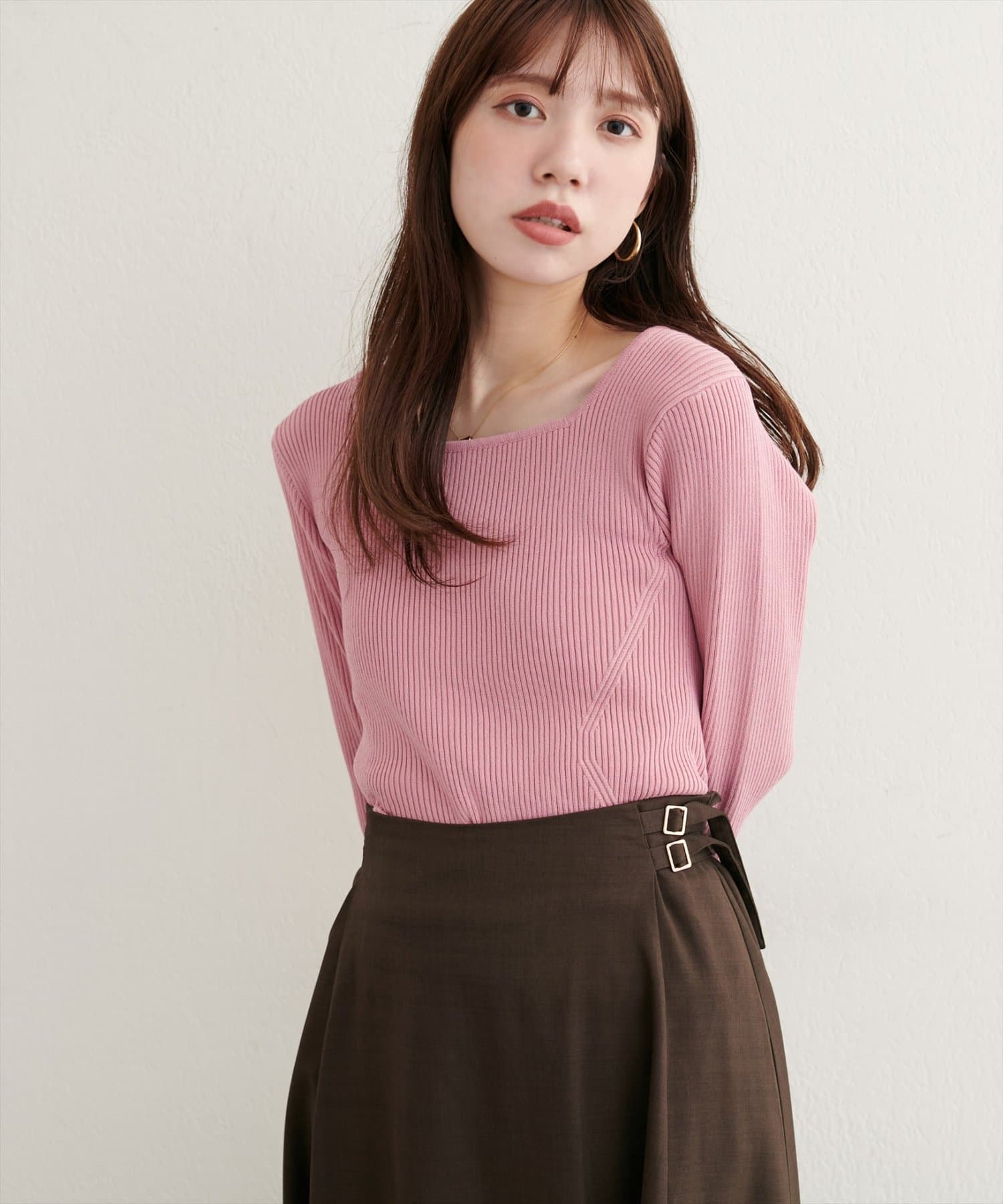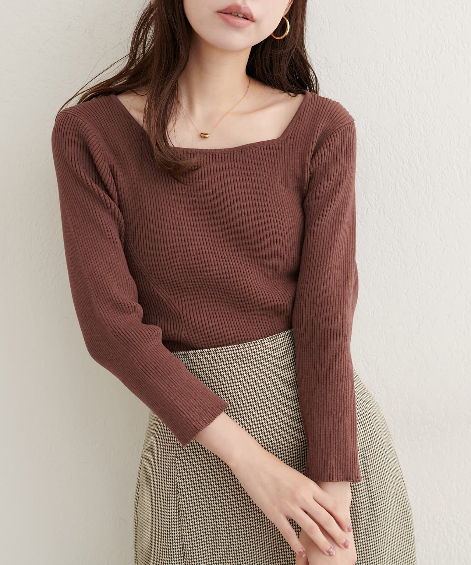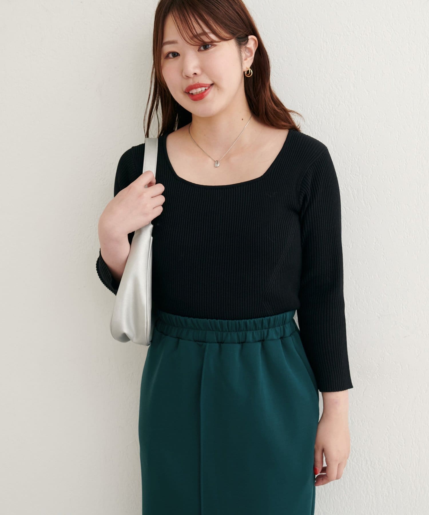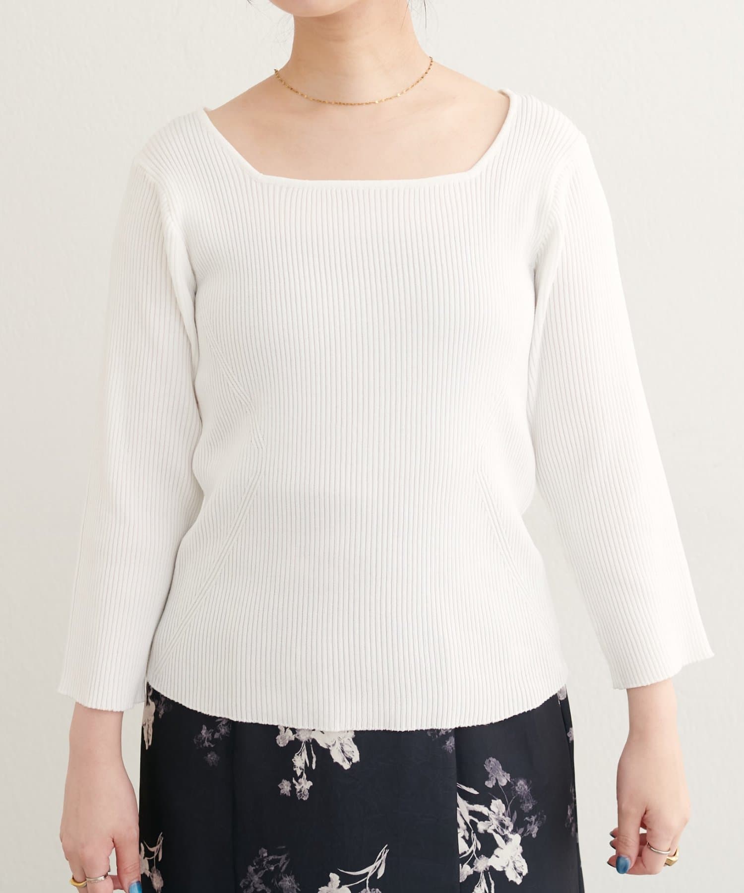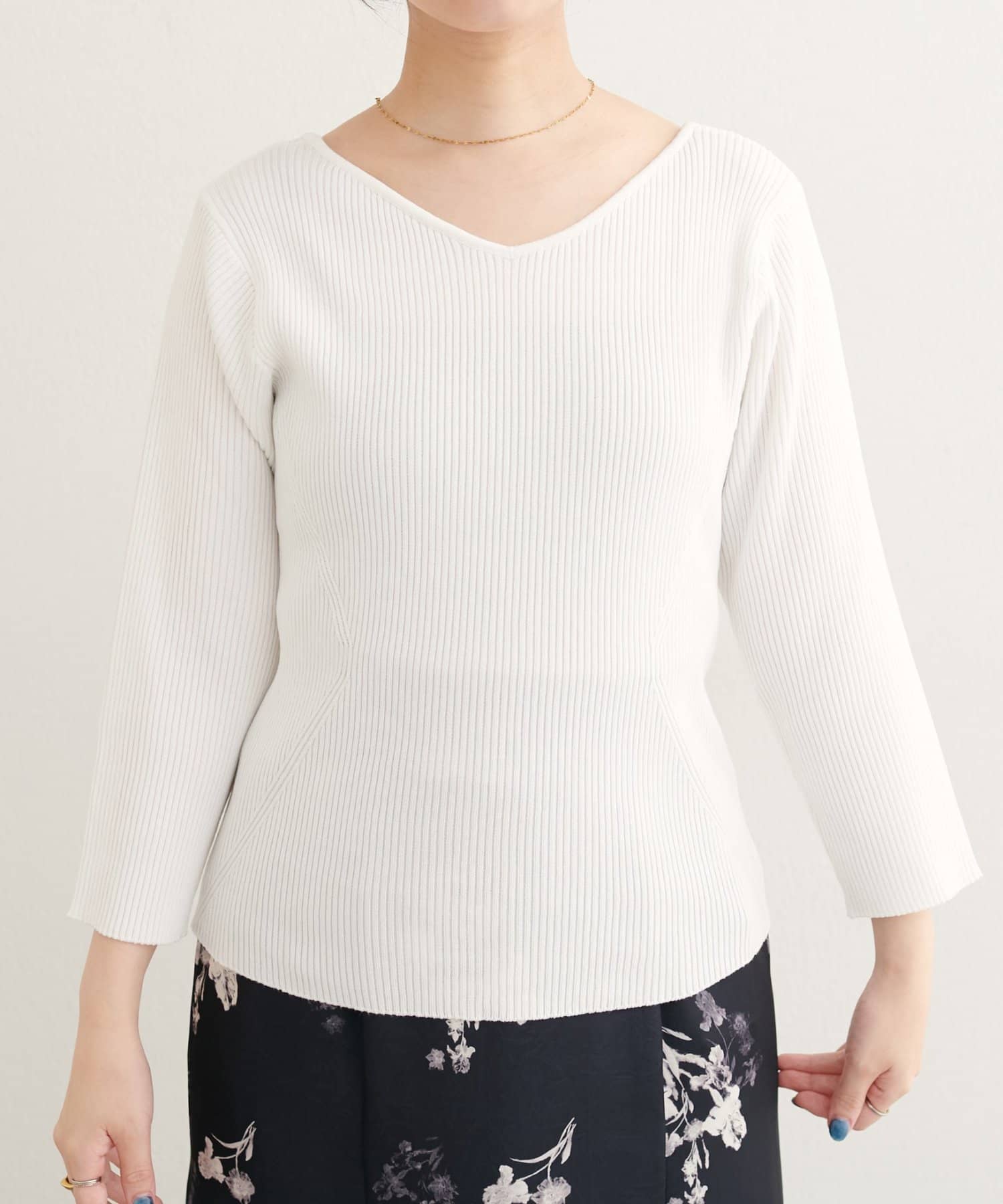 • natural couture(ナチュラルクチュール) 【ako】前後2WAY7分袖リブニット