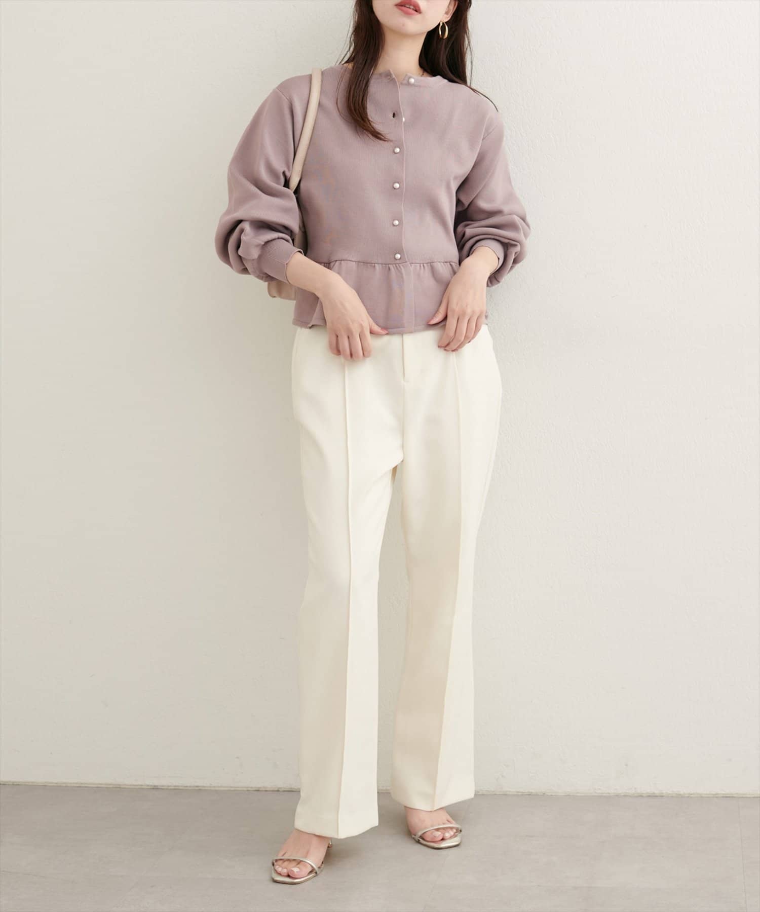 袖口に向かってふんわりと広がるボリュームスリーブは、トレンド感を演出。
