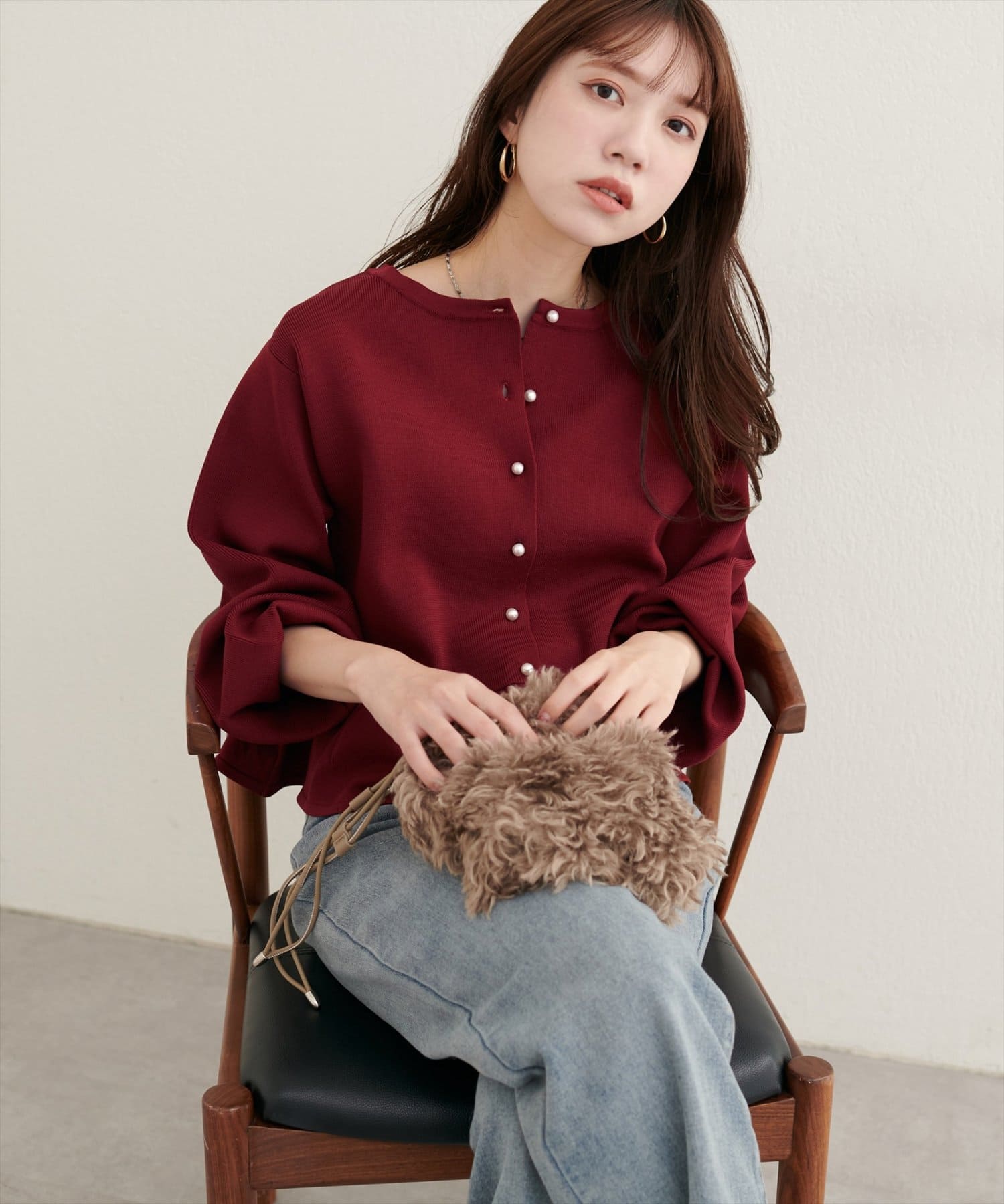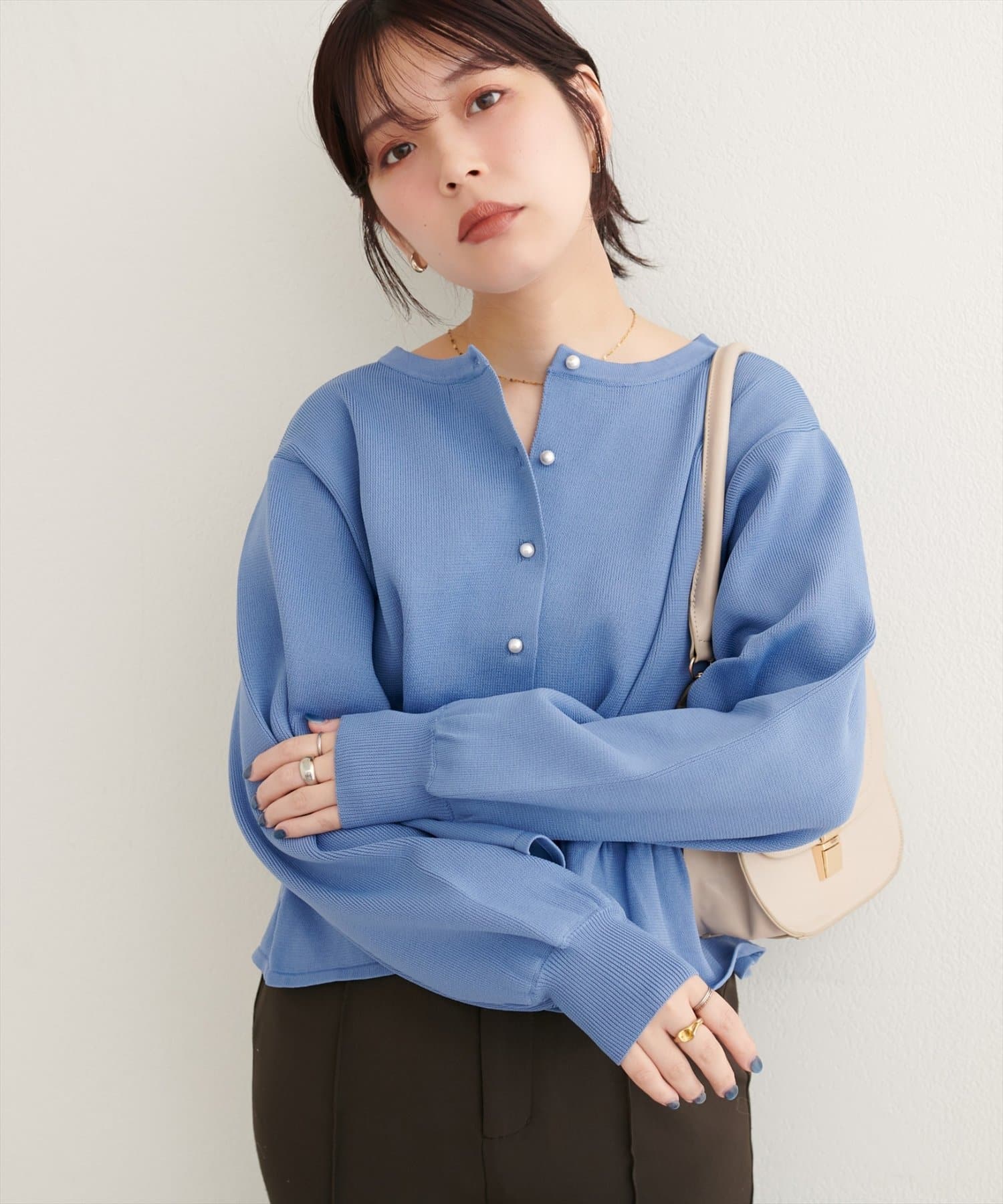 とっておきのアイテムです。フロントには上品なパールボタンをあしらい、