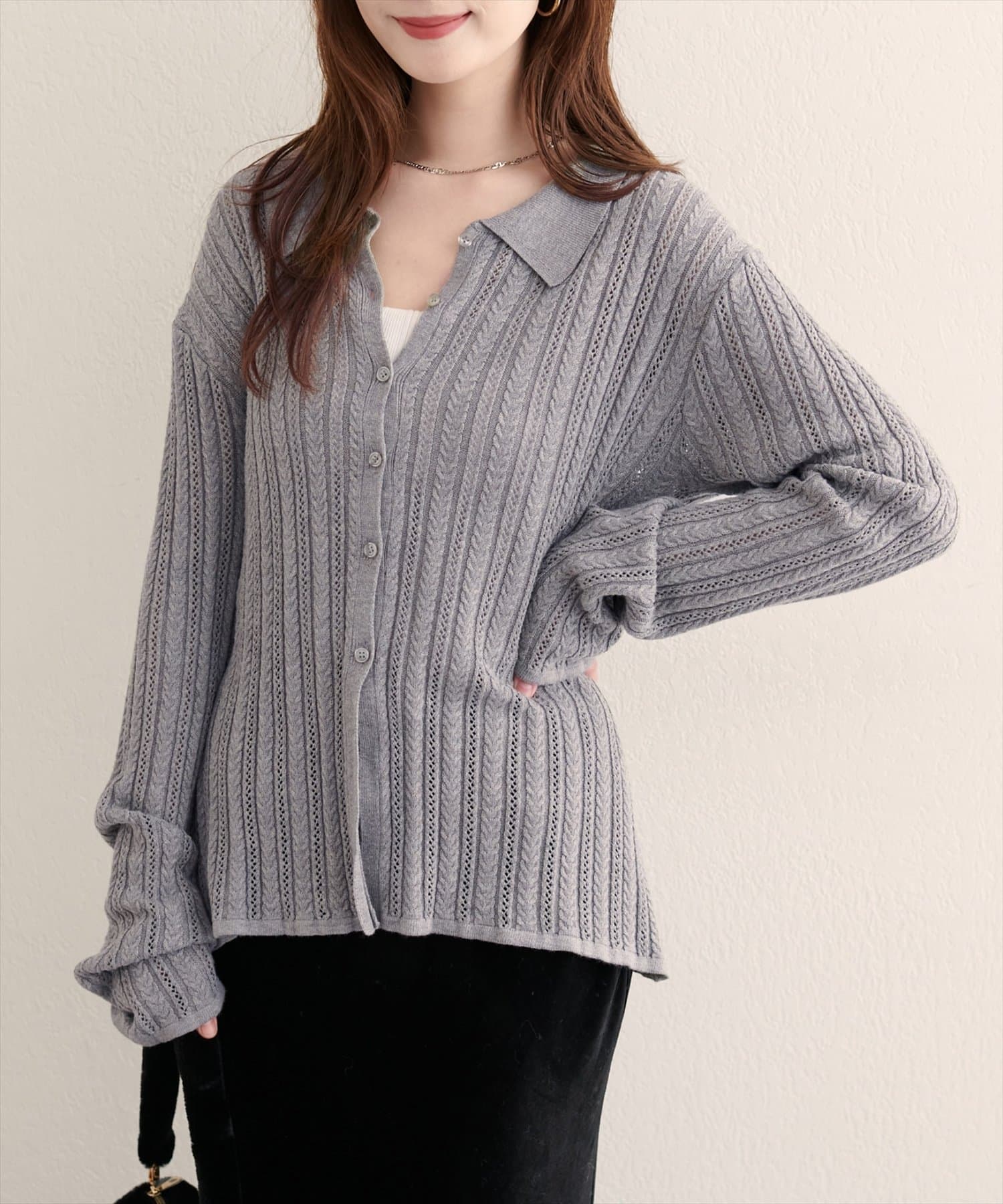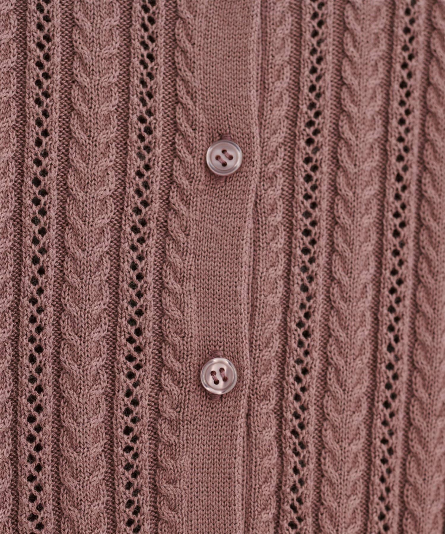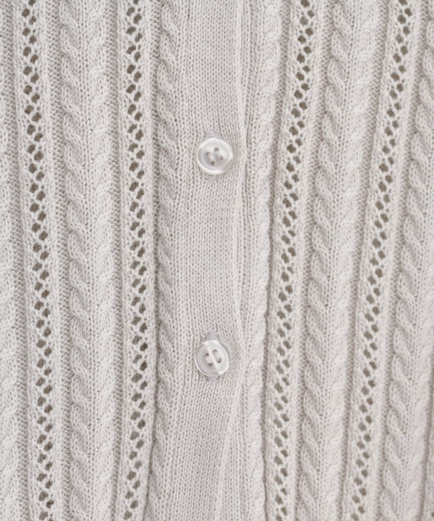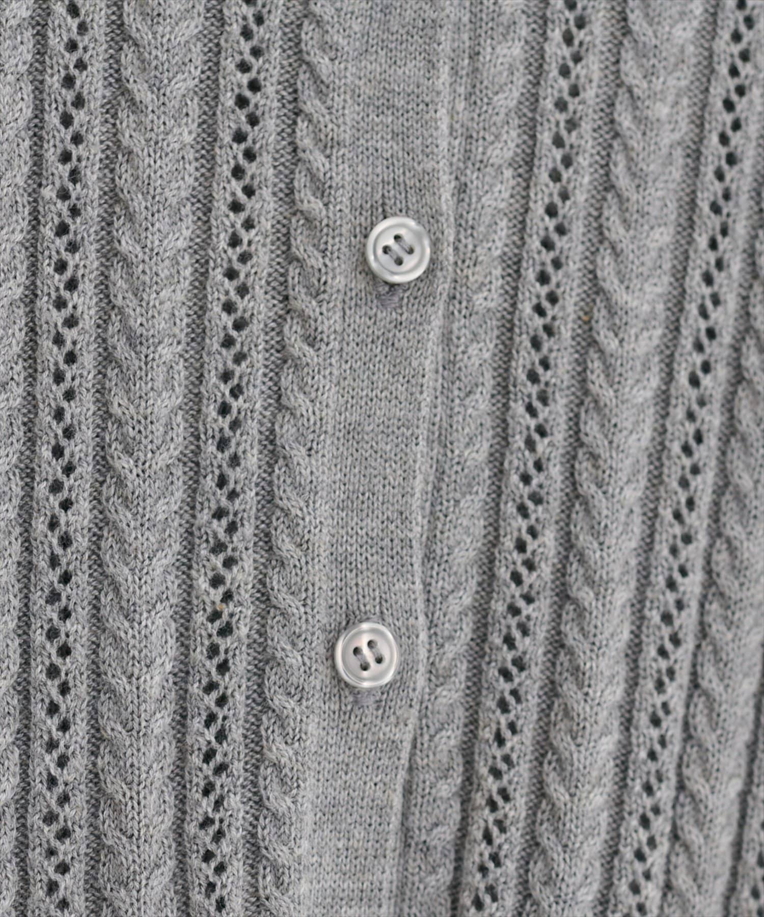 【WEB限定】透かし×細ケーブル衿付きカーデ