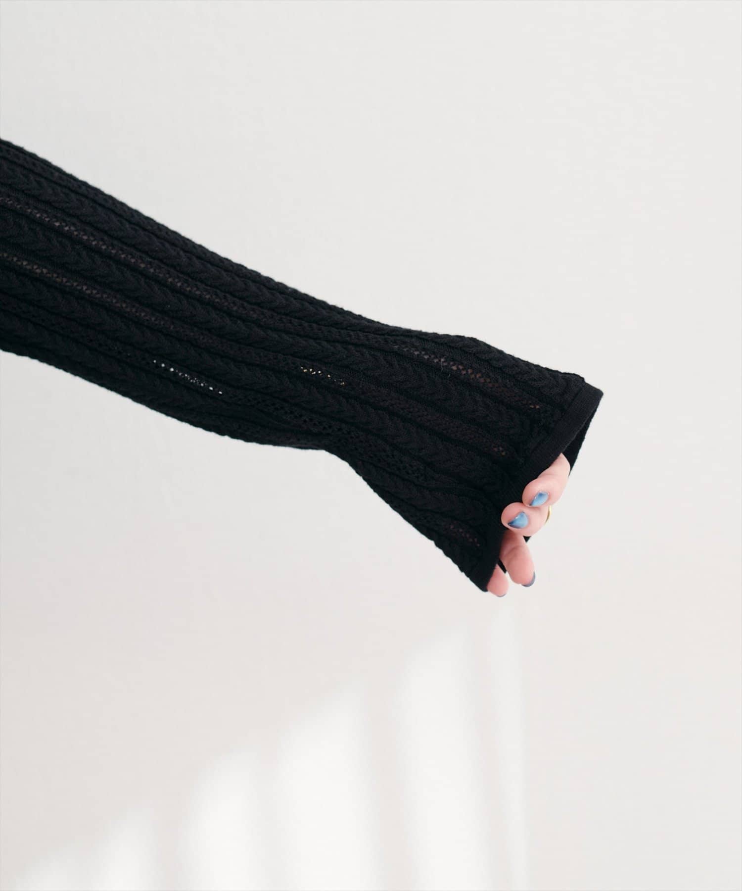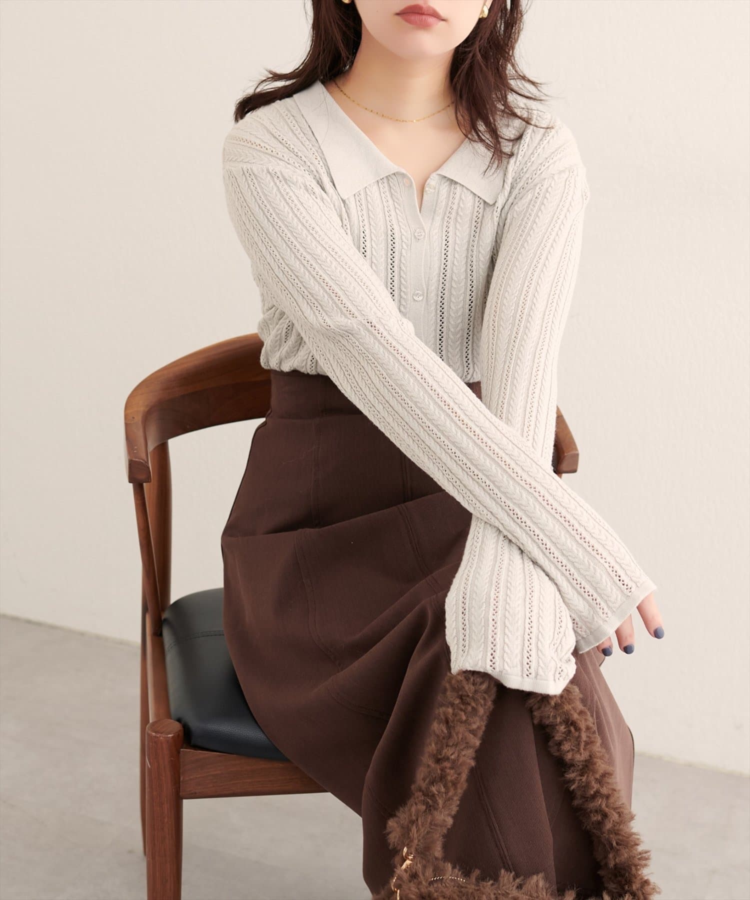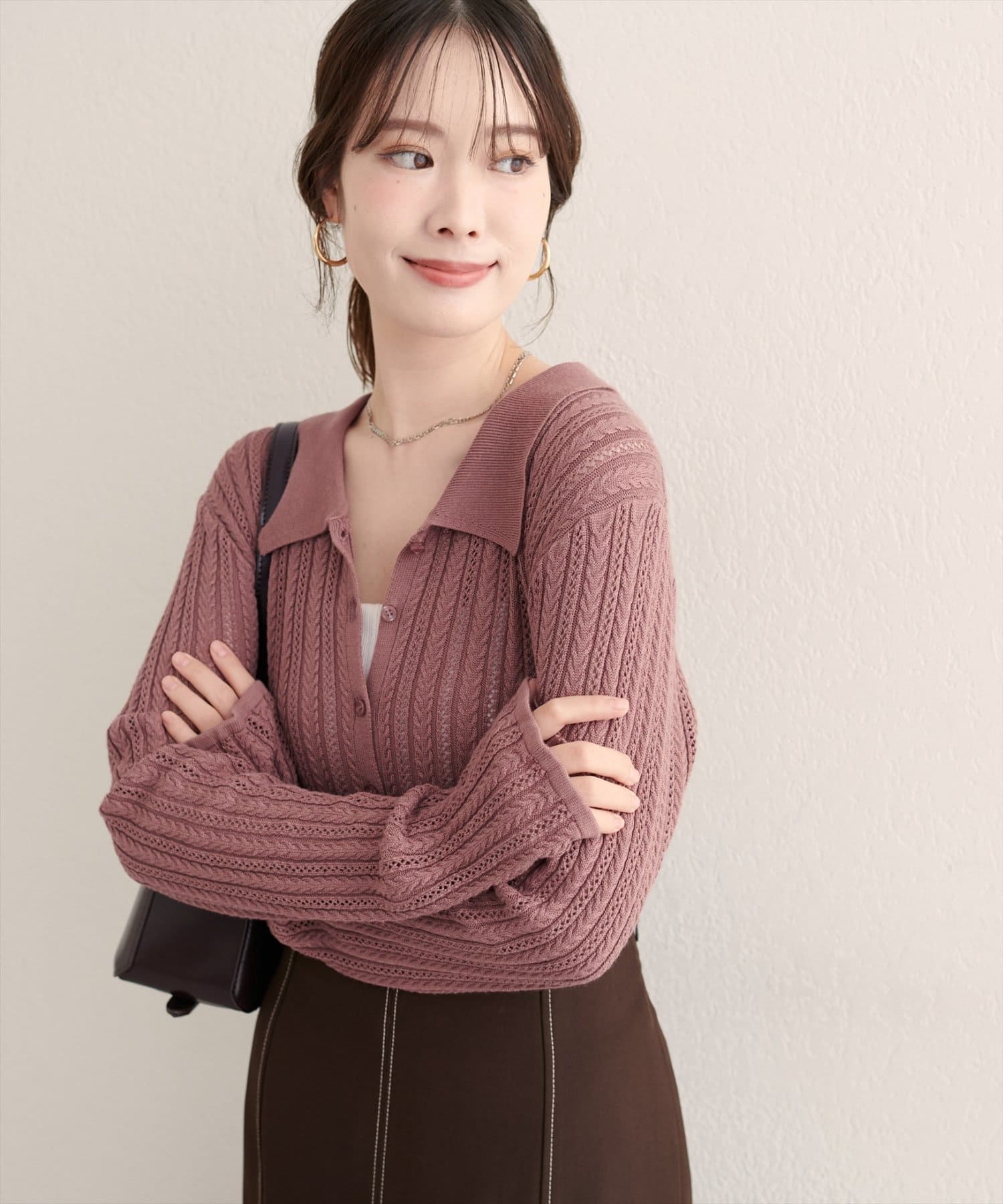 繊細な透かし編みは、程よい抜け感をプラスし、軽やかな印象に。