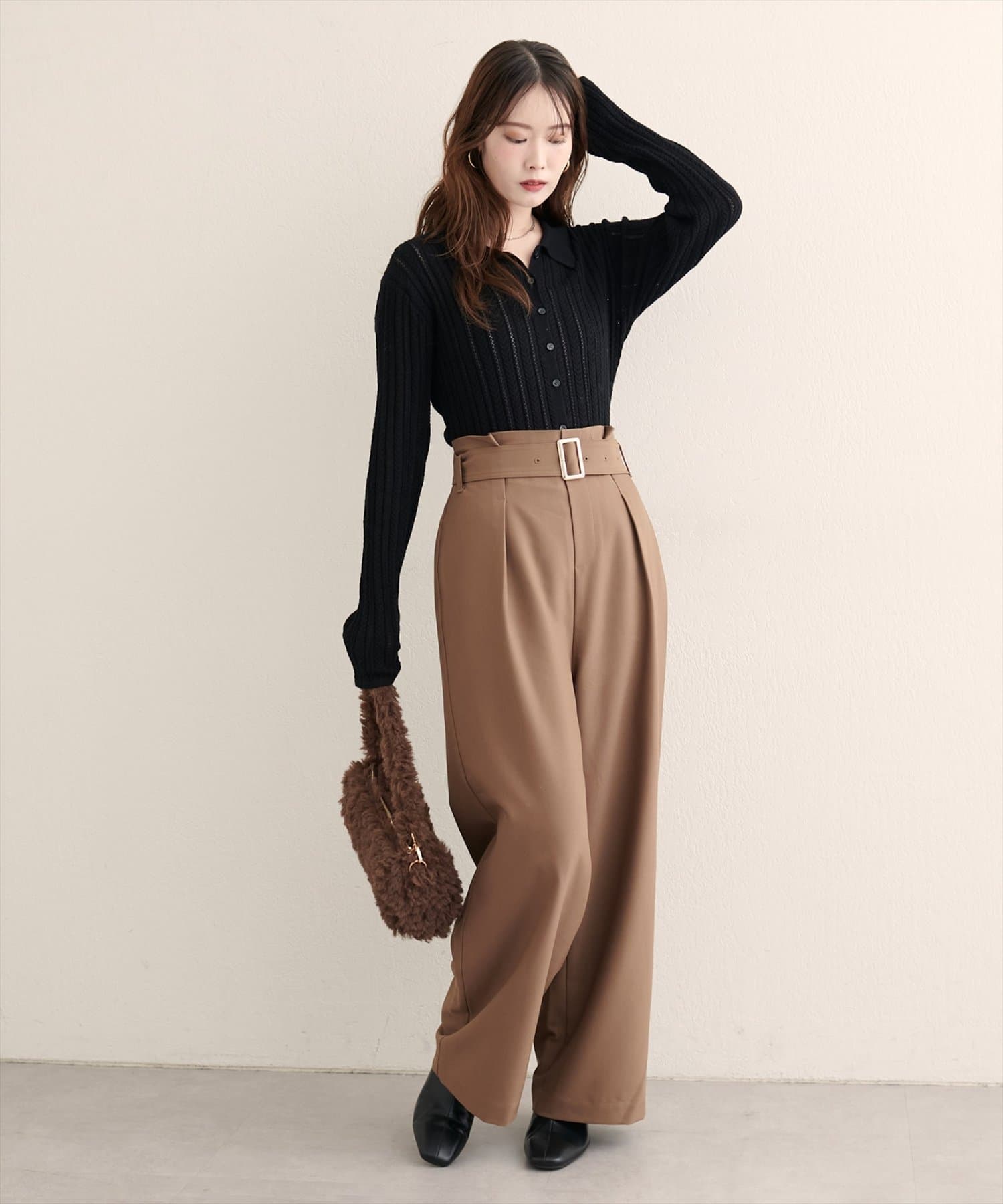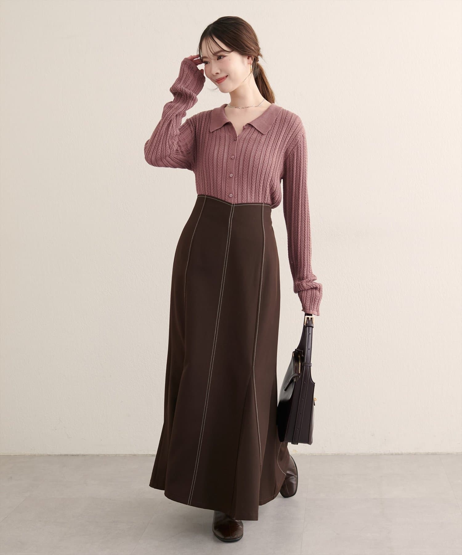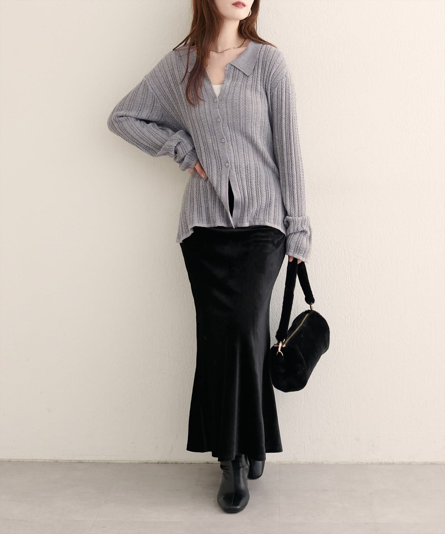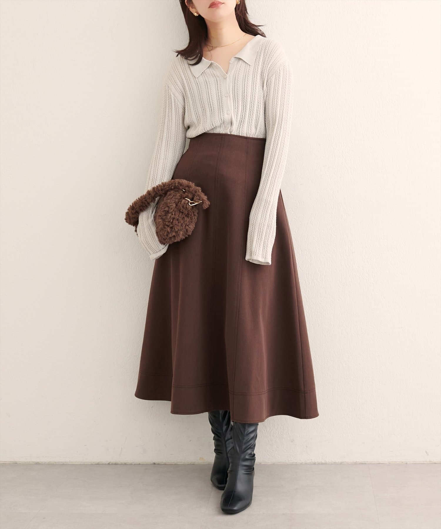 スカートやワンピースと合わせると大人フェミニンな印象に。