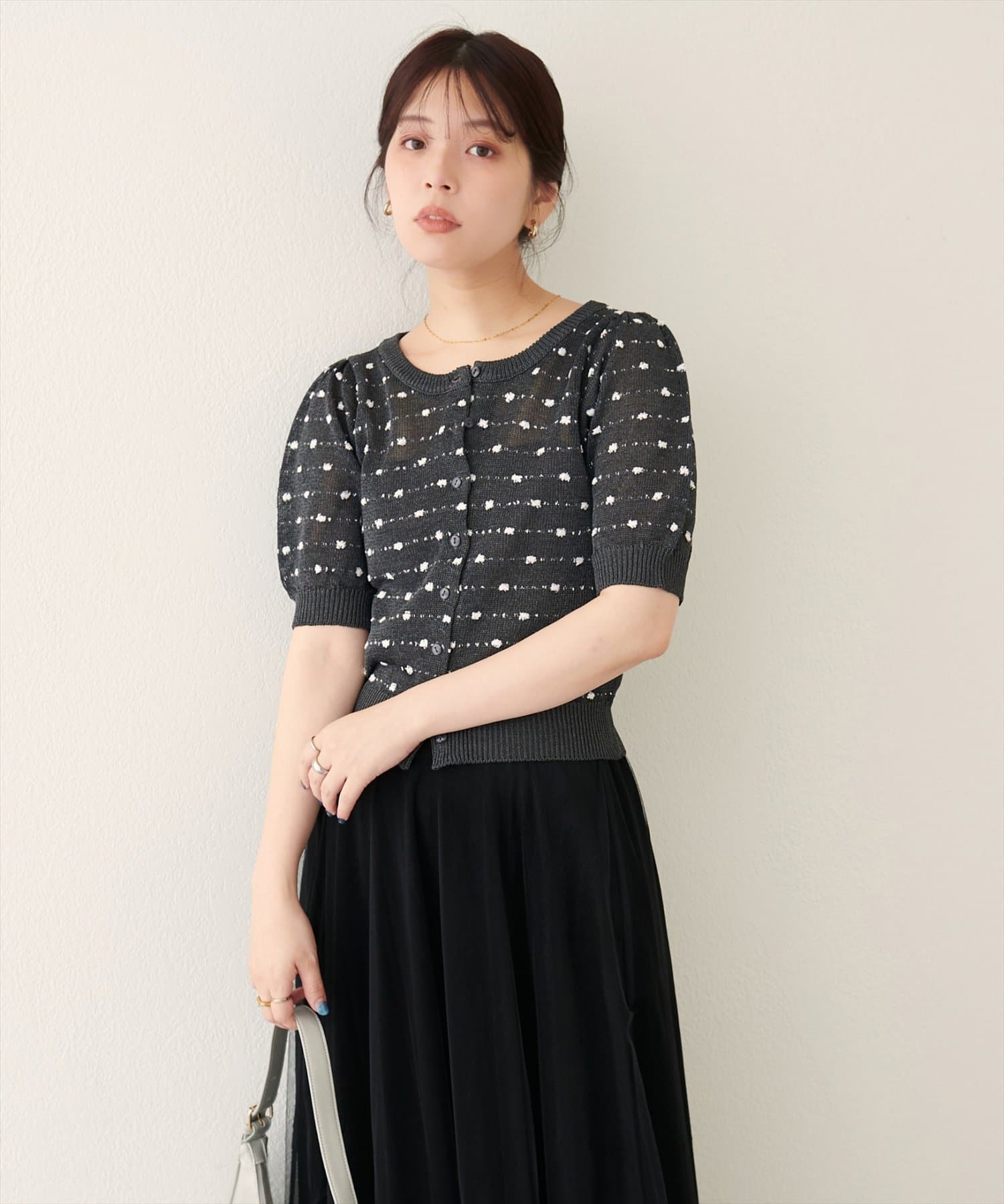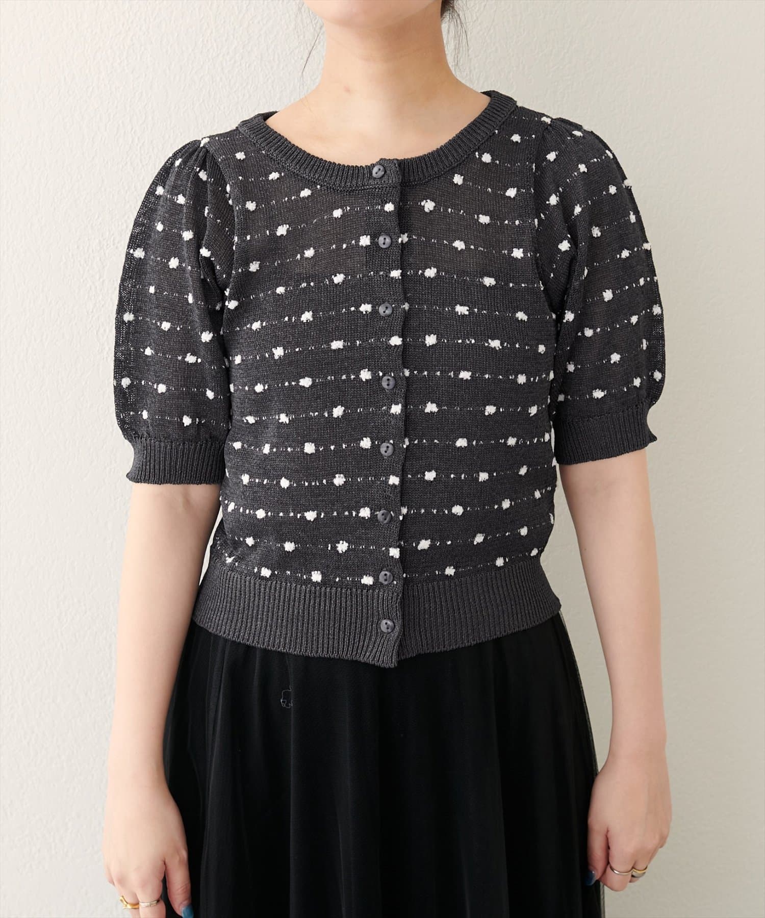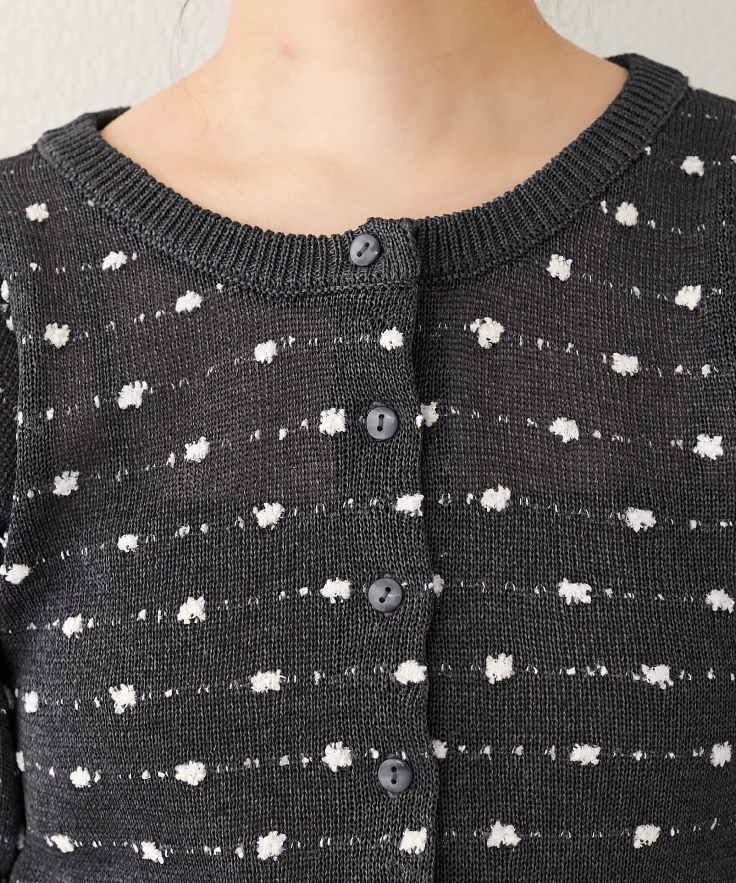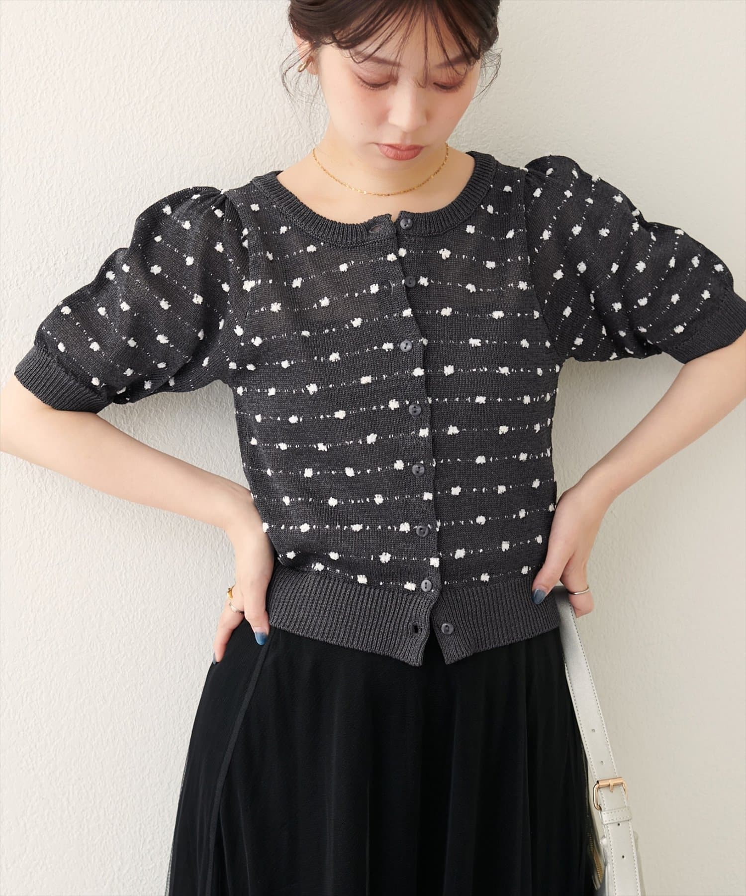 まるで夜空に浮かぶ星屑のような、繊細な「ぽんぽん」が目を惹くカーディガン。
