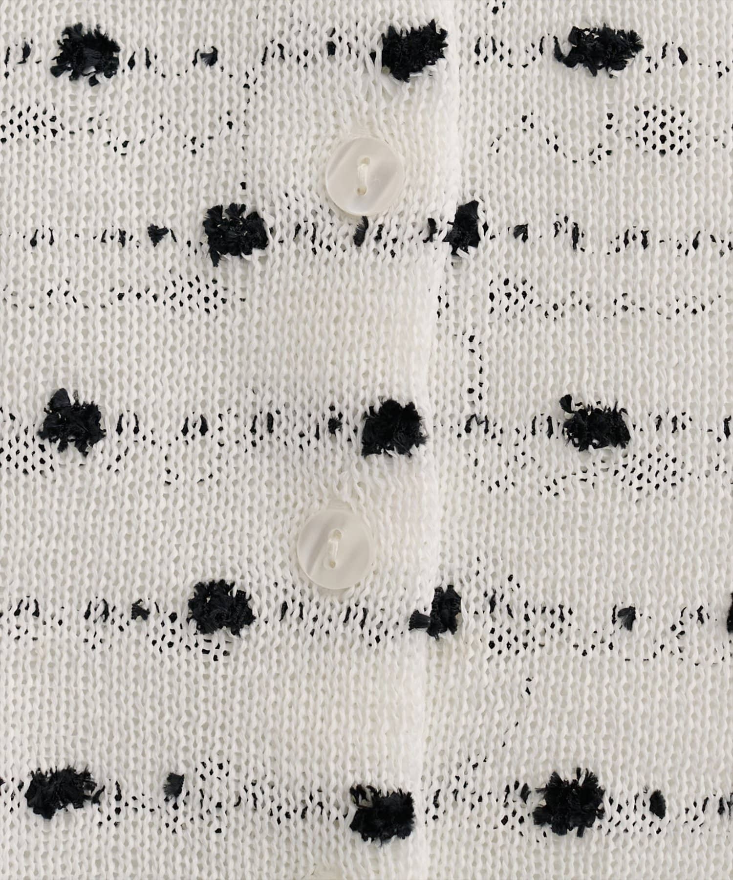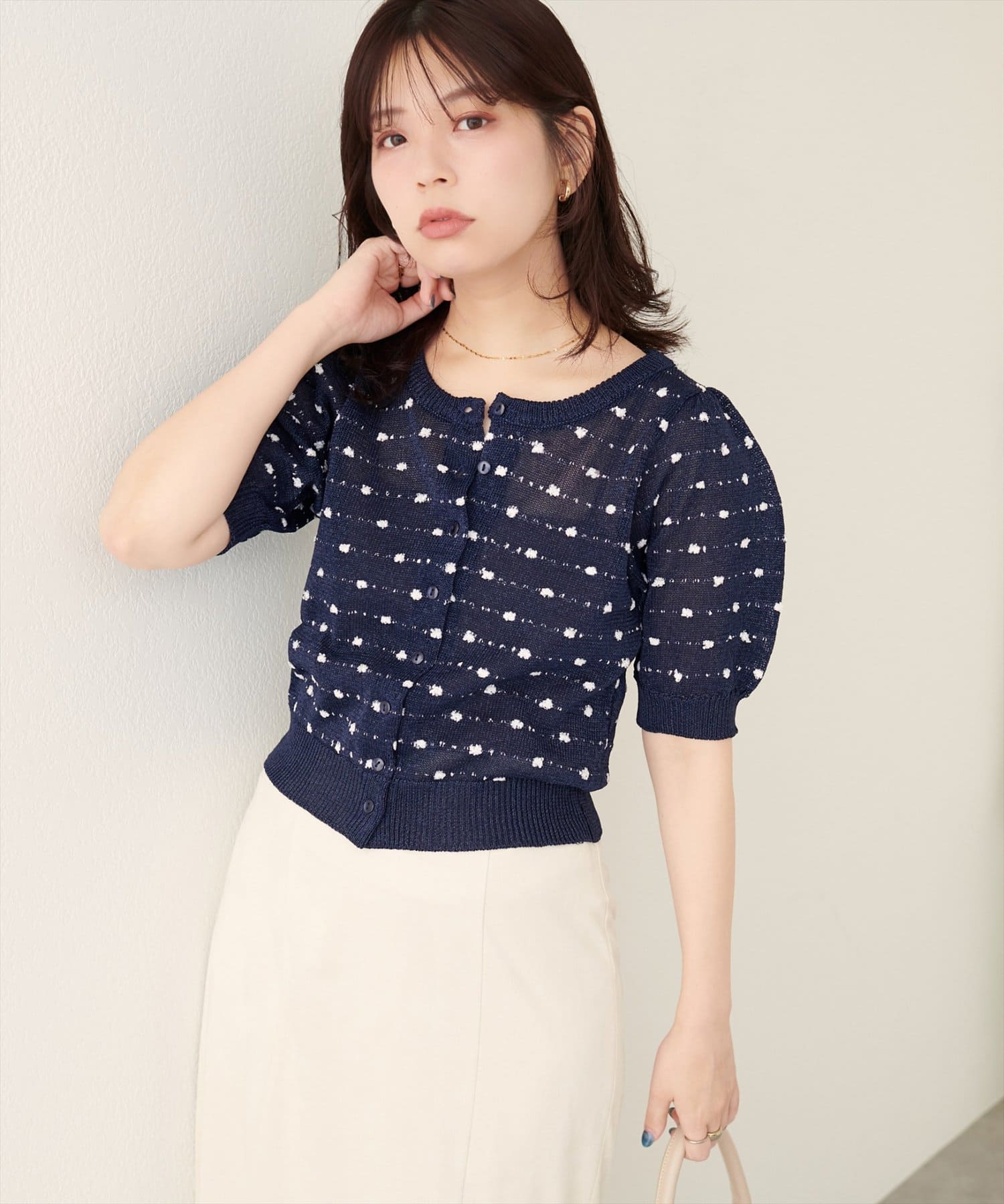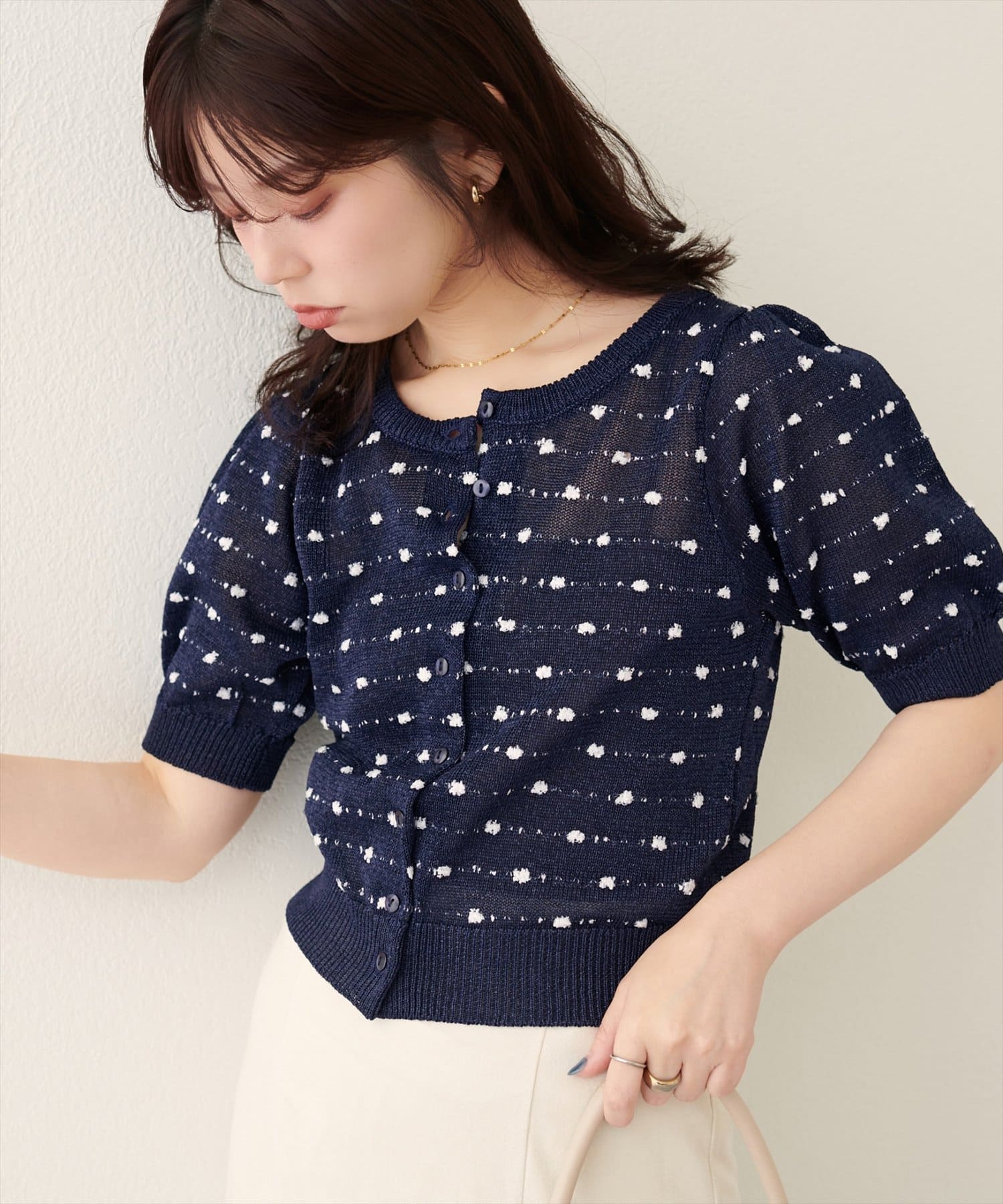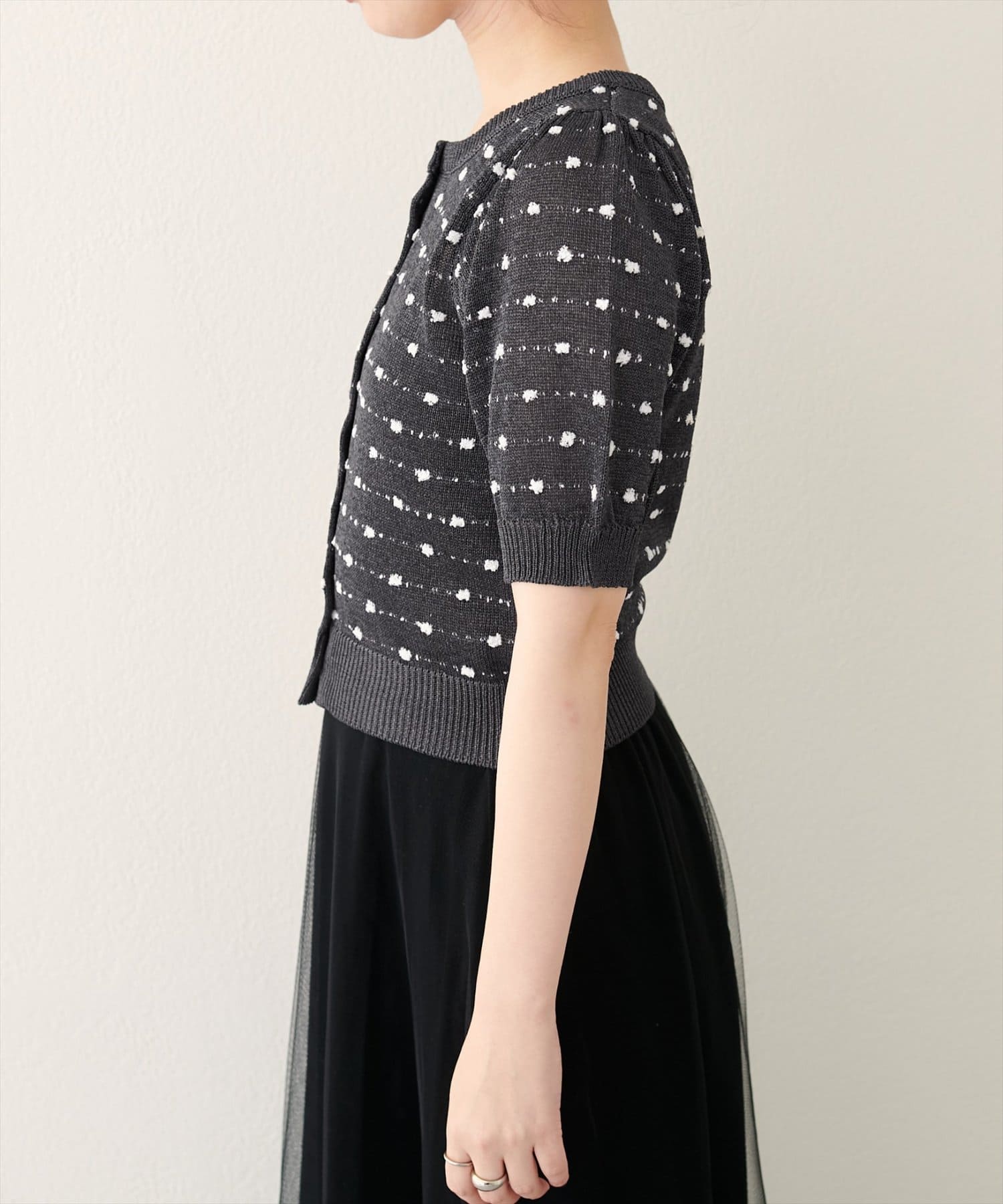 まるで夜空に浮かぶ星屑のような、繊細な「ぽんぽん」が目を惹くカーディガン。