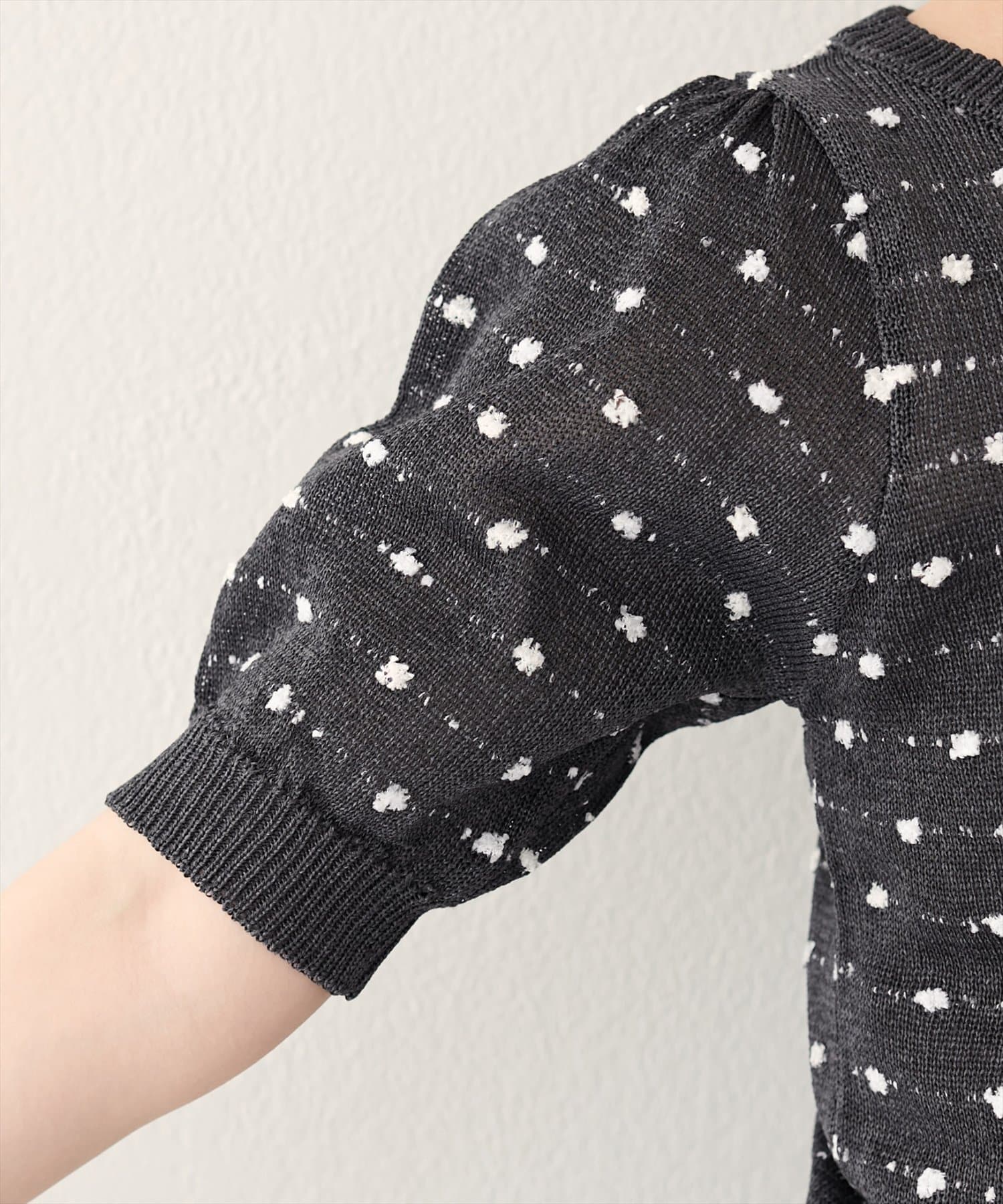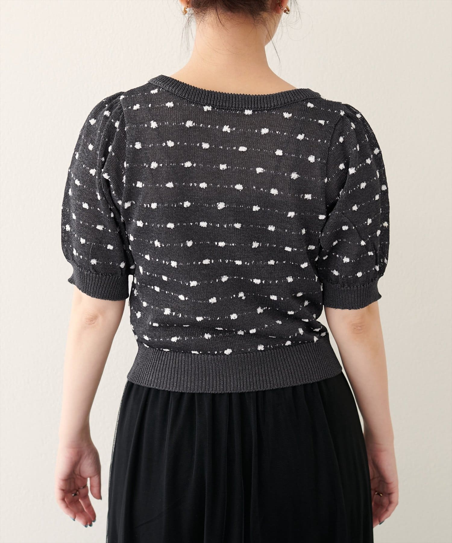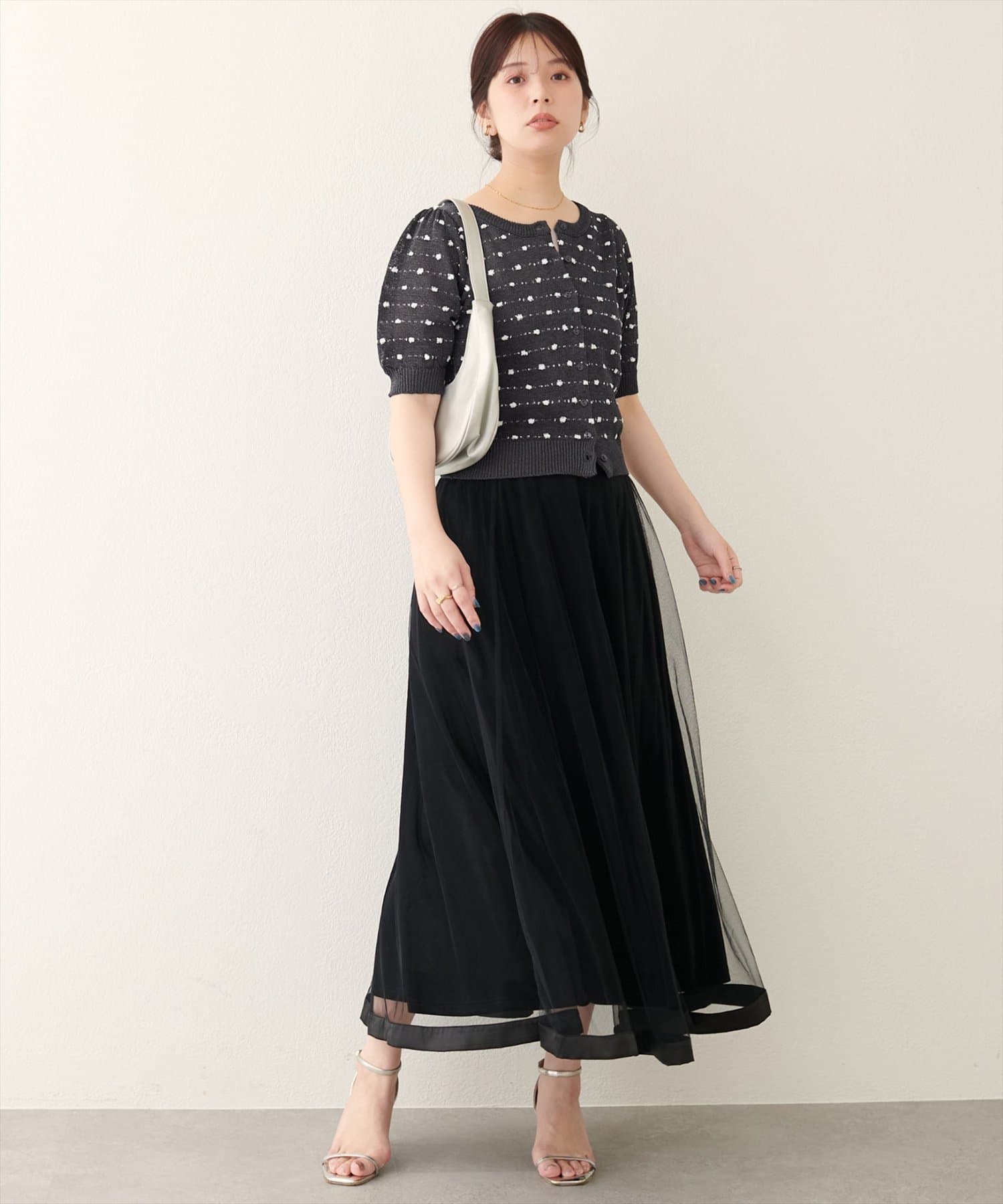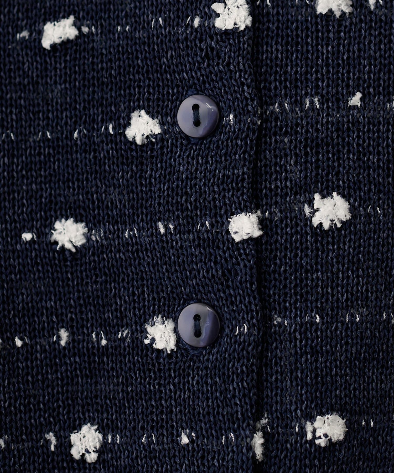 まるで夜空に浮かぶ星屑のような、繊細な「ぽんぽん」が目を惹くカーディガン。