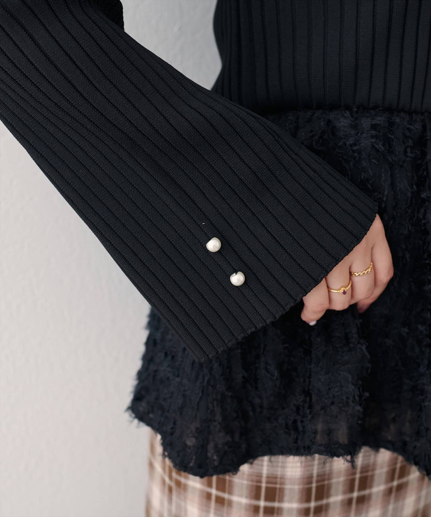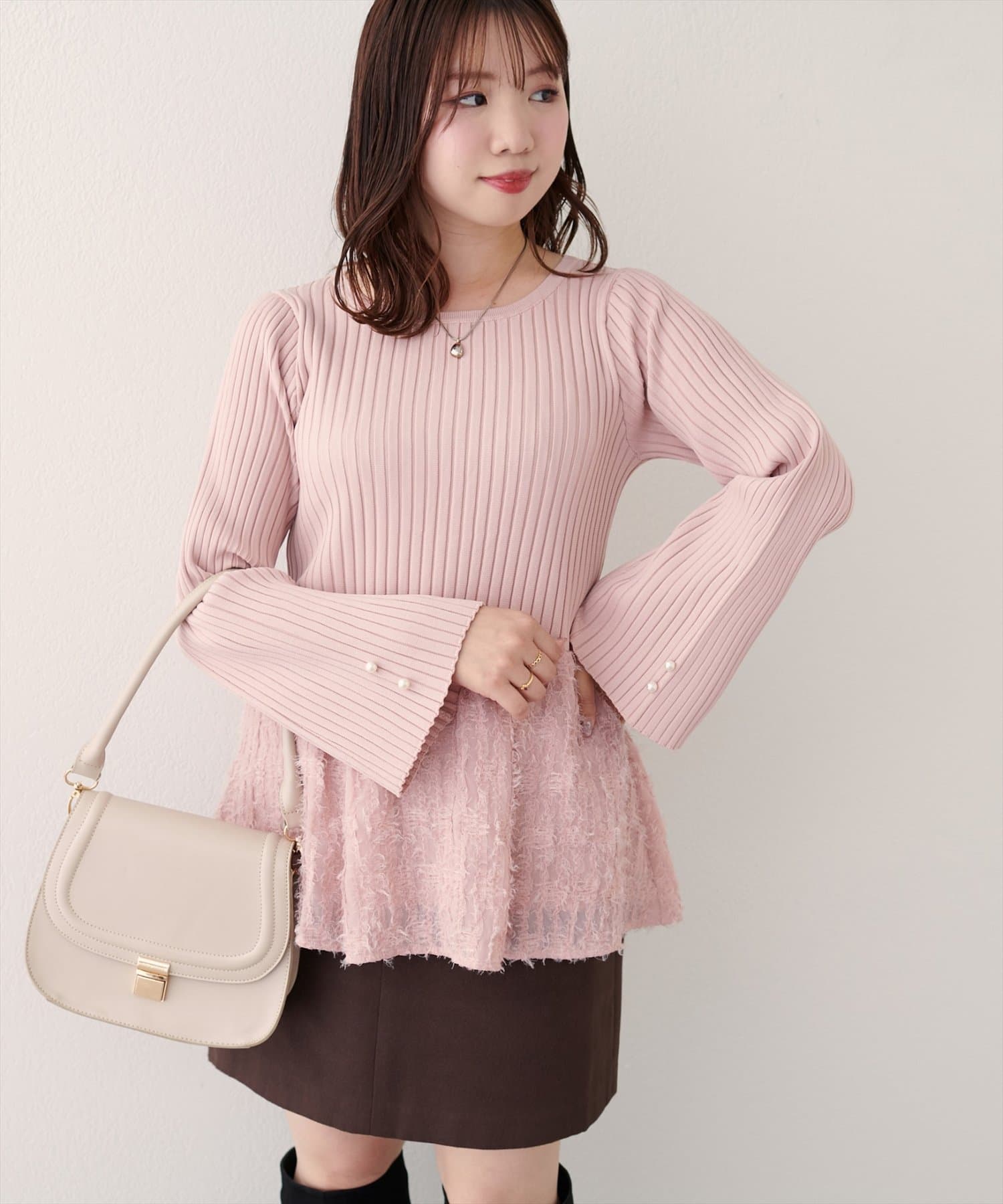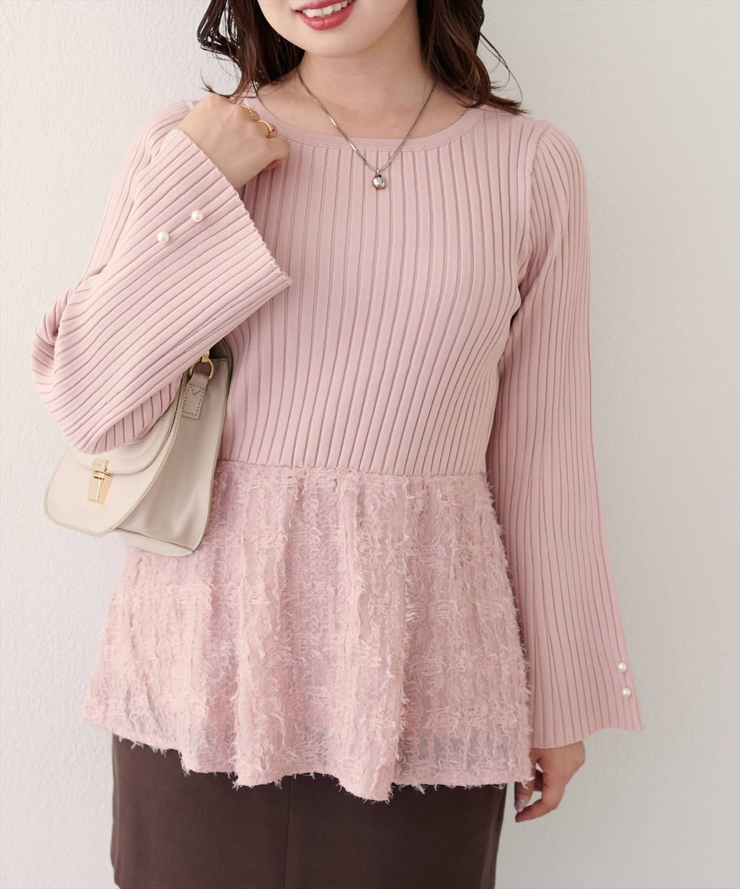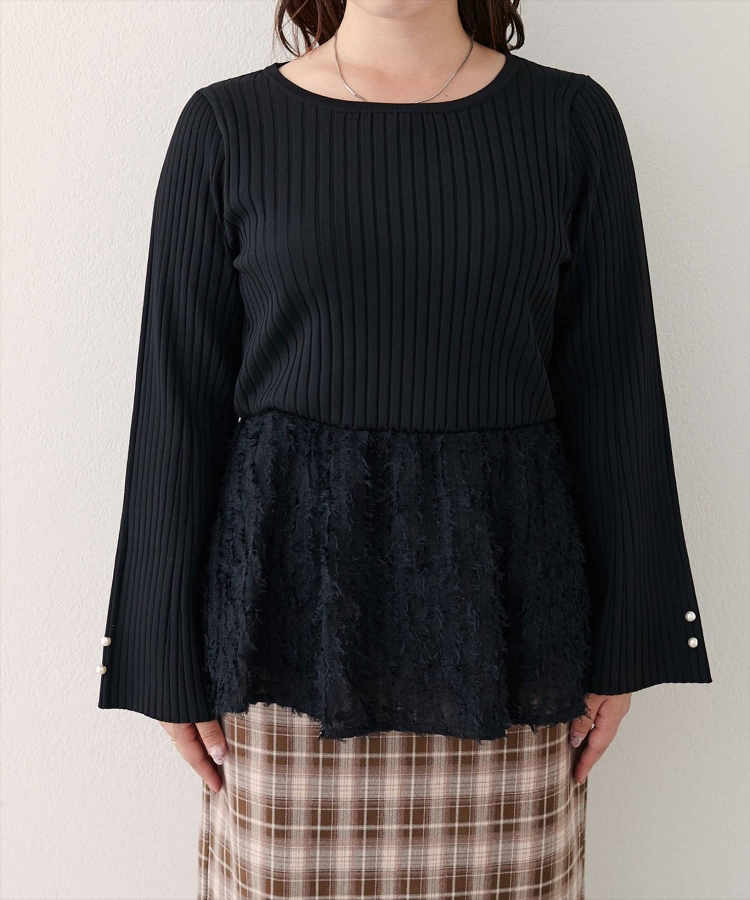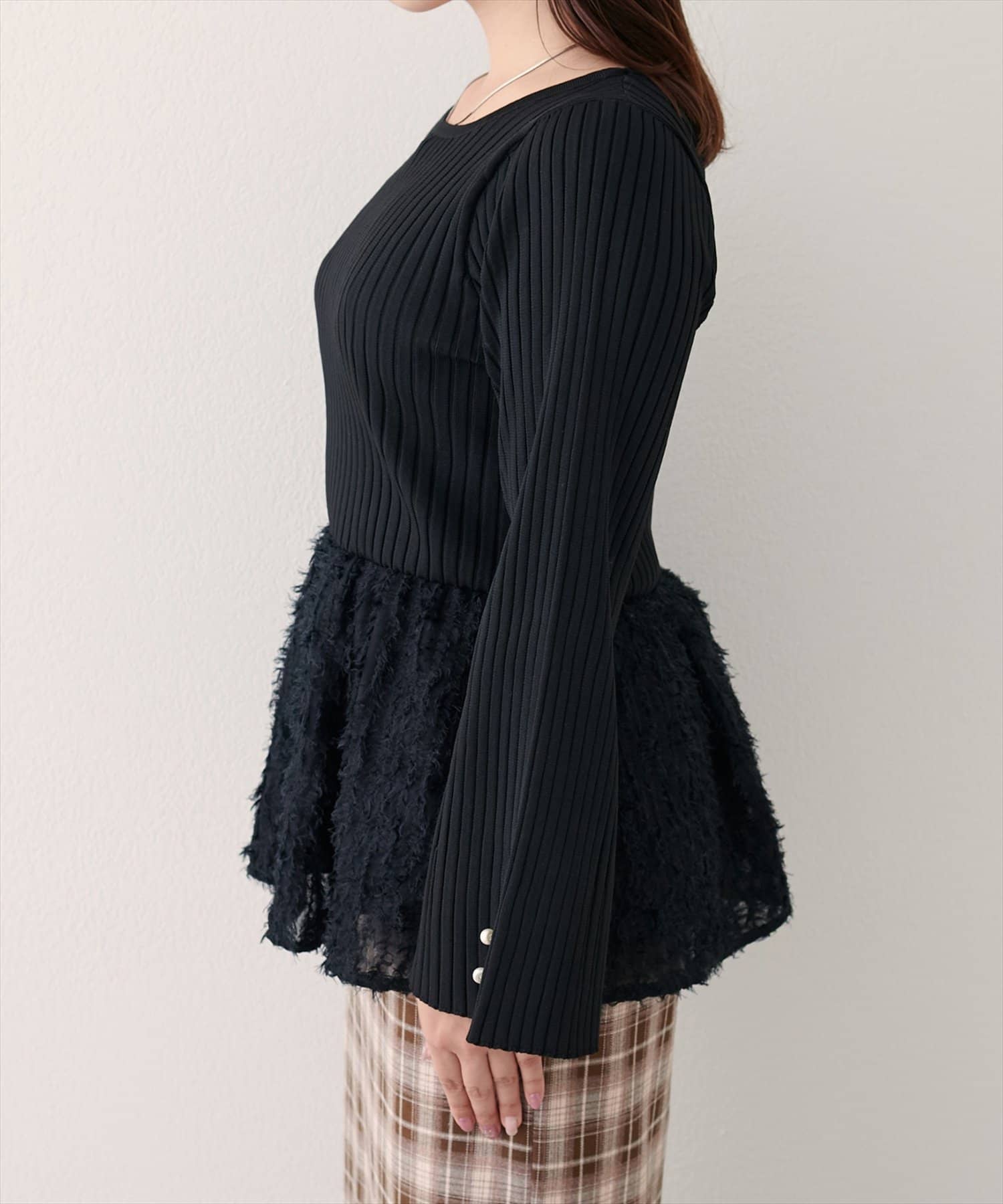 【WEB限定】〈canami〉ニットドッキングフリンジぺプラムTOPS