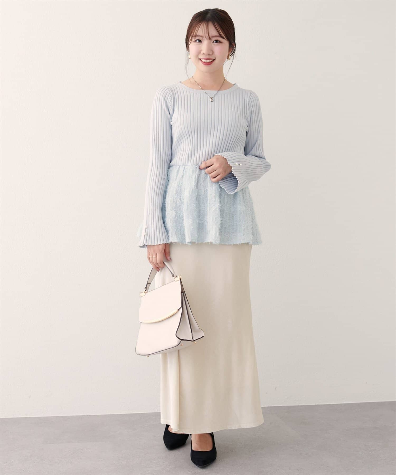 ペプラムでメリハリの出る女性らしさのでるデザイン。