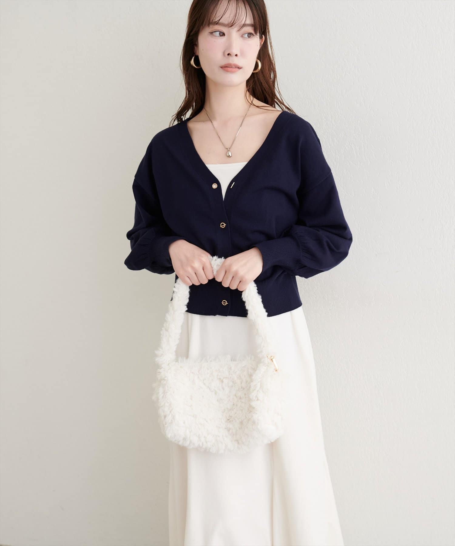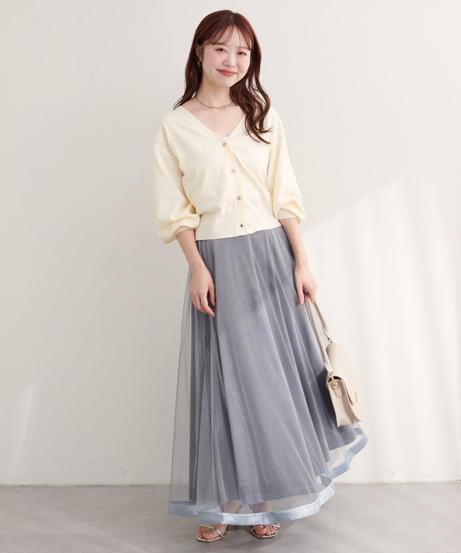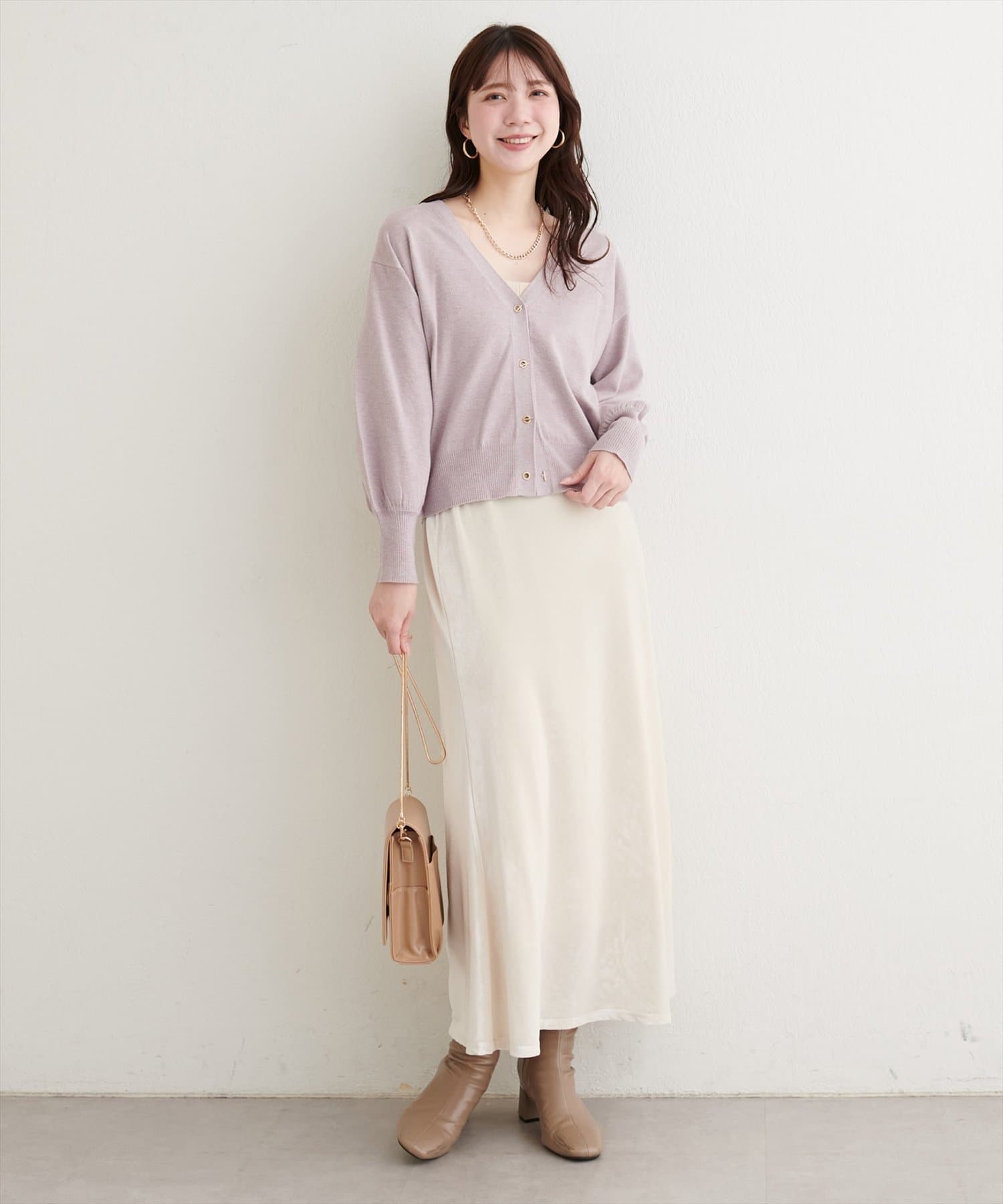 ブラウスやワンピースに羽織れば、オフィスにも対応できるきれいめスタイルにも。