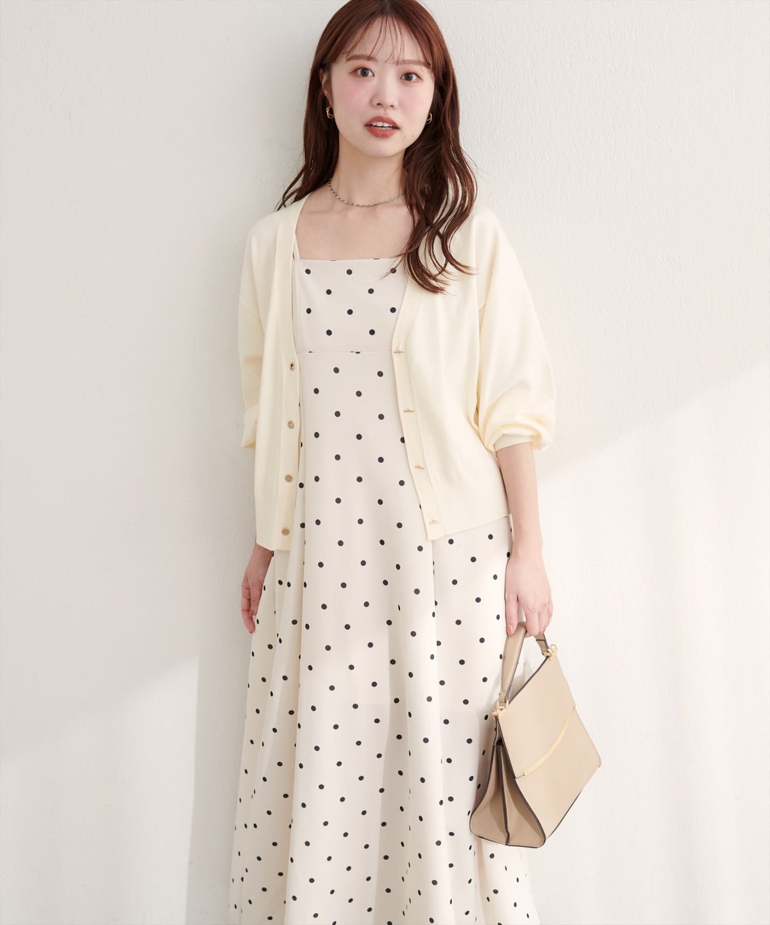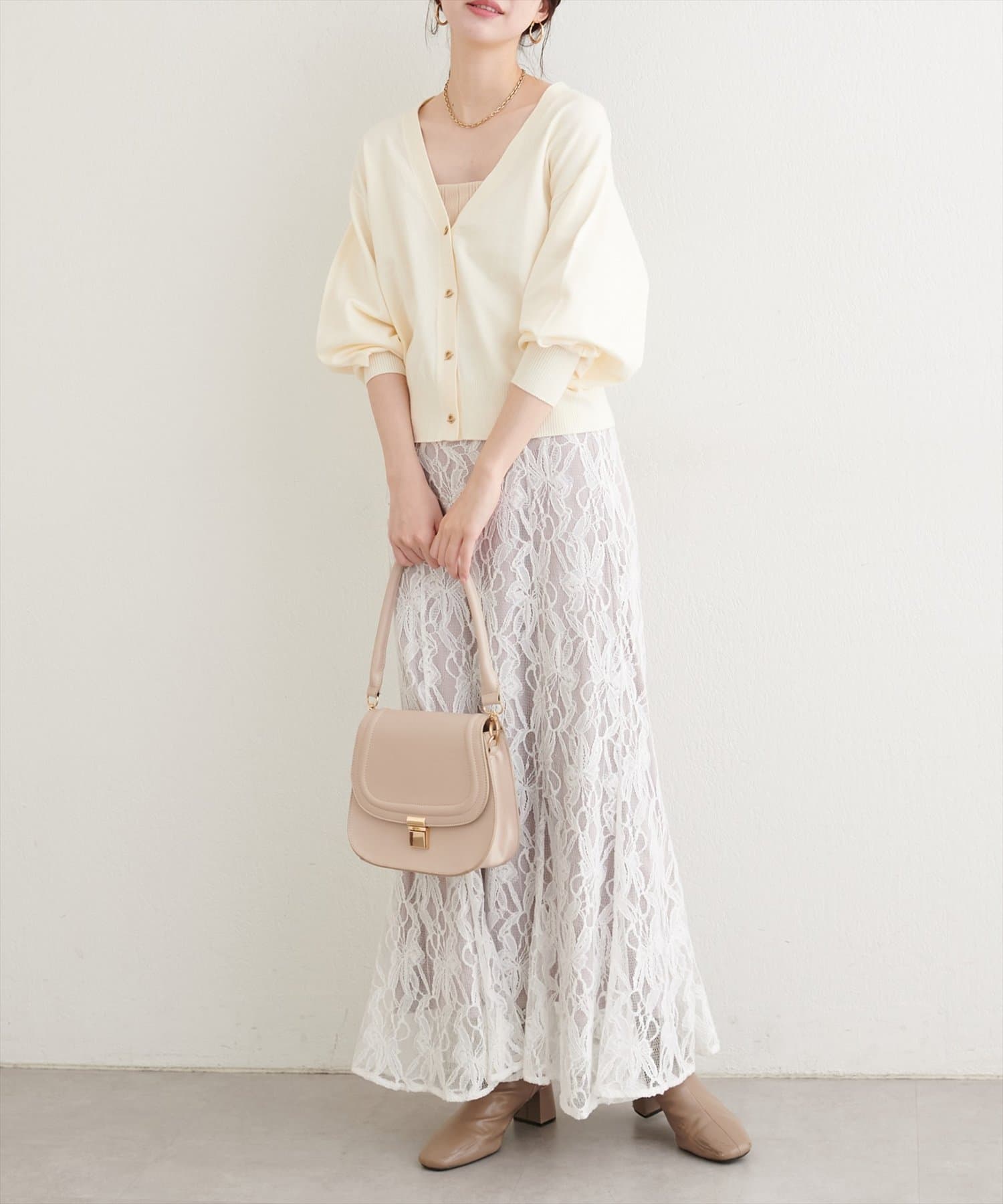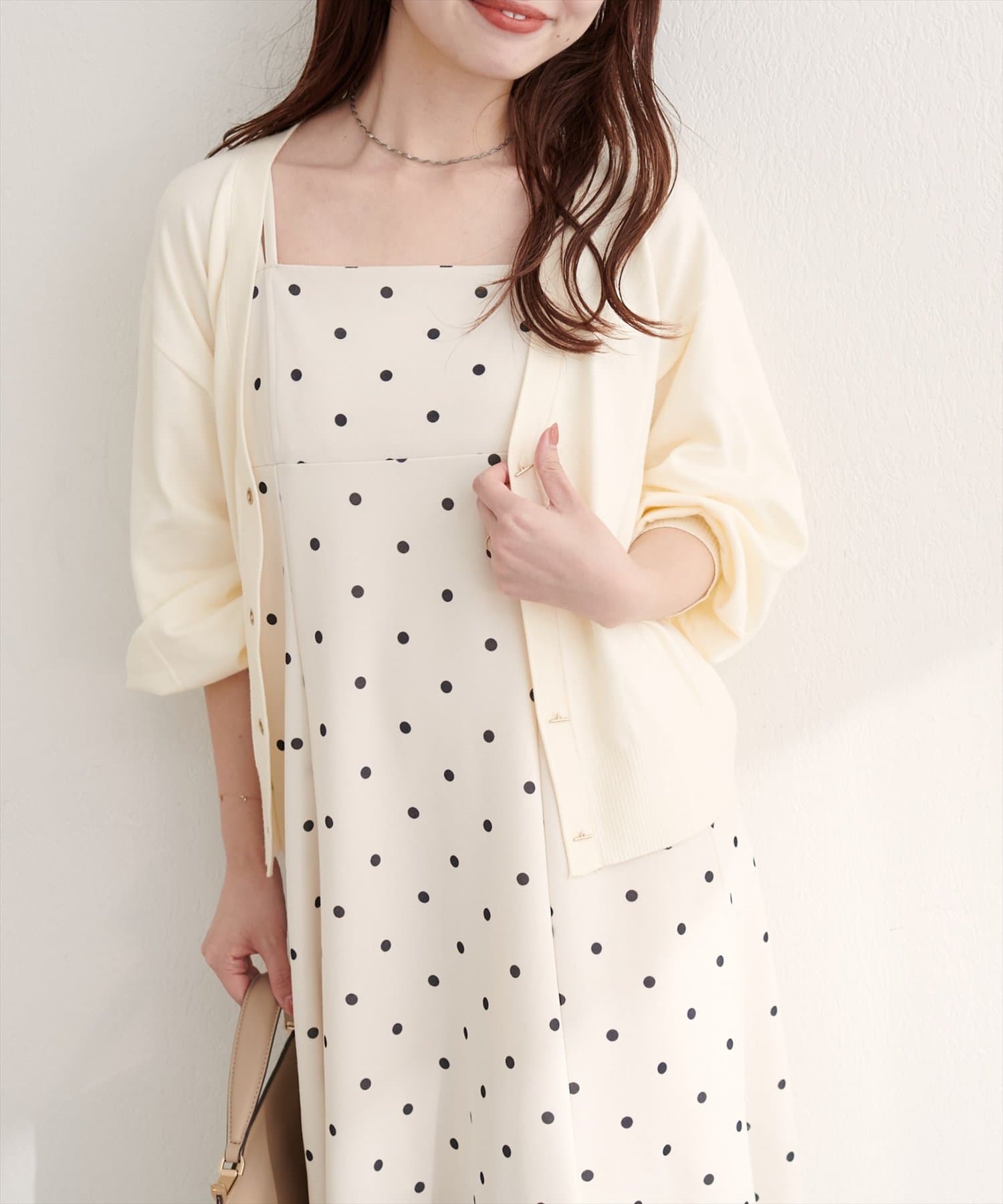 ブラウスやワンピースに羽織れば、オフィスにも対応できるきれいめスタイルにも。
