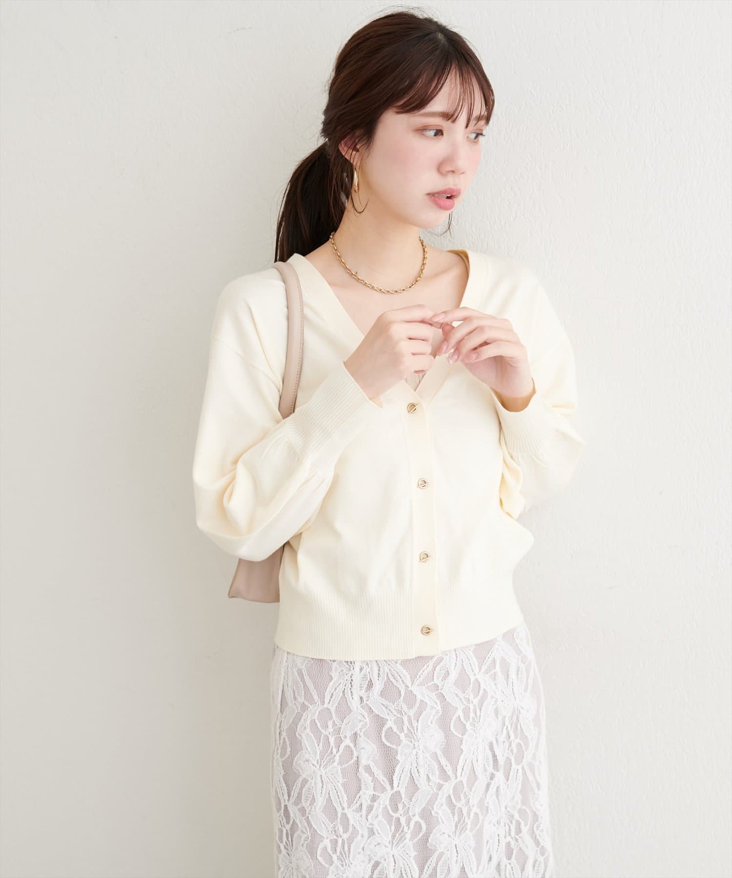 シンプルながらも存在感のある、ハトメバーベーシックカーディガン。