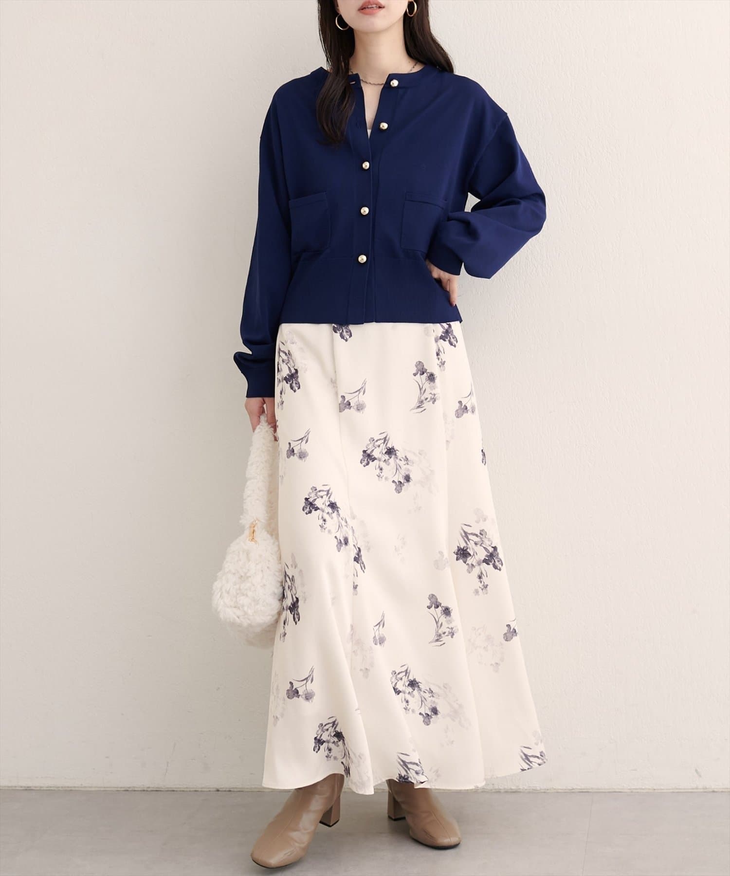 ブラウスやシャツと合わせれば、オフィススタイルにも対応できます。ワンピースやスカートと合わせれば、フェミニンな印象に。