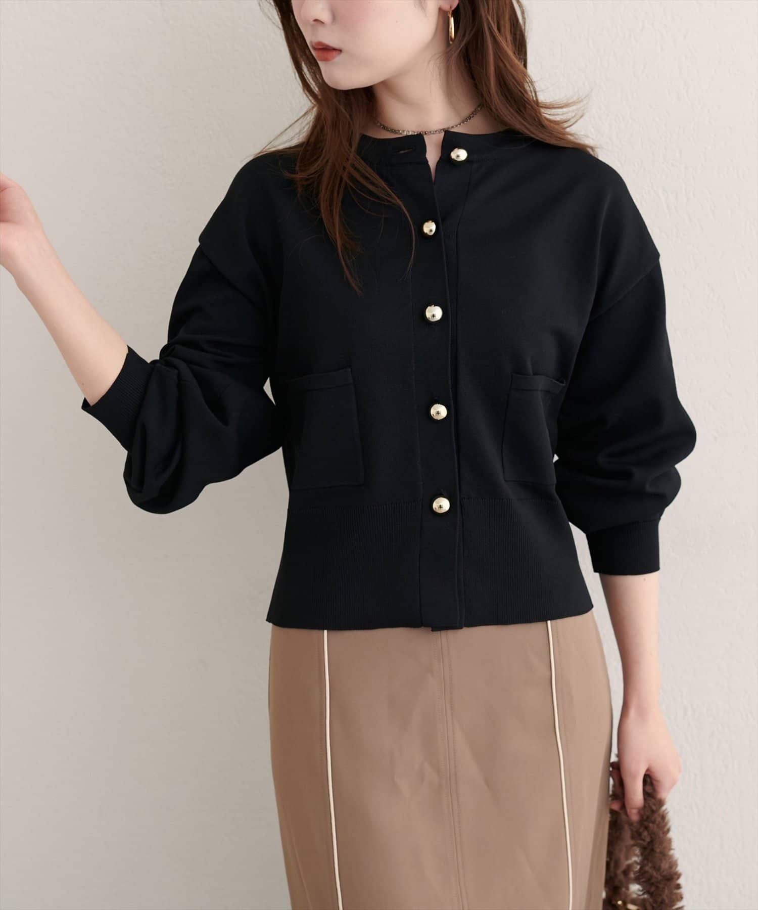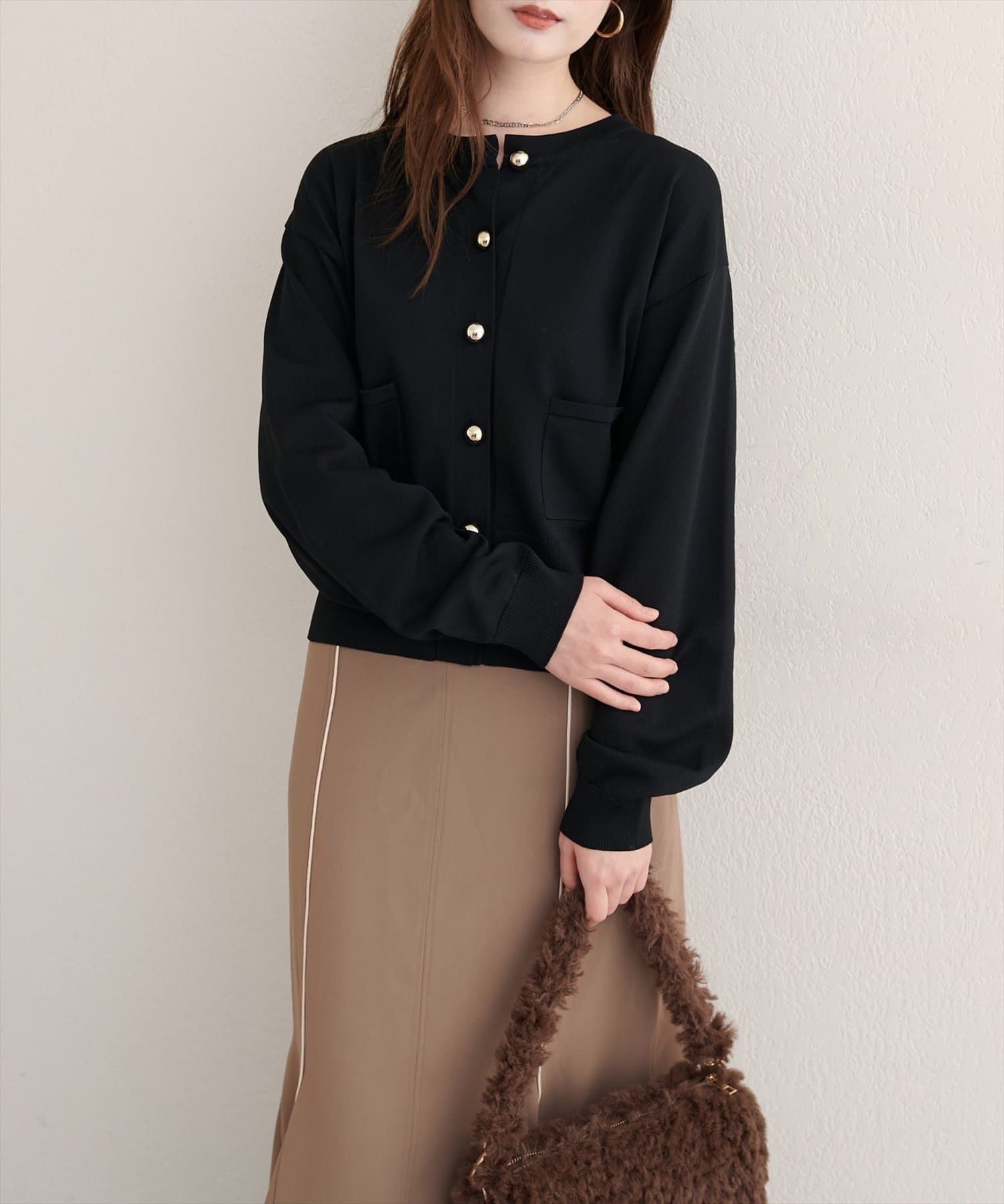 【natural couture】ぷっくり金釦ポケ付きカーデ