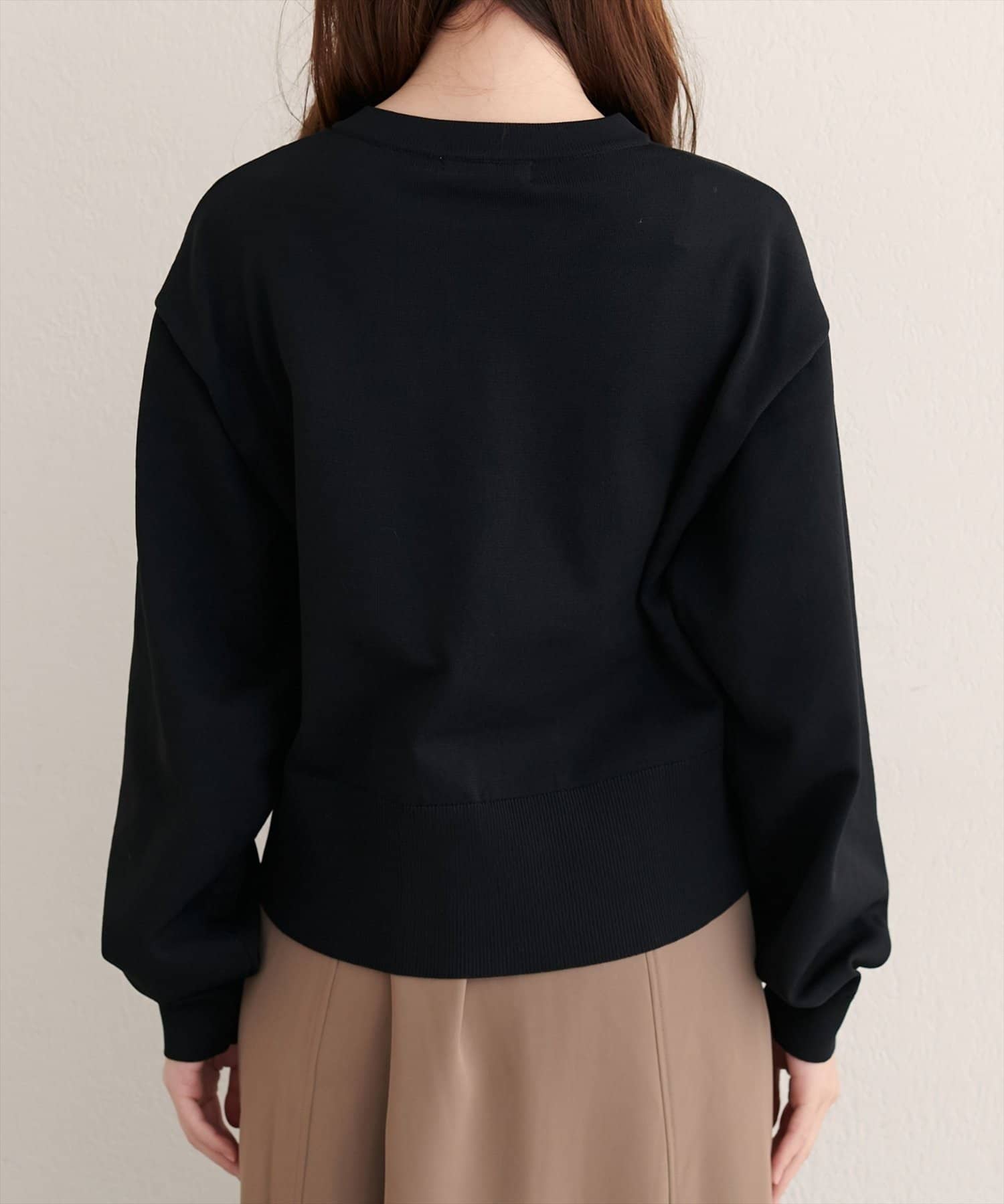 クルーネックのデザインは首元をすっきりと見せ、上品さを演出します。