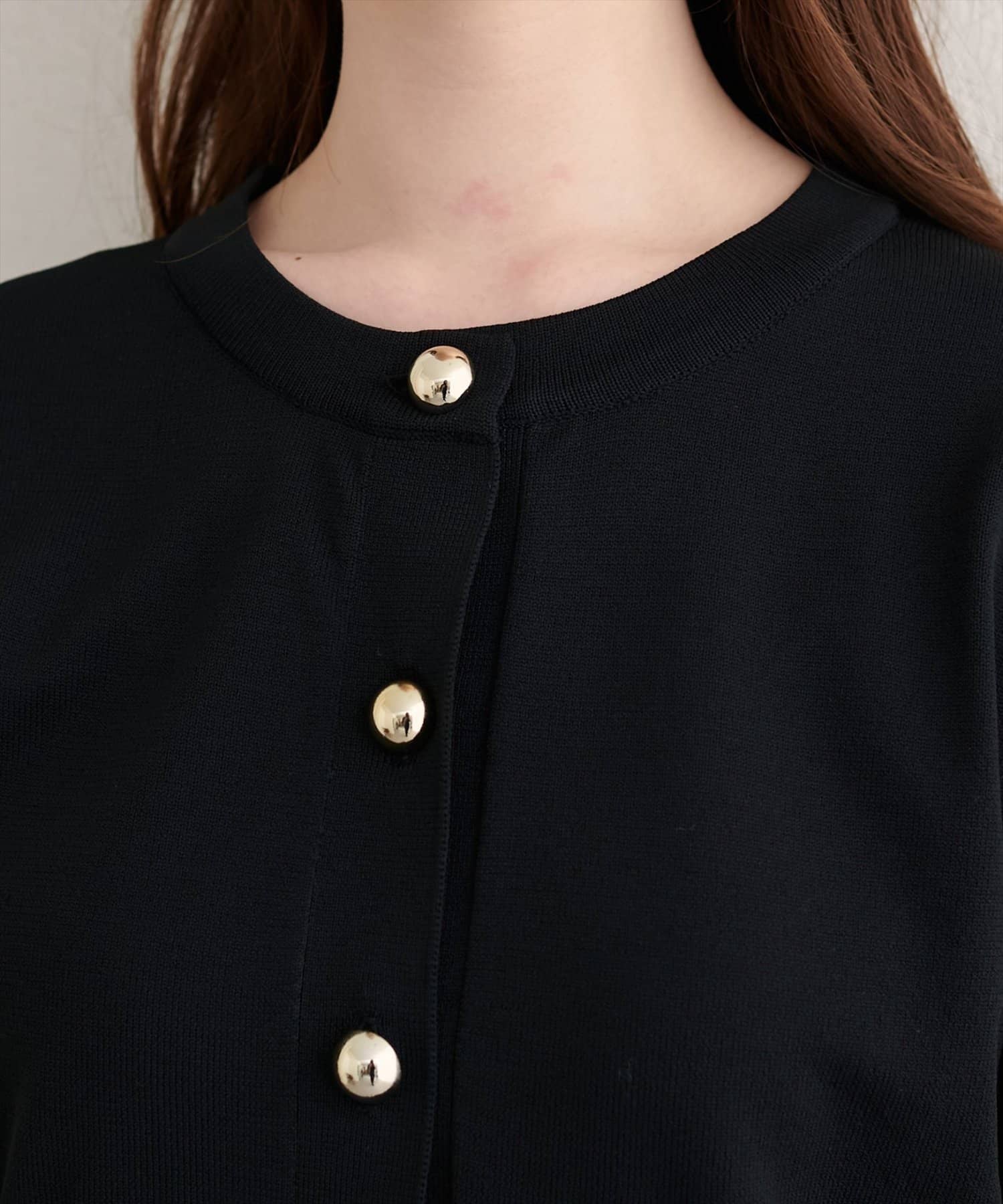 フロントに並んだぷっくりとした金ボタンは、まるでジュエリーのような存在感。コーディネートに華やかさをプラスし、ワンランク上のおしゃれを叶えます。