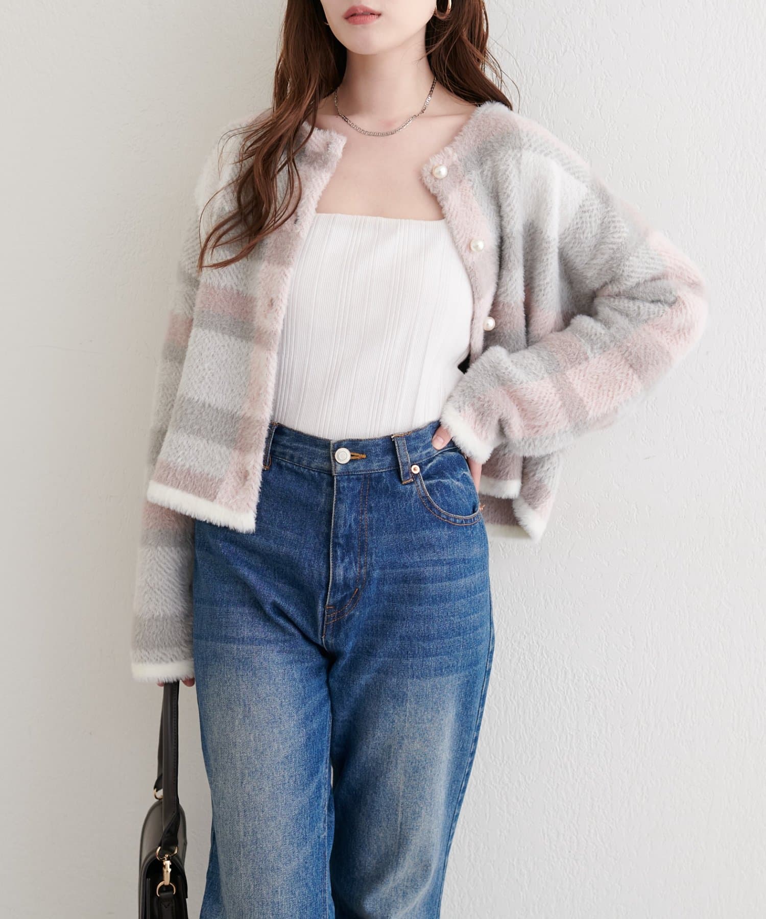 見た目にも暖かなシャギー素材を贅沢に使用し、エアリーな質感が女性らしさを引き立てます。