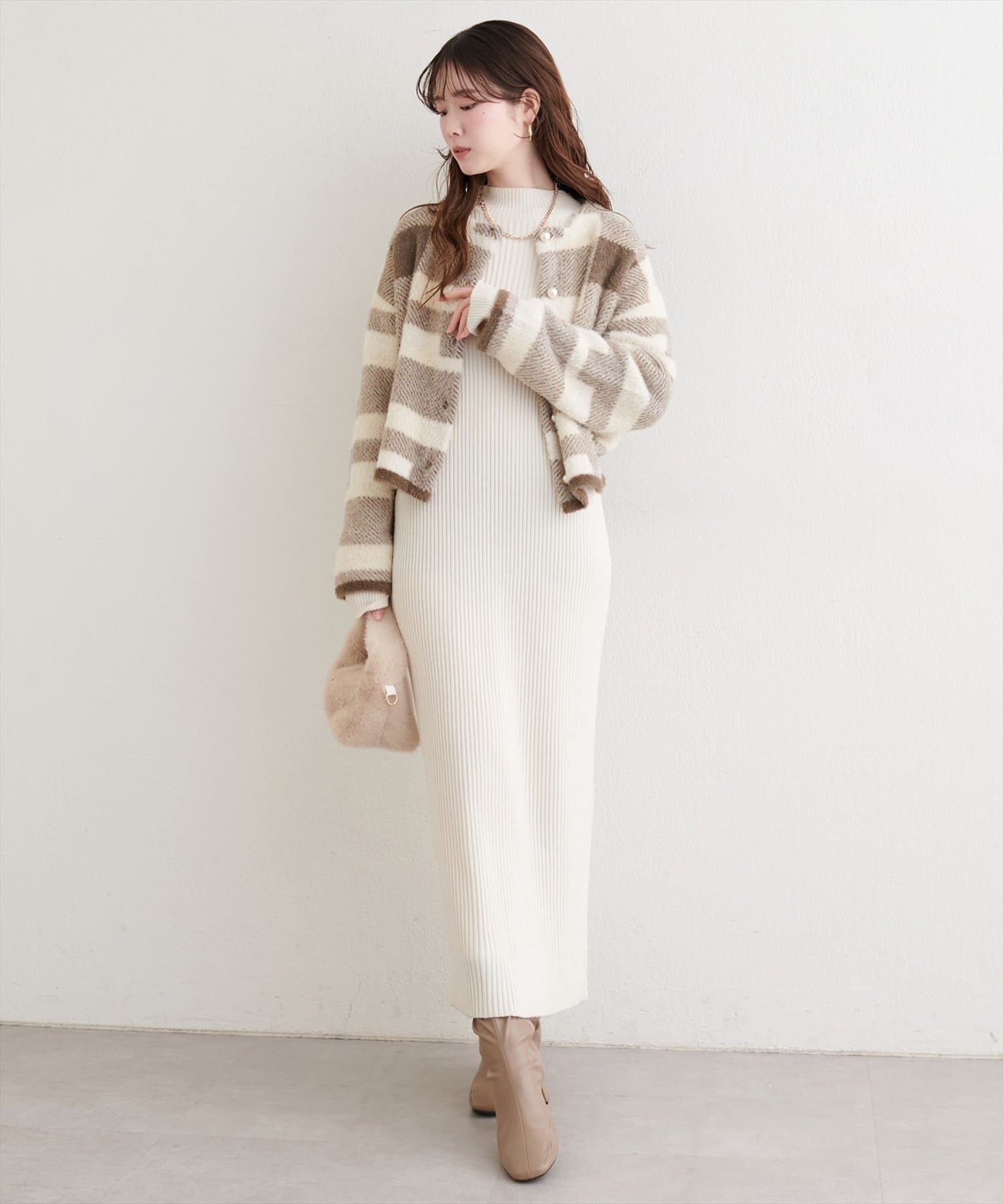 ワンピースやスカートと合わせれば、フェミニンで上品な印象に仕上がります。