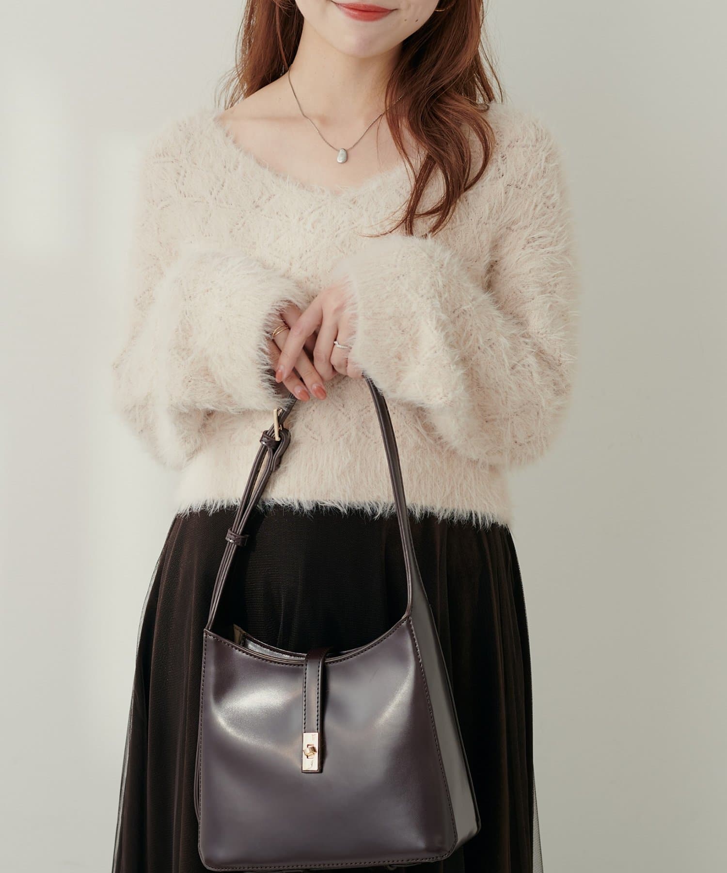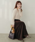 ロングスカートやタックパンツに合わせれば上品に、デニムでカジュアルに外しても可愛い万能ニットです。