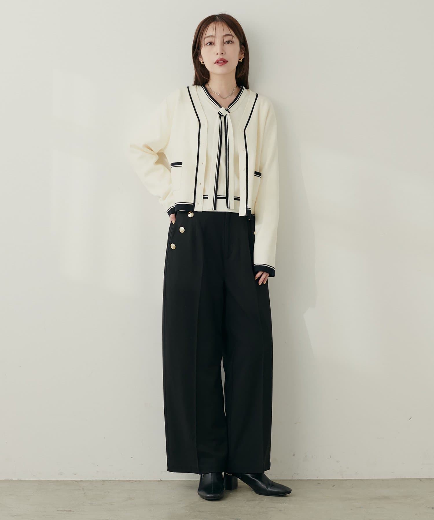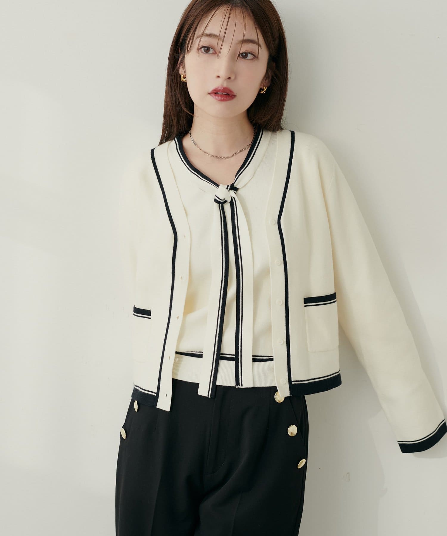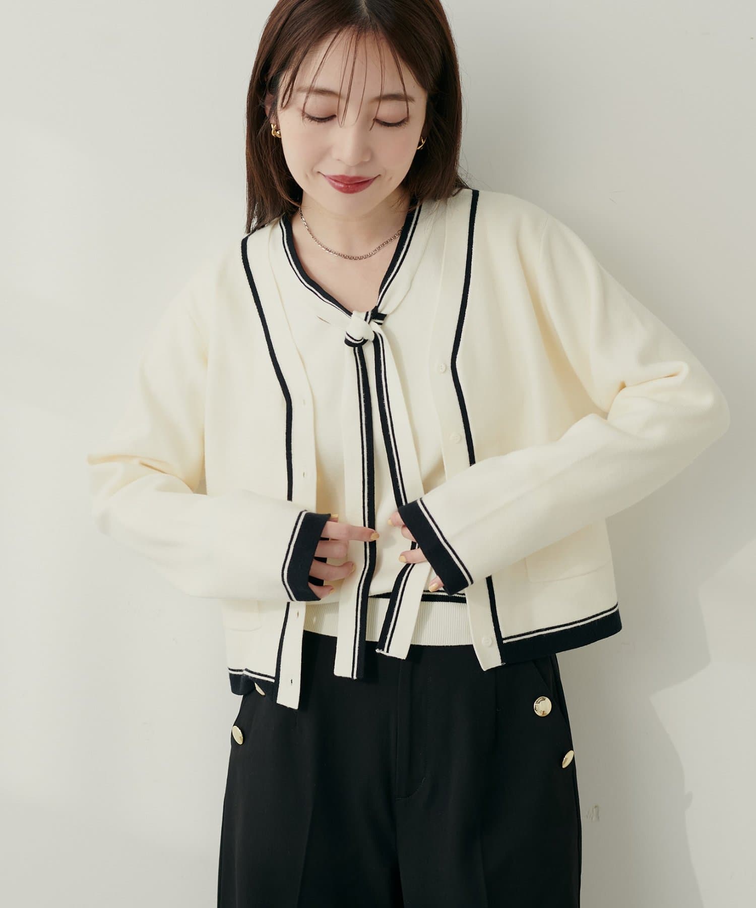 0352051080 配色ラインボウタイニット
