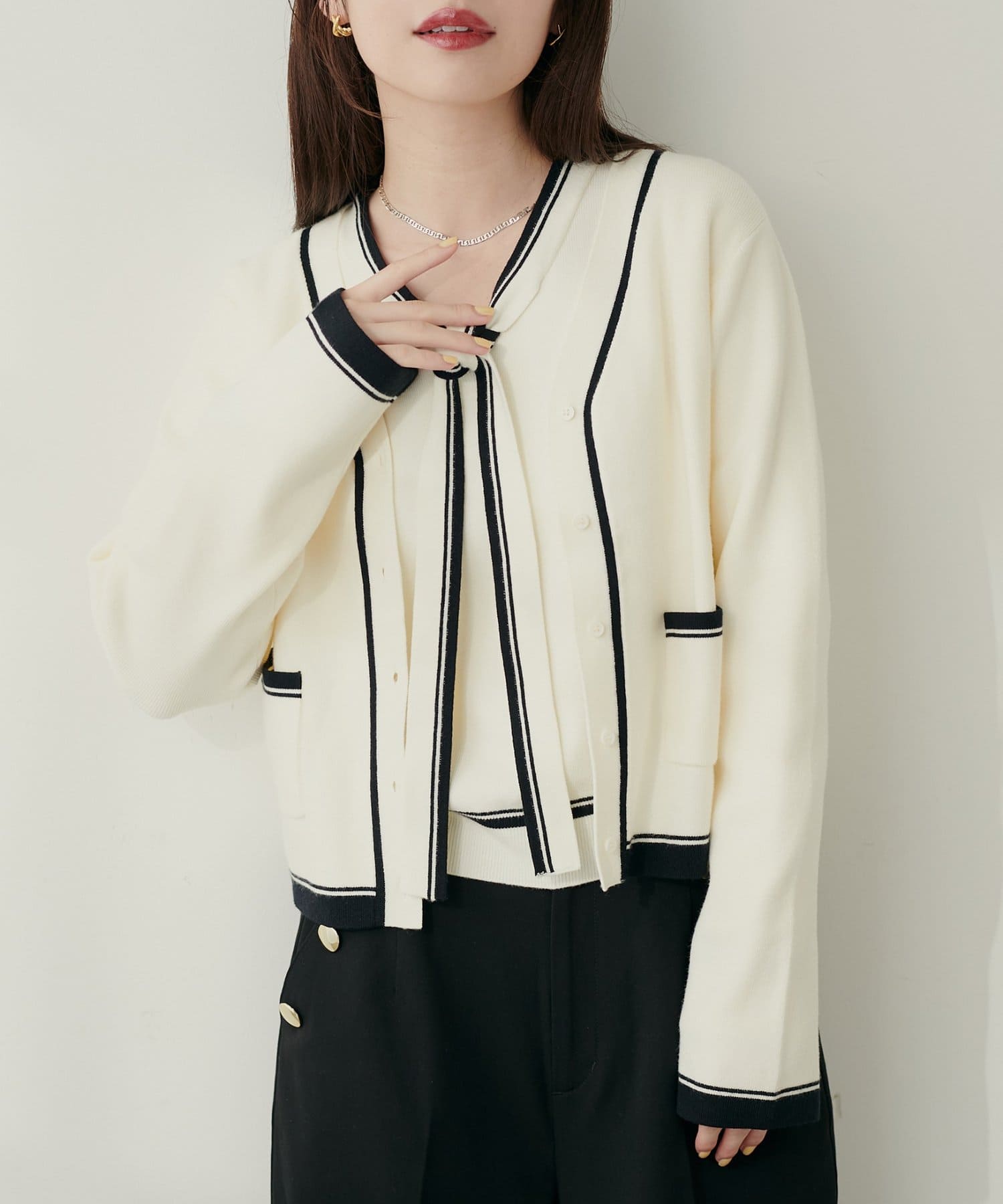 【パルクロ・店舗限定】配色ラインカーディガン