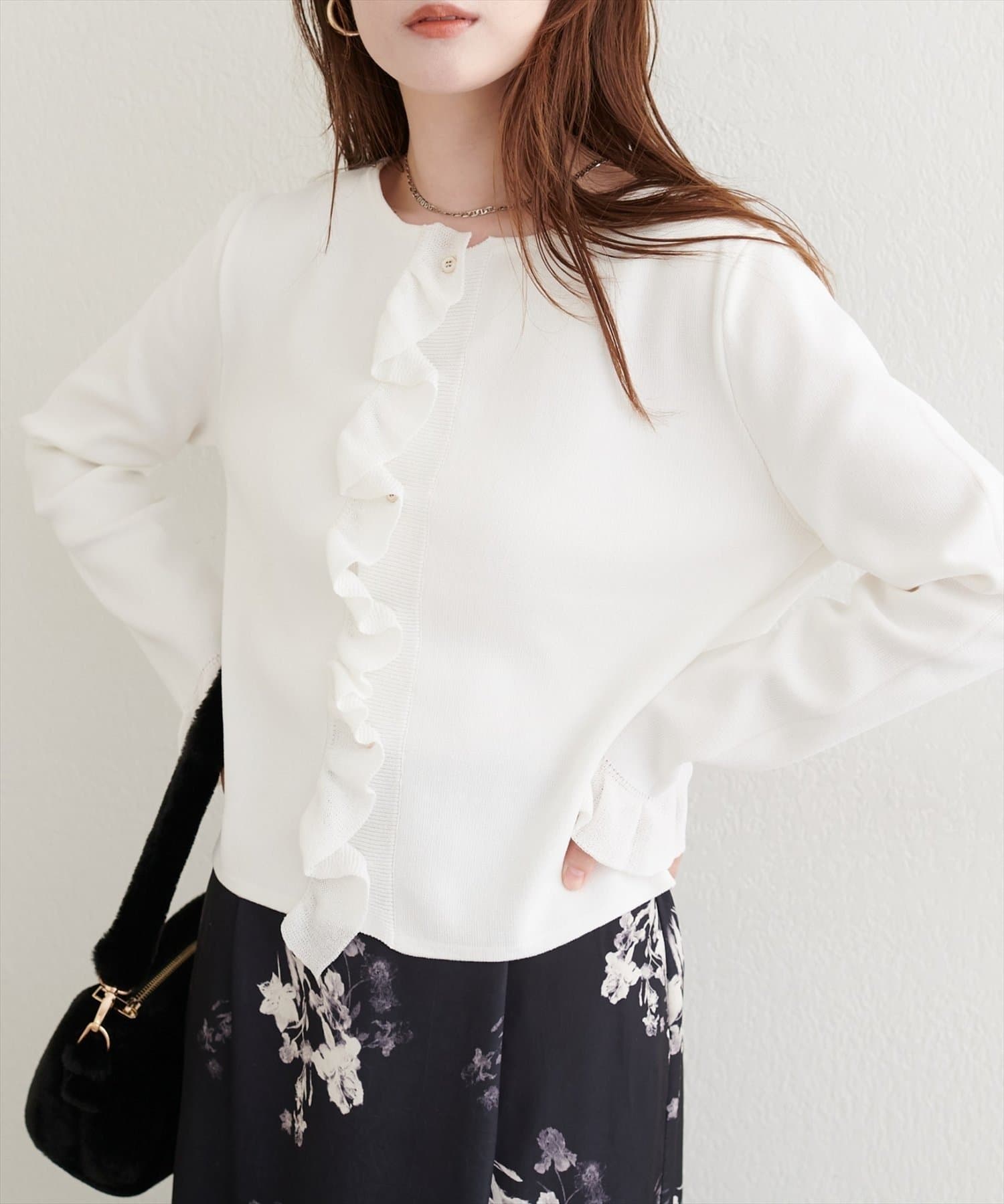 【natural couture】フリルディティールカーディガン
