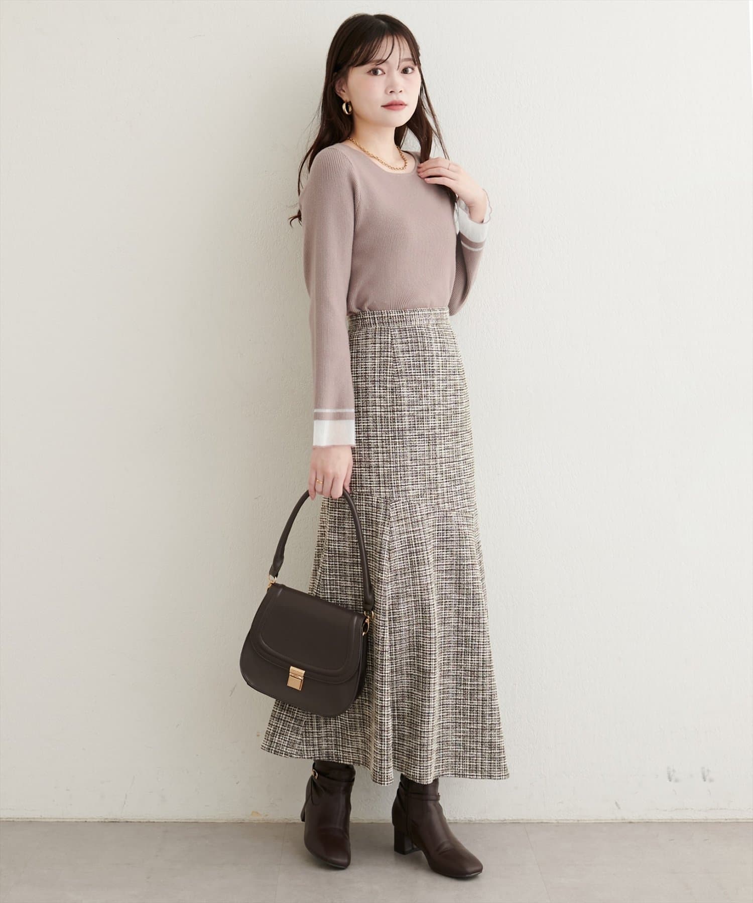 きれいめなスタイリングがお好みの場合は、タイトスカートやフレアスカートと合わせて、上品な雰囲気に。