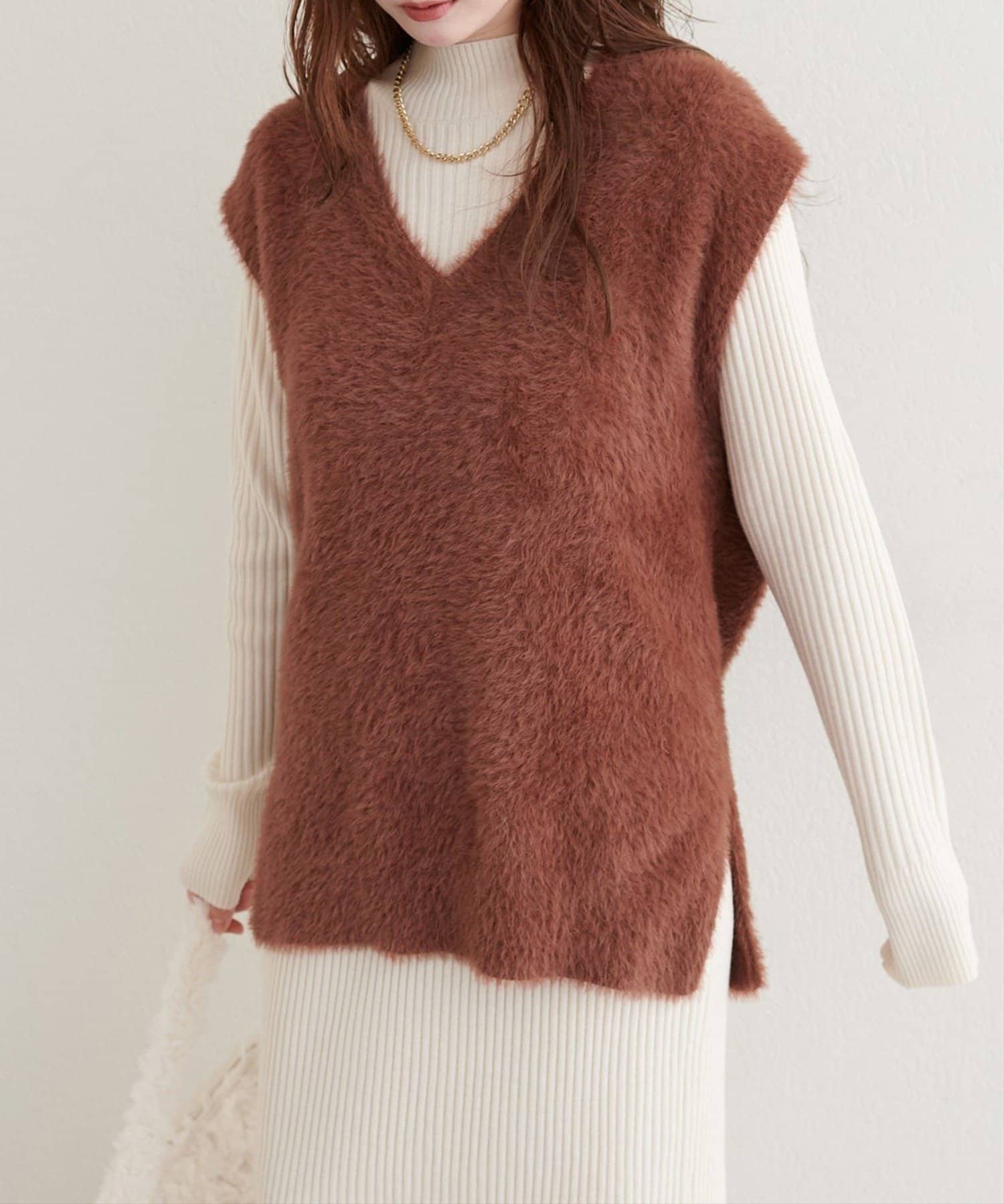 【natural couture】フェザーヤーンニットベスト