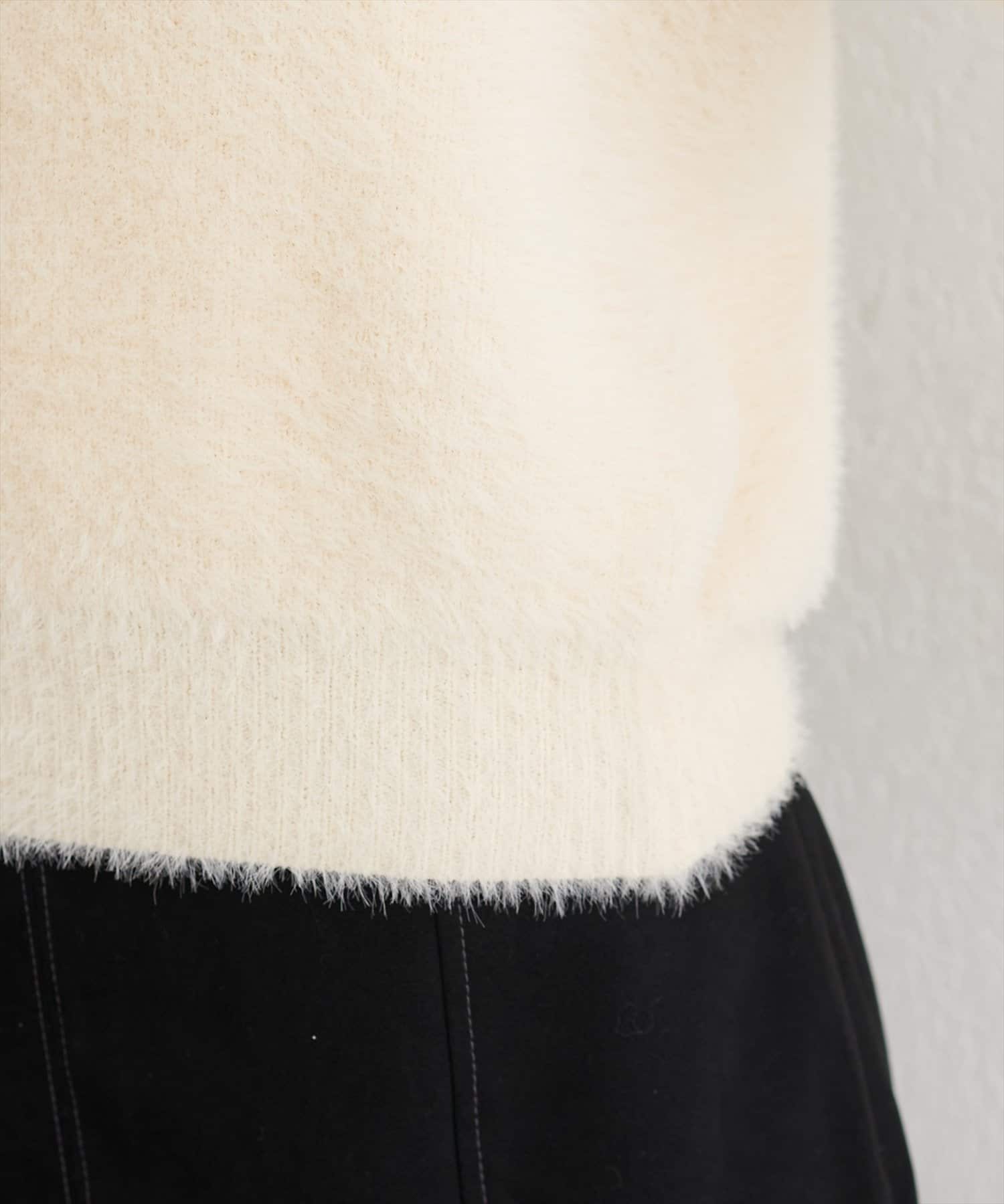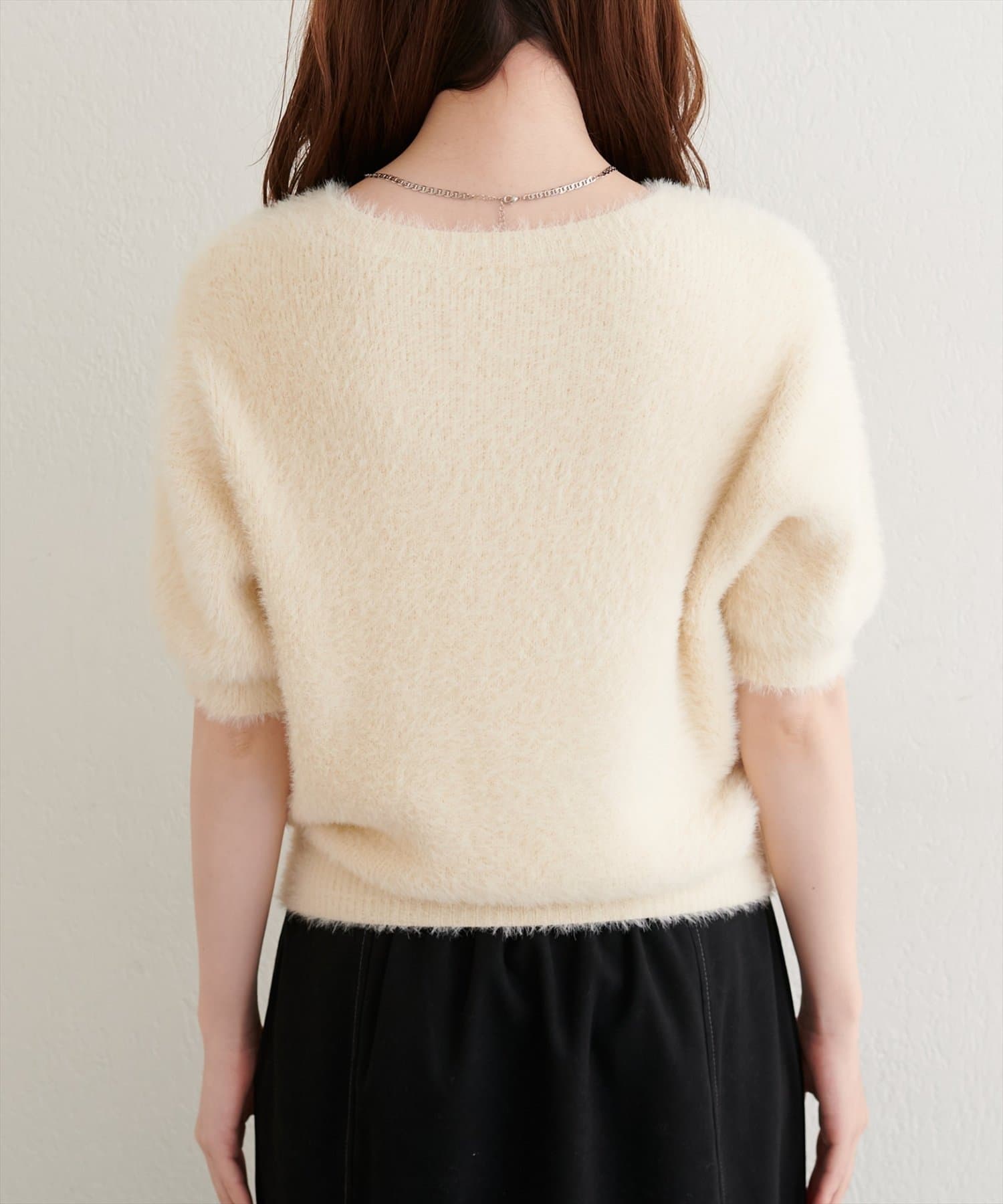 • natural couture(ナチュラルクチュール) フェザーヤーン半袖ニットプルオーバー