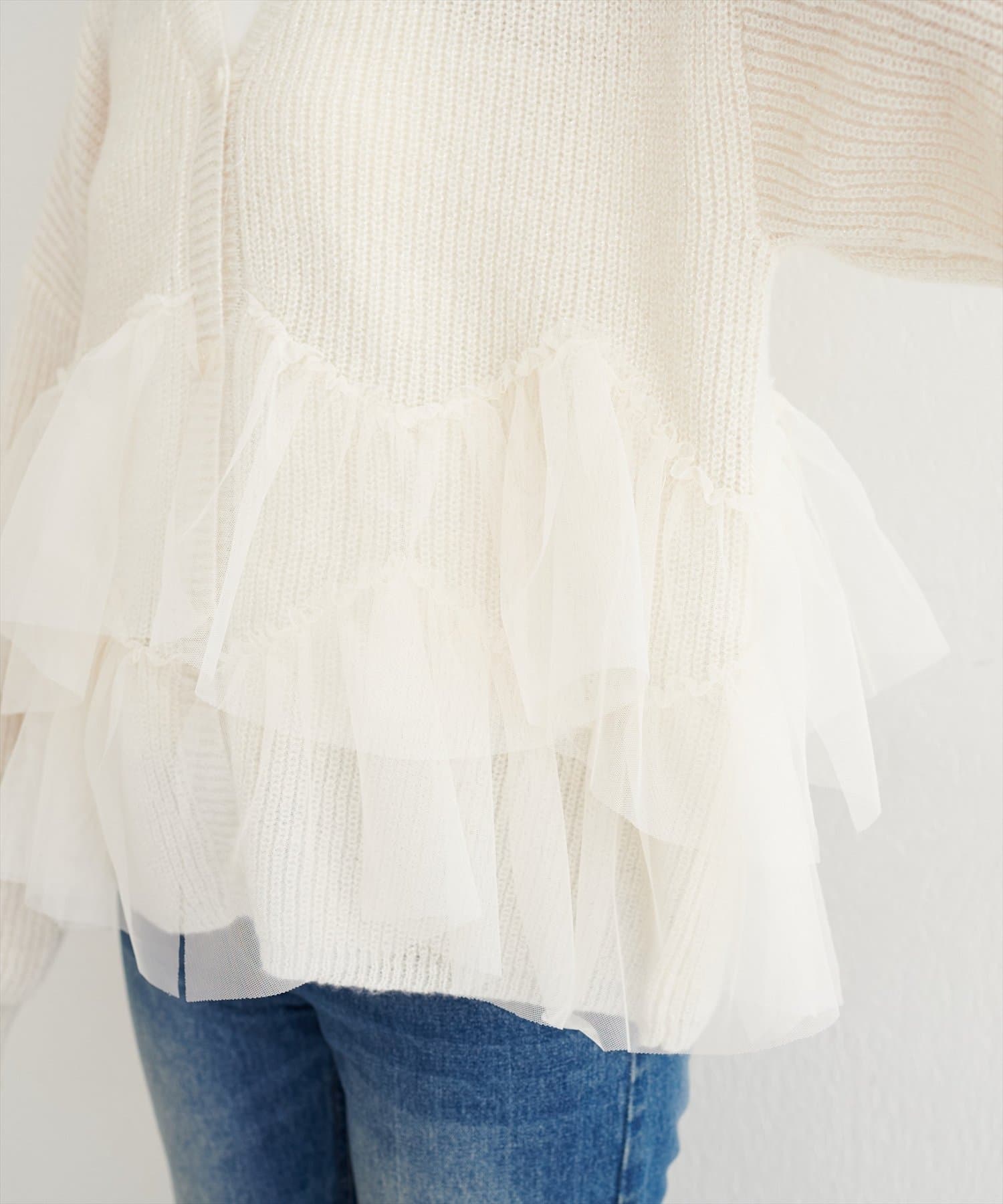 Vネックラインがデコルテを美しく見せ、抜け感をプラスします。