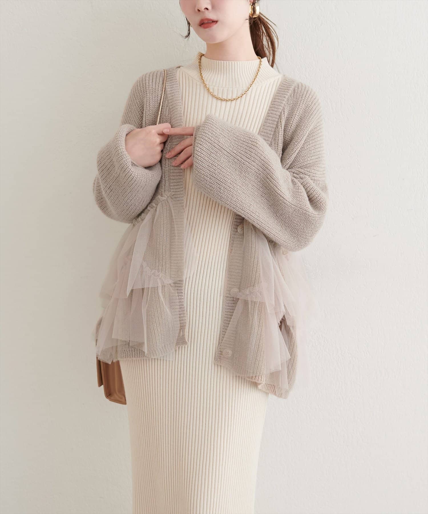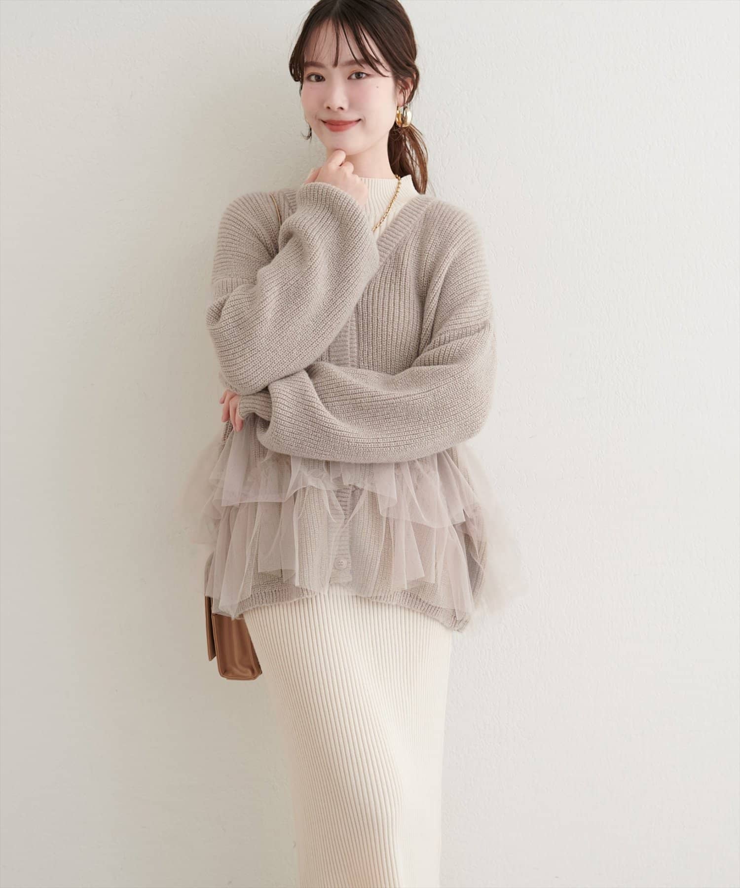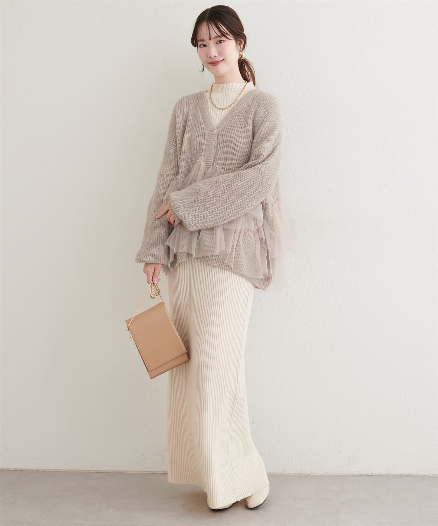 ワンピースやスカートと合わせれば、フェミニンなスタイリングが完成します。