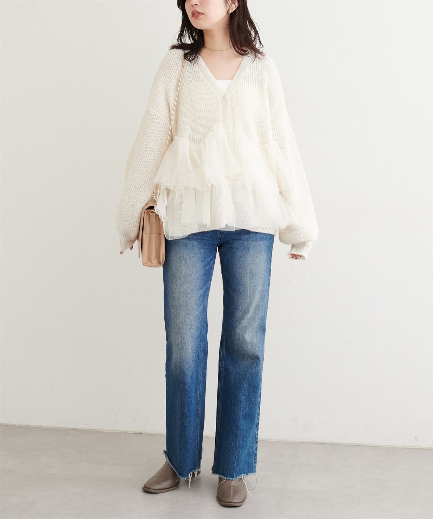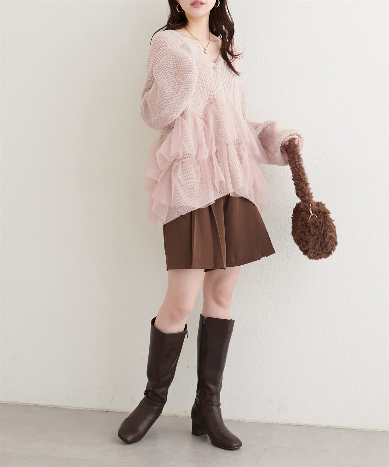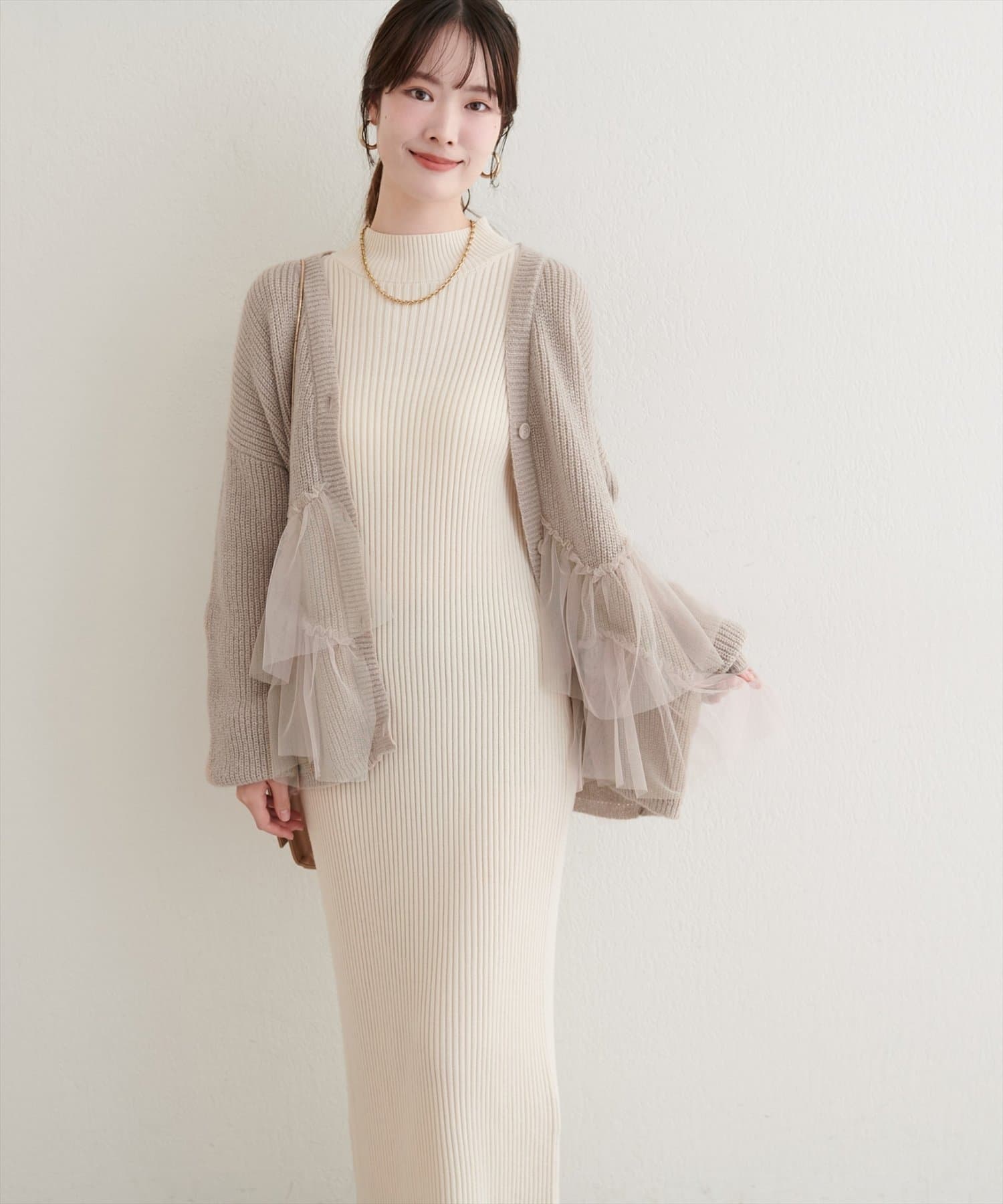 ワンピースやスカートと合わせれば、フェミニンなスタイリングが完成します。