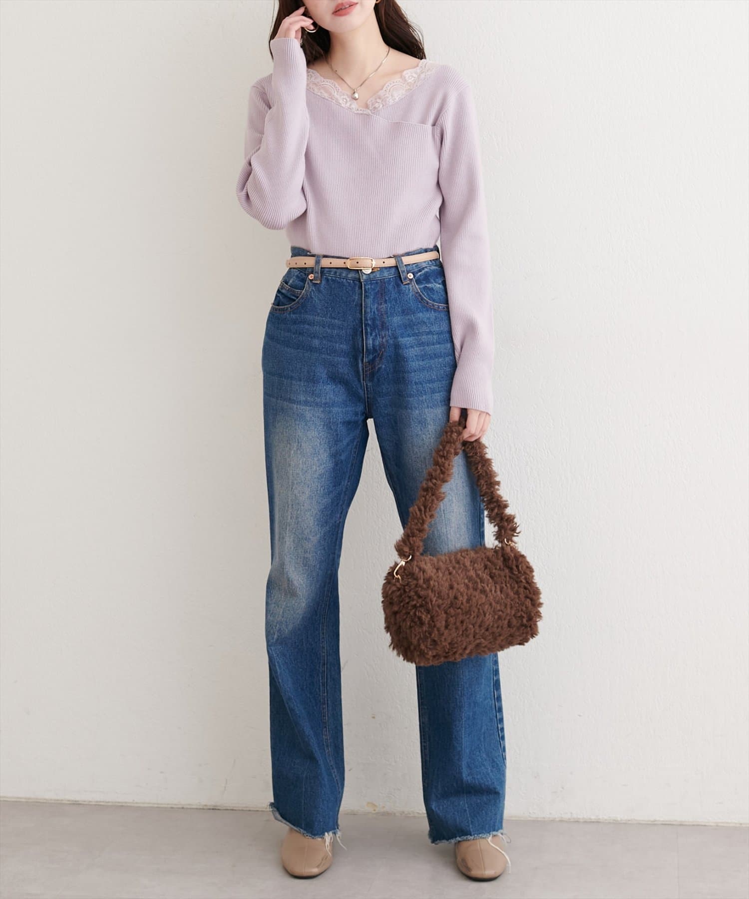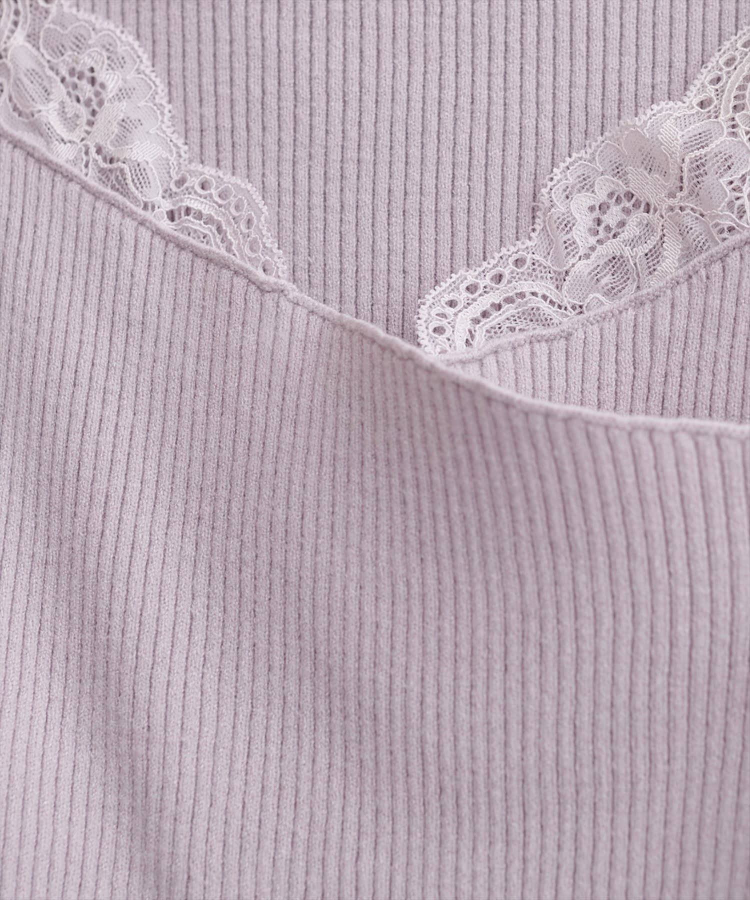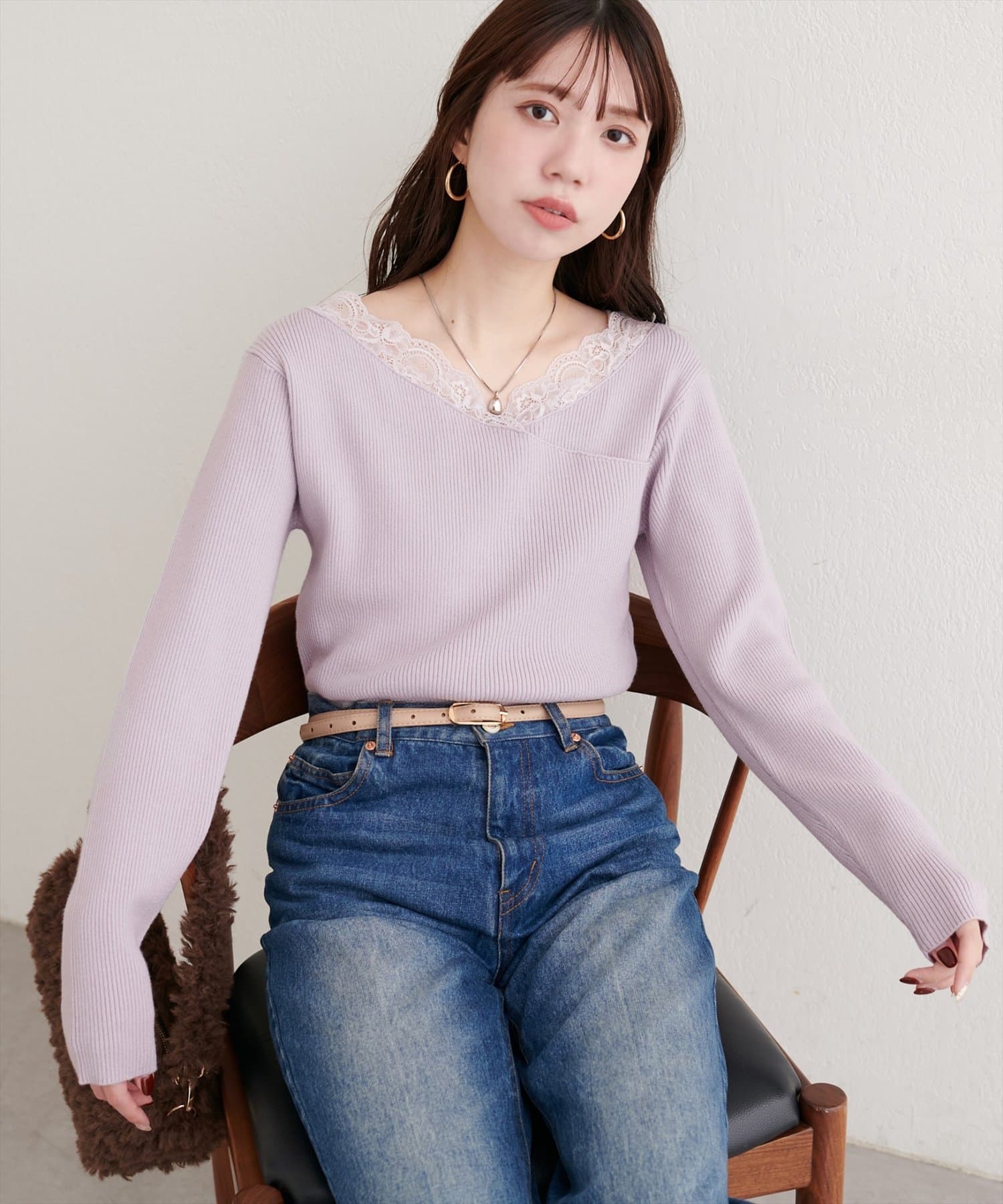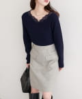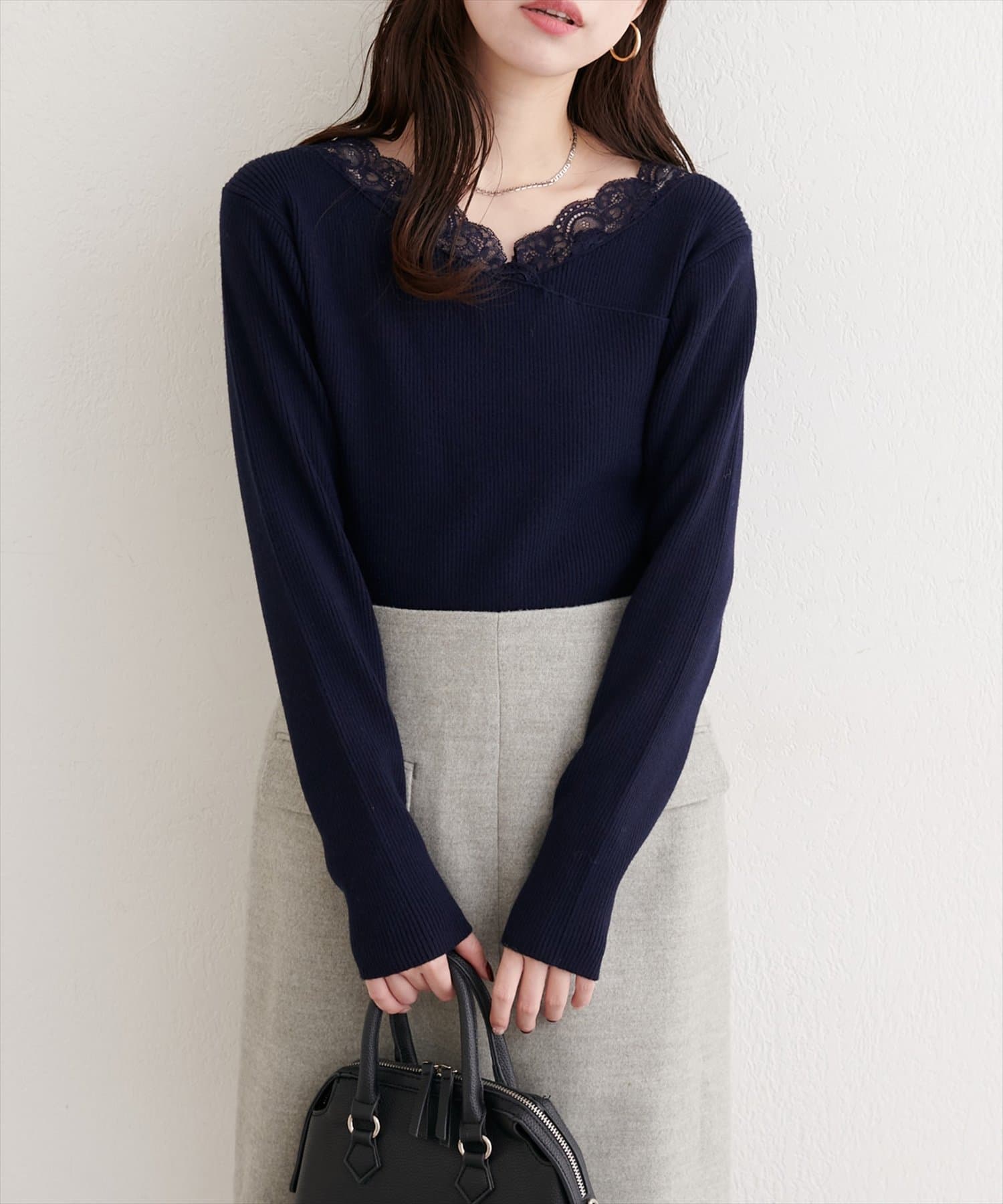 繊細なレースとリブニットのミックスが、大人の女性らしさを引き立てるプルオーバー。
