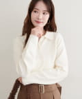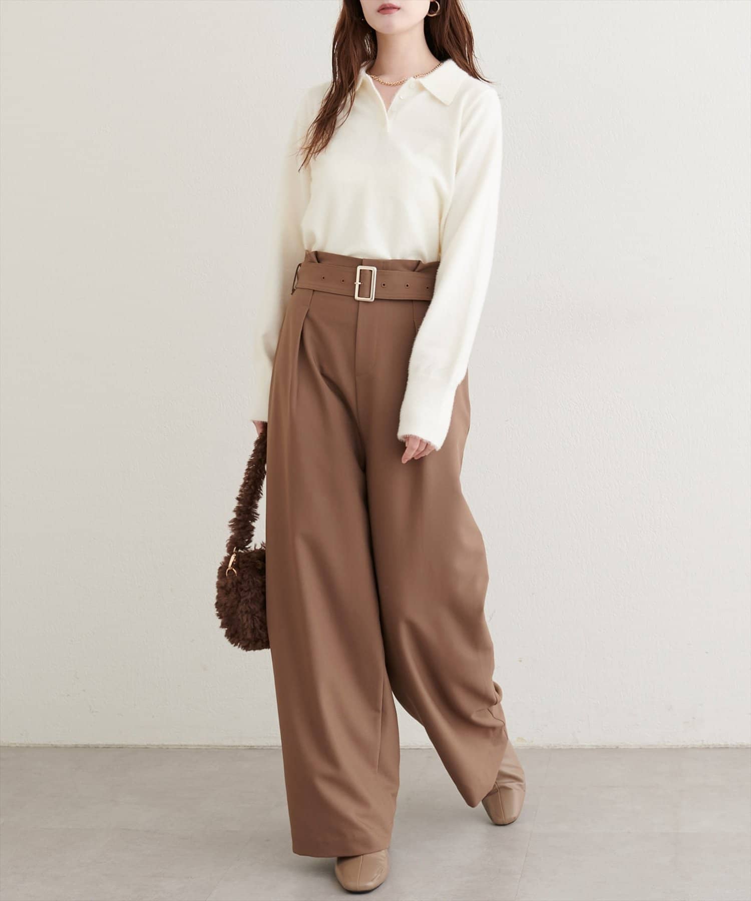 ブラウスやカットソーをインナーにレイヤードして衿を出すことで、よりこなれた印象に。