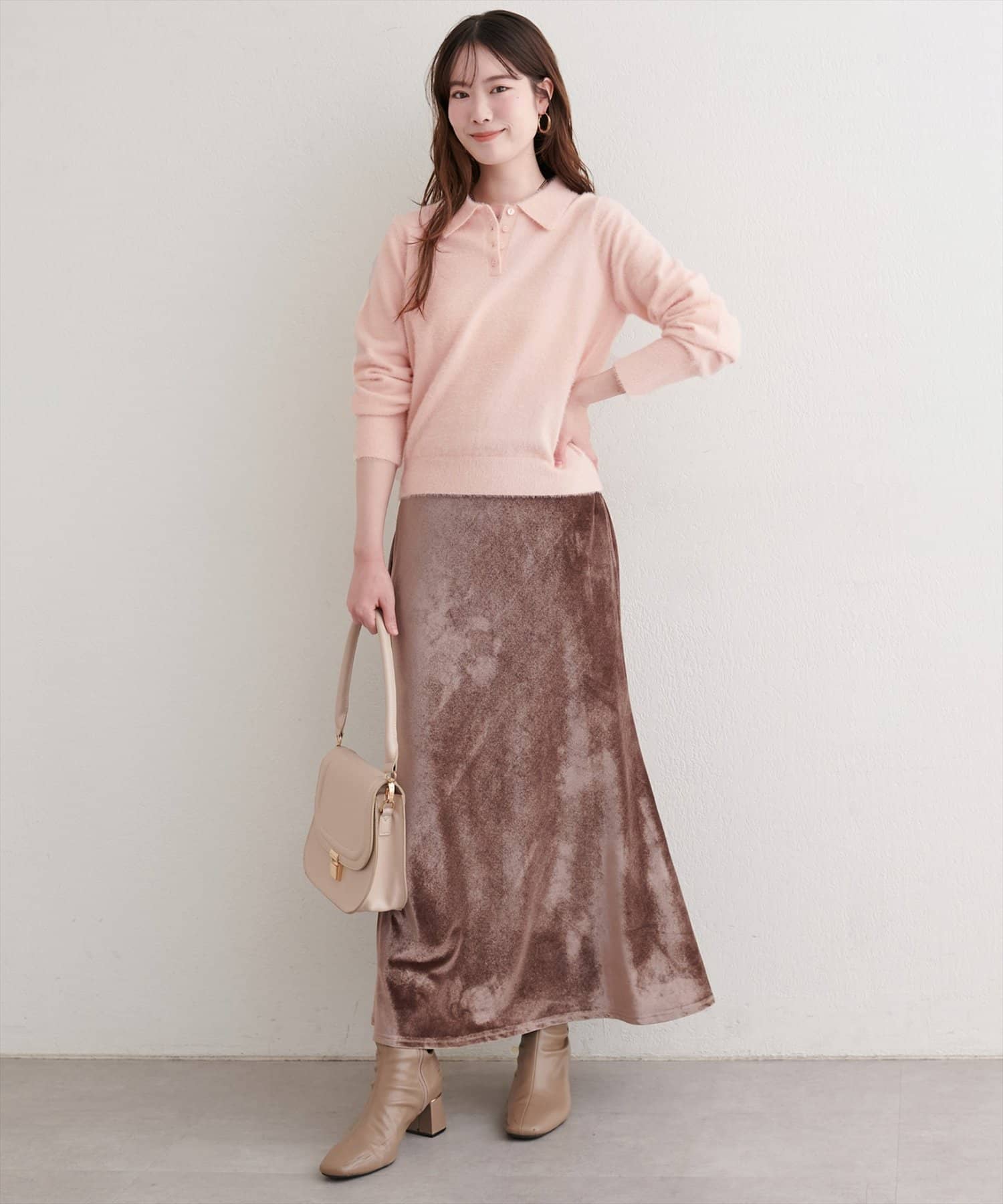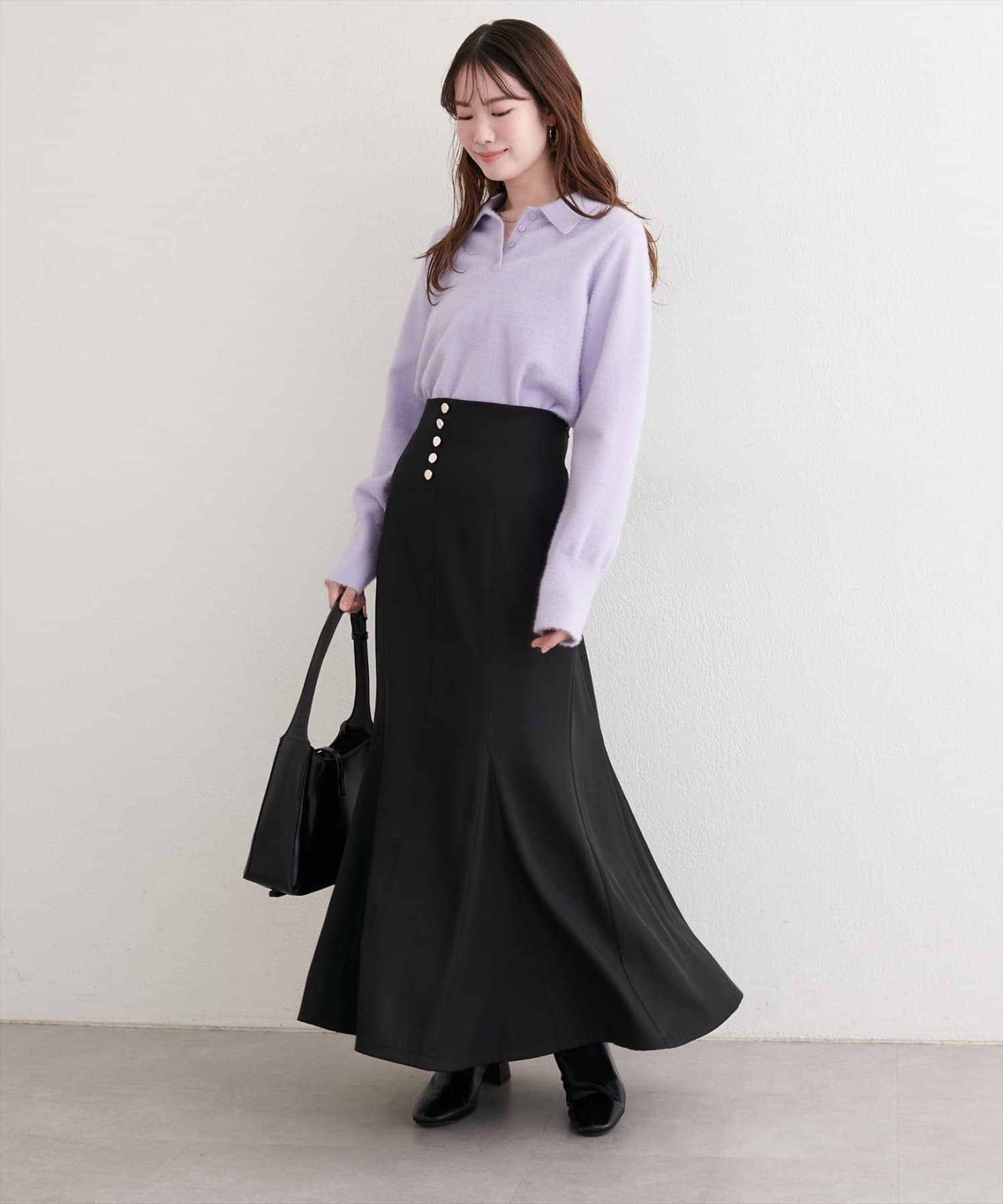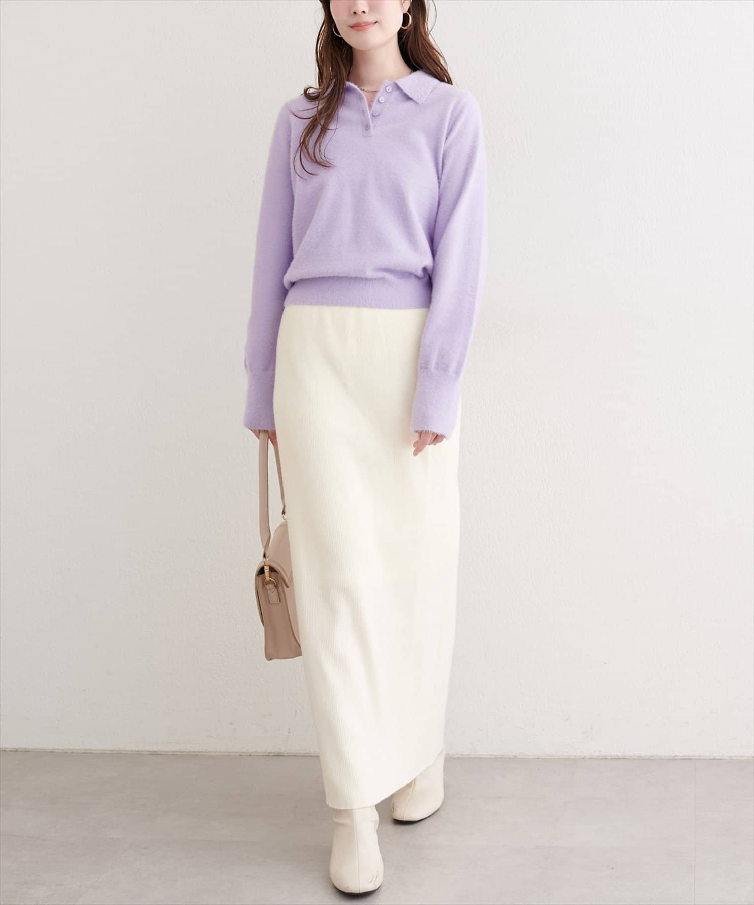 フレアスカートやタイトスカートを合わせて、上品に着こなすのも素敵です。