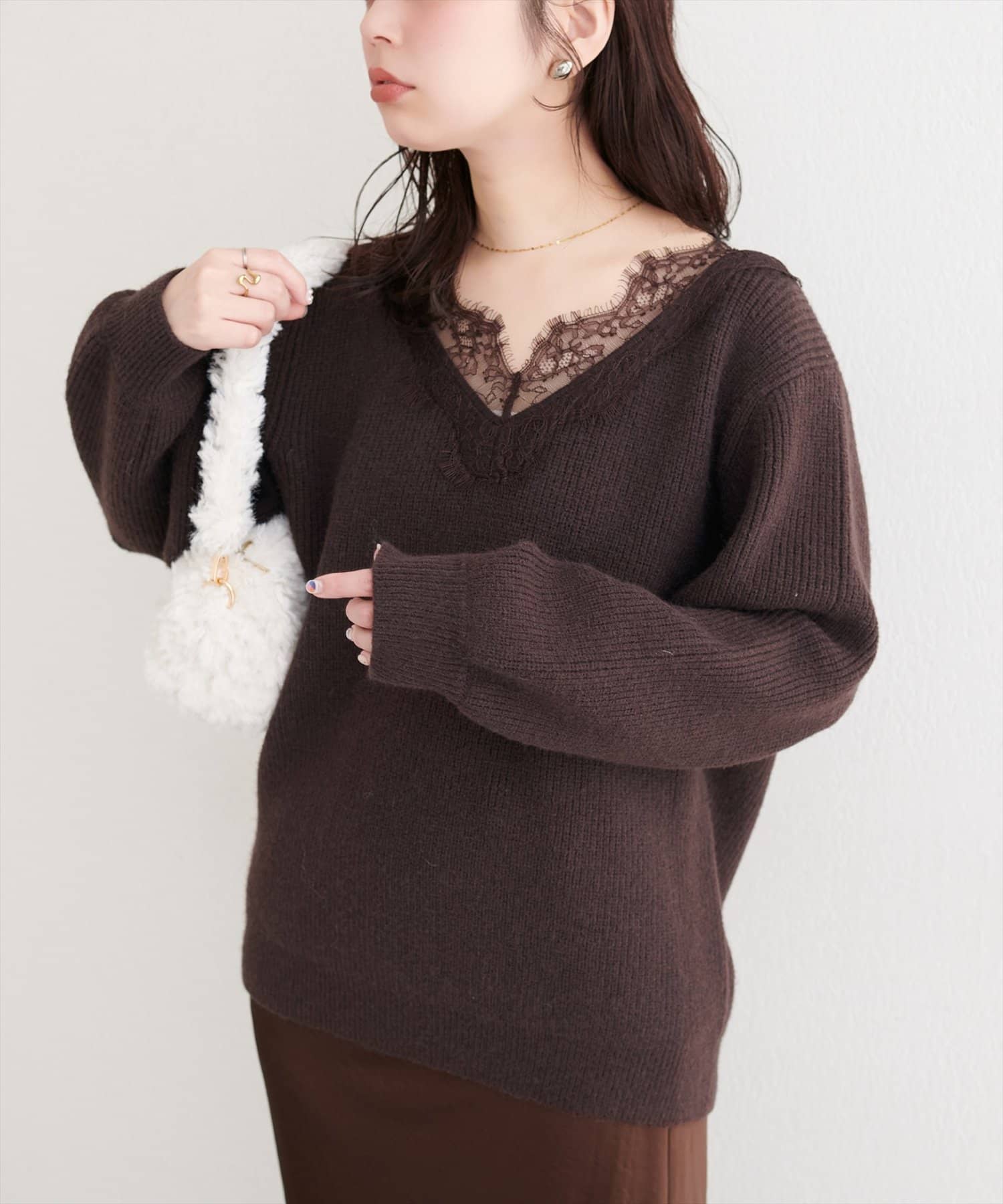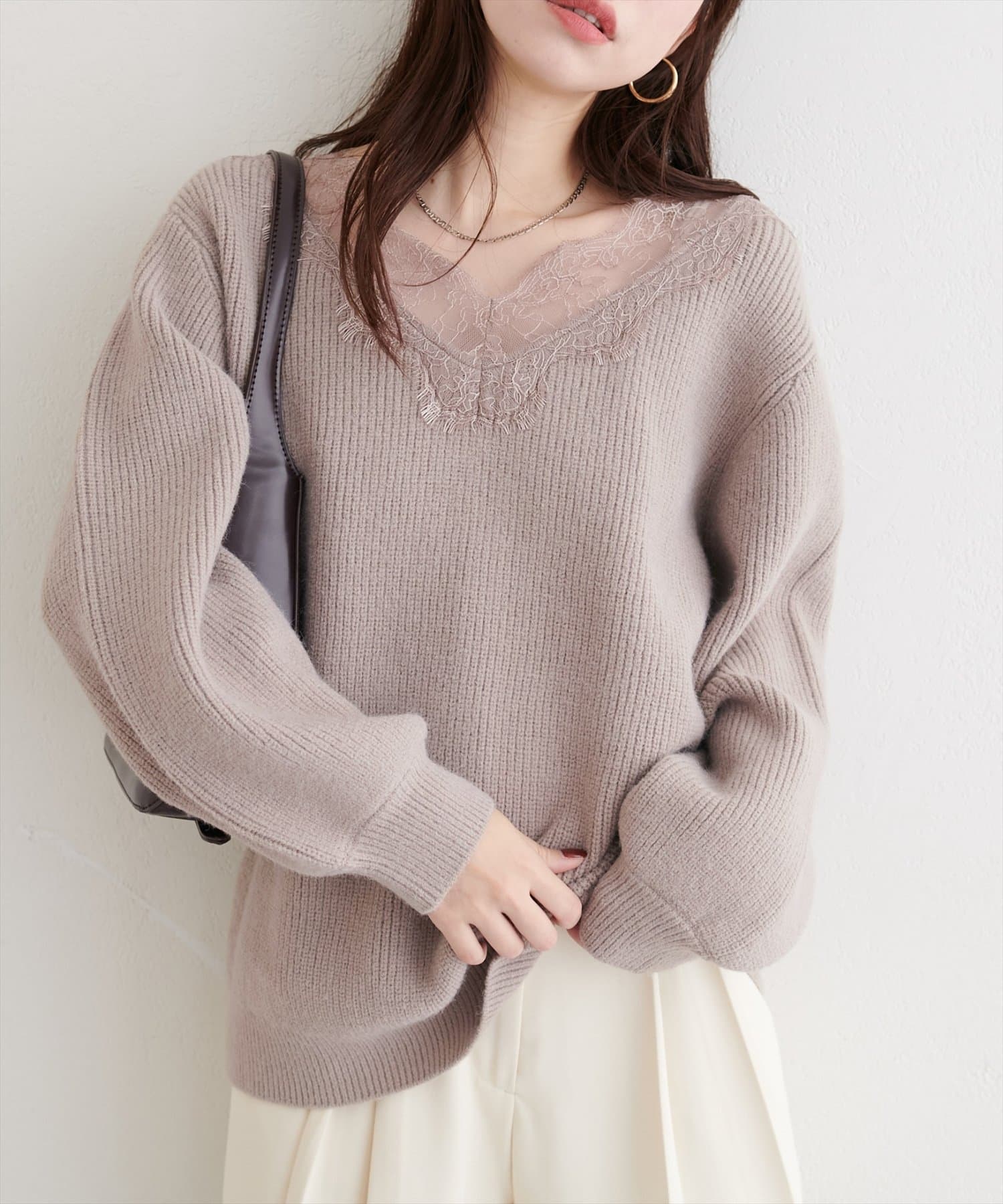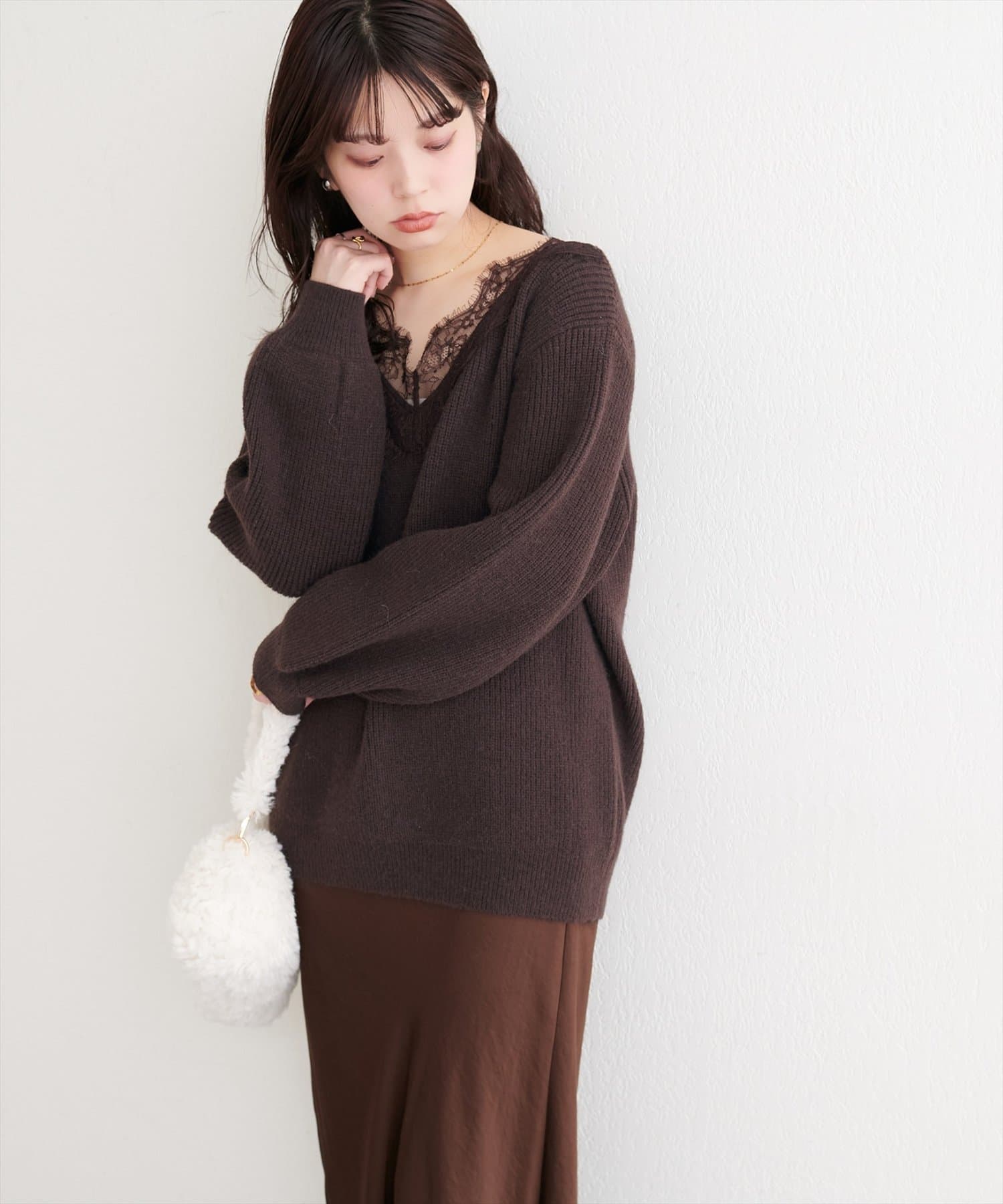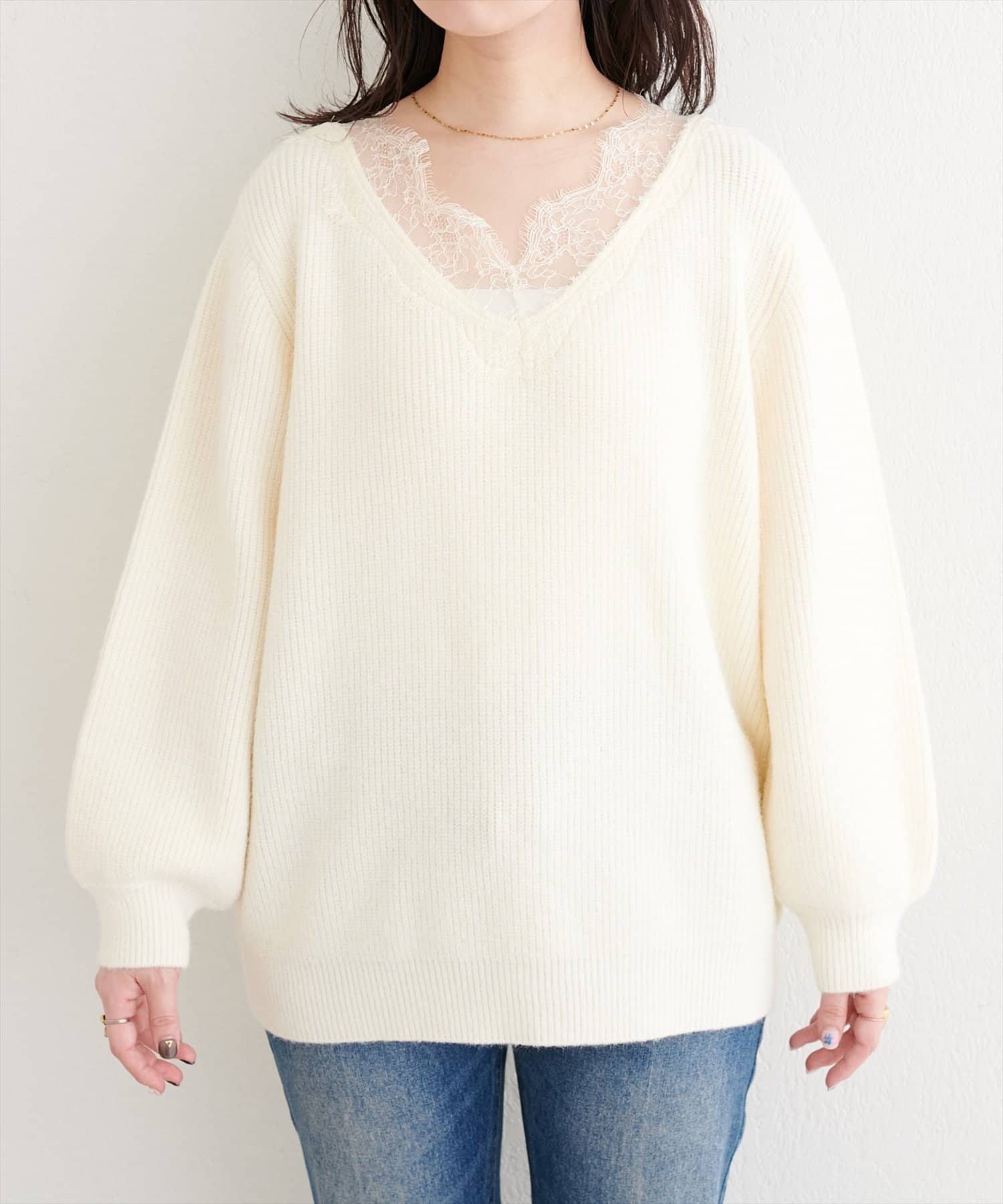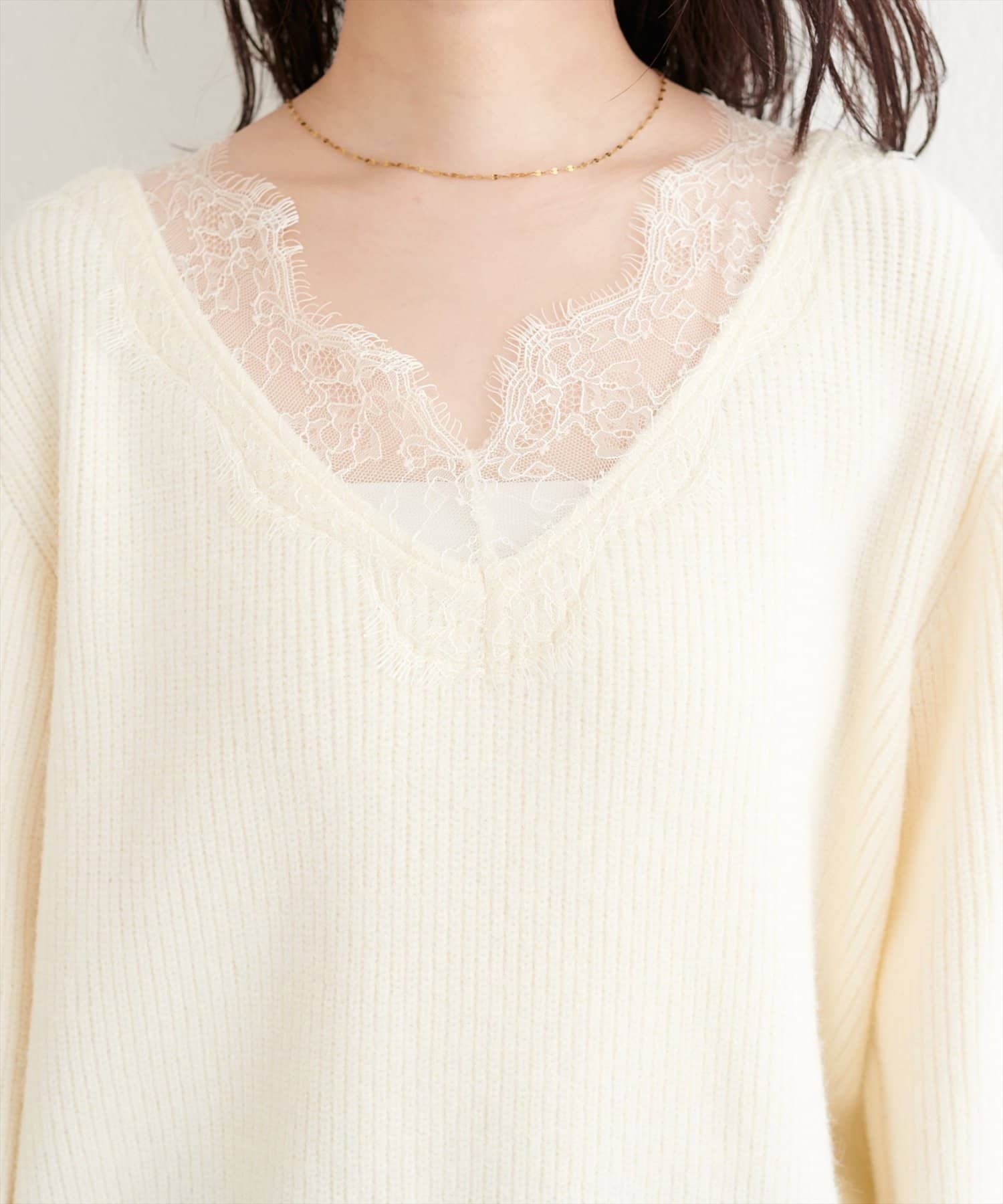 【WEB限定】レースVネックニット