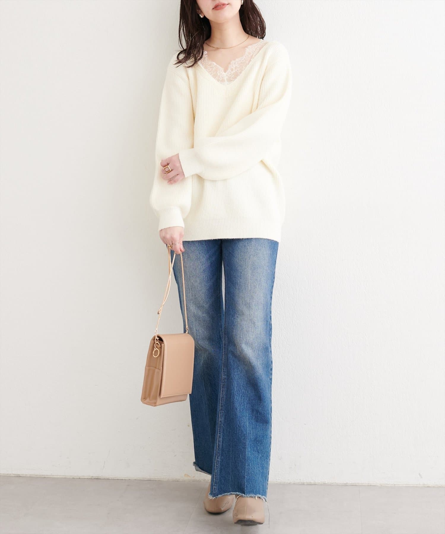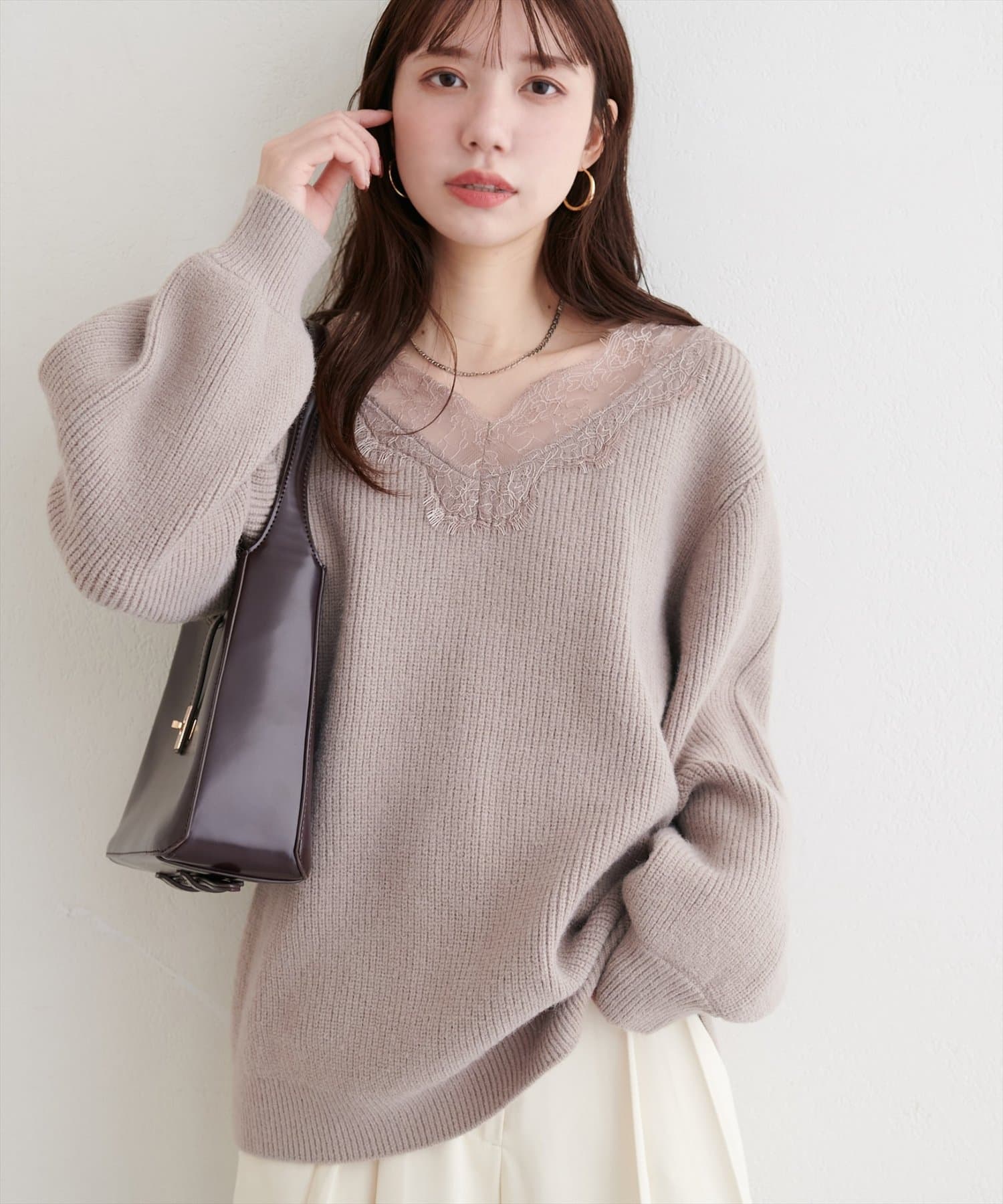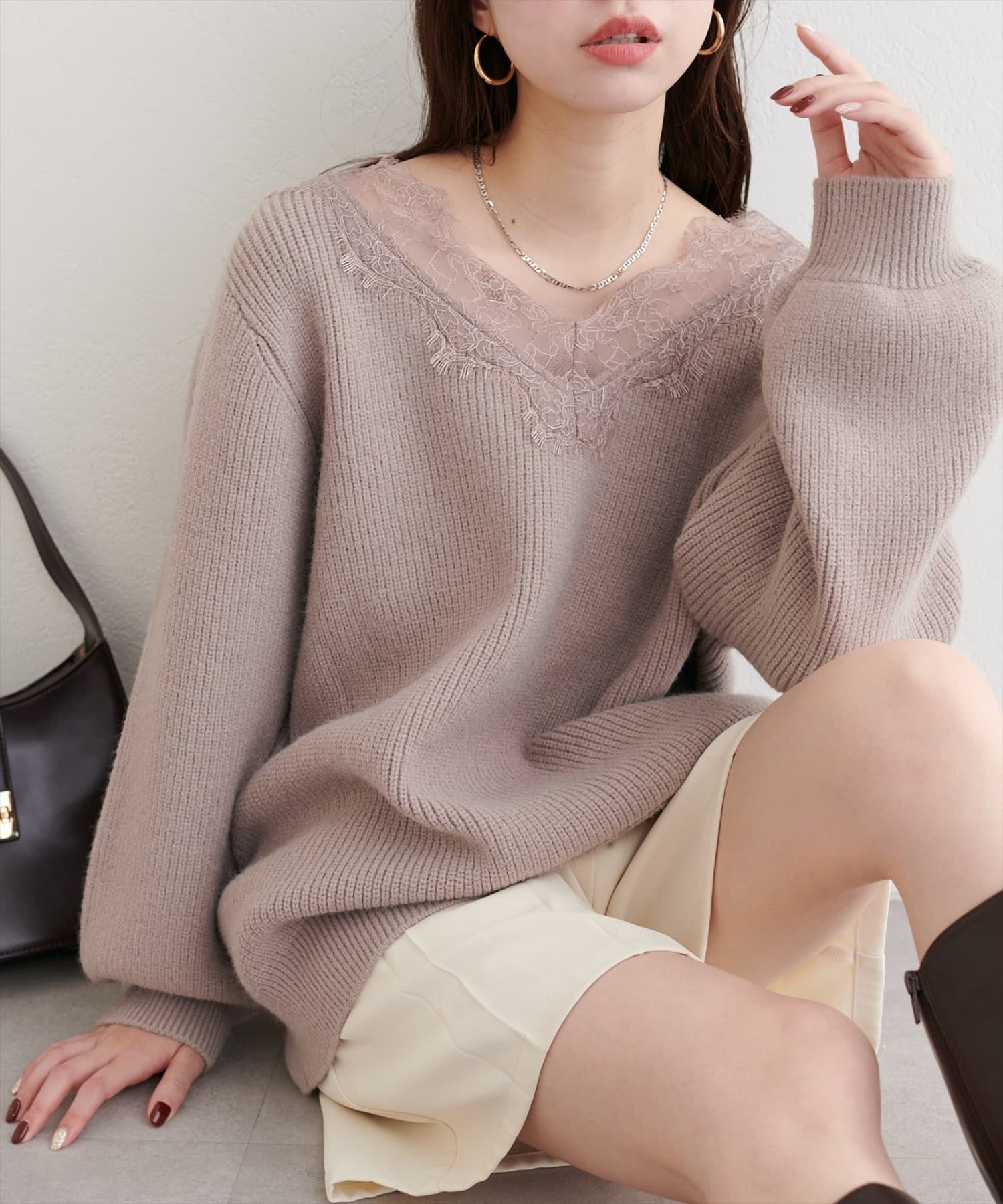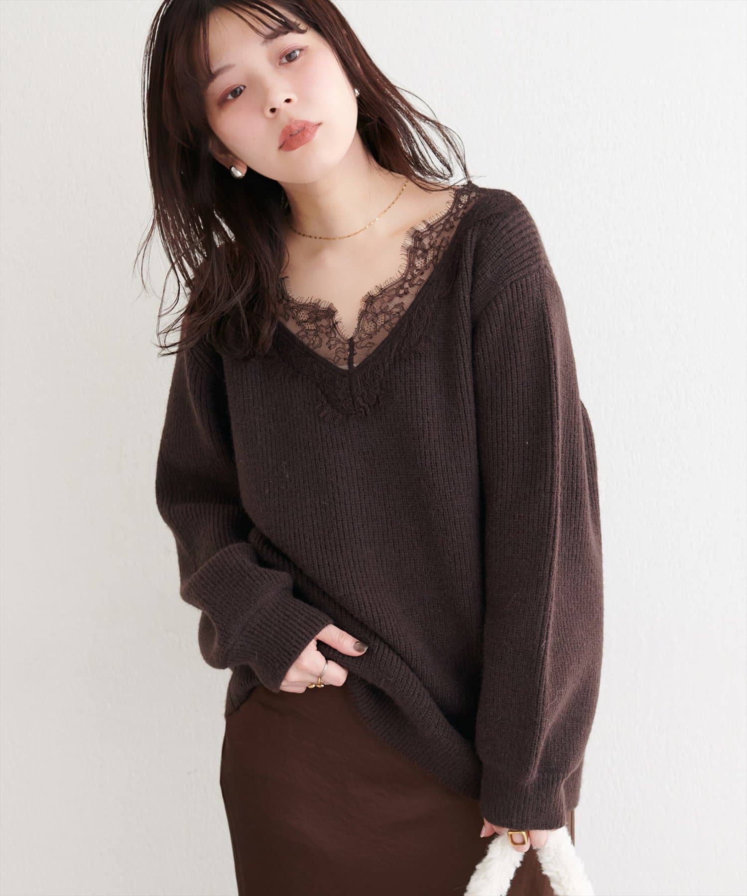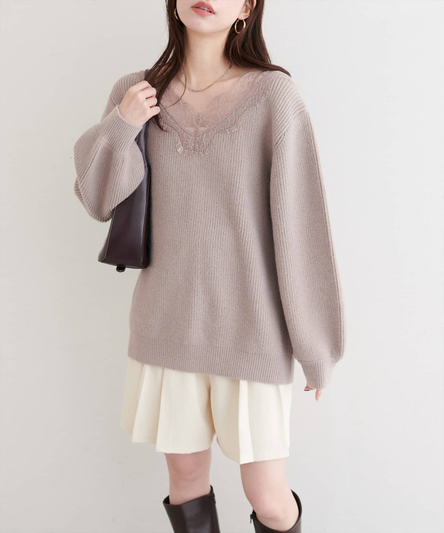 【WEB限定】レースVネックニット