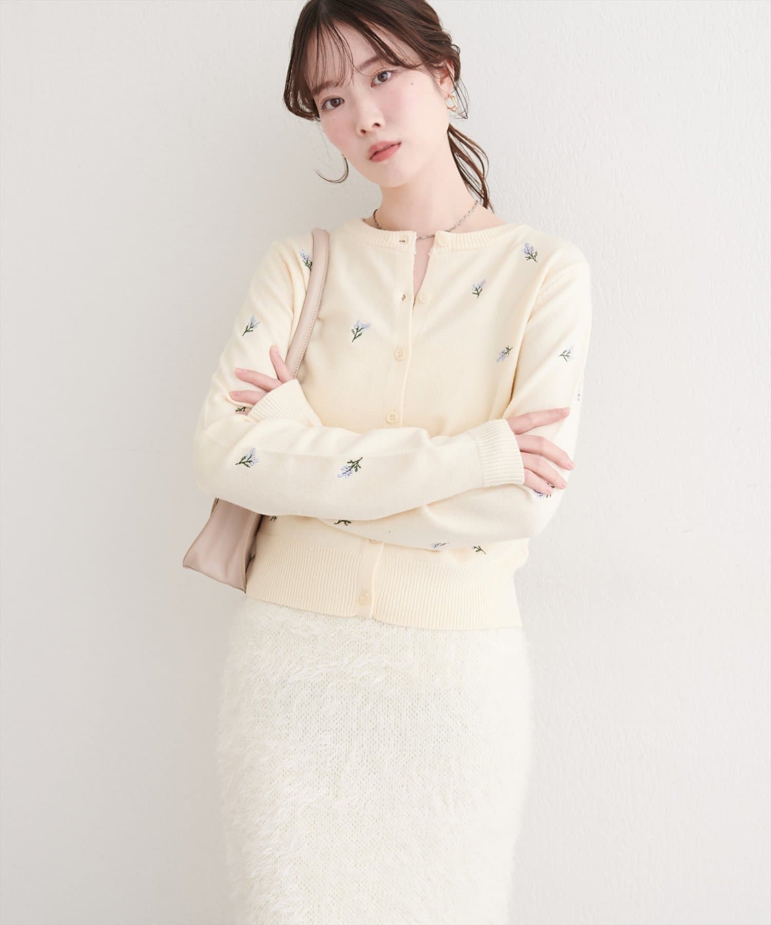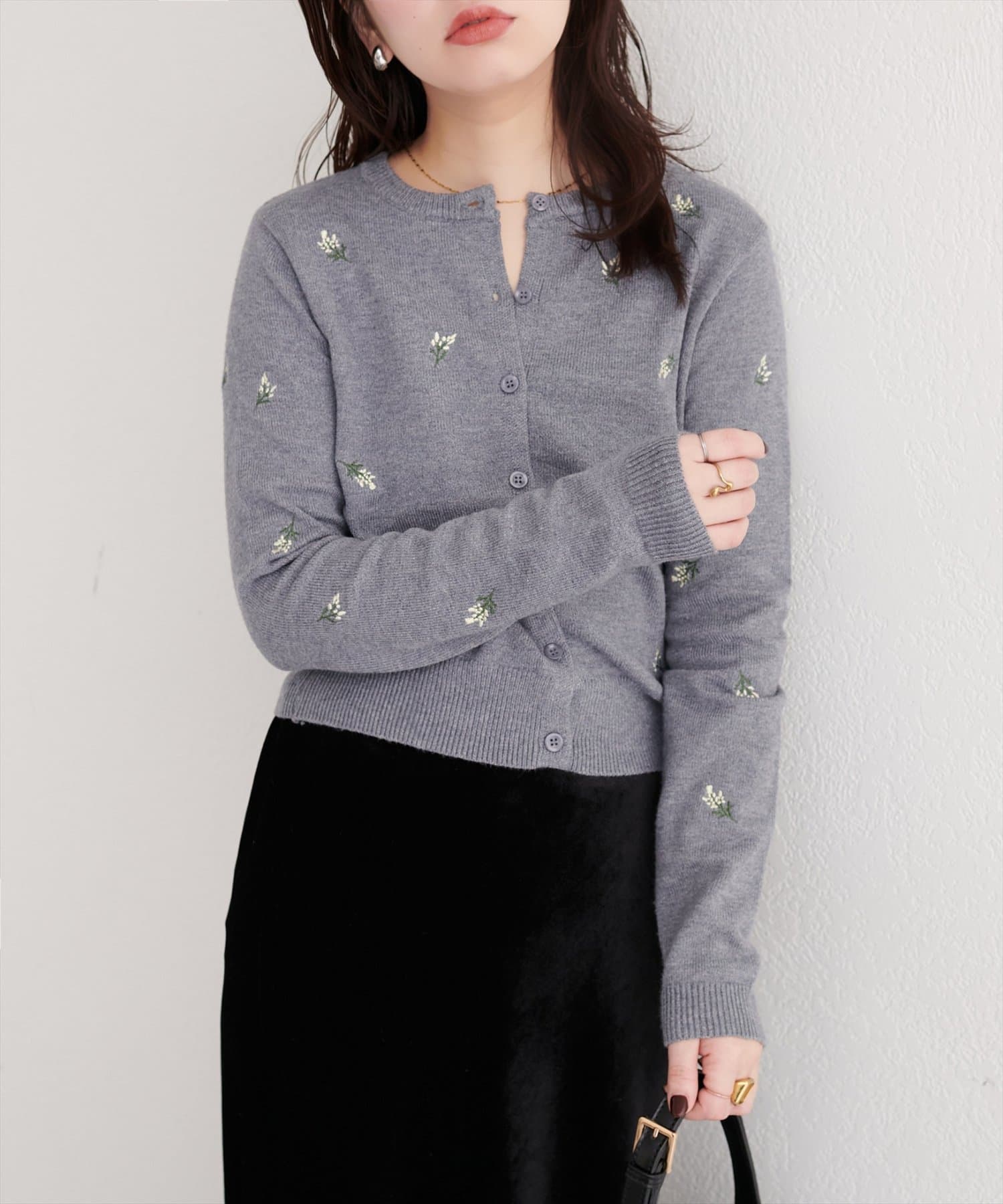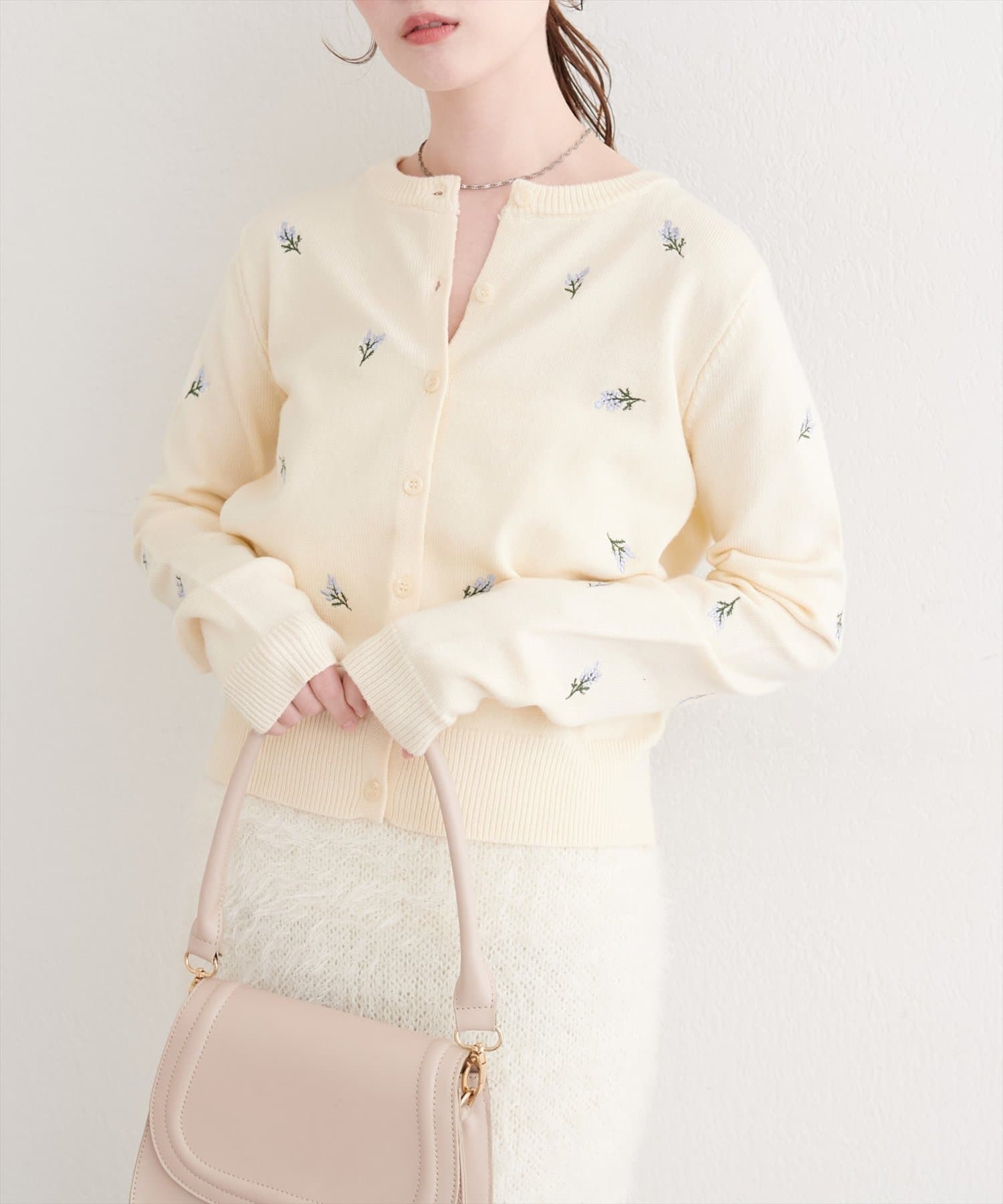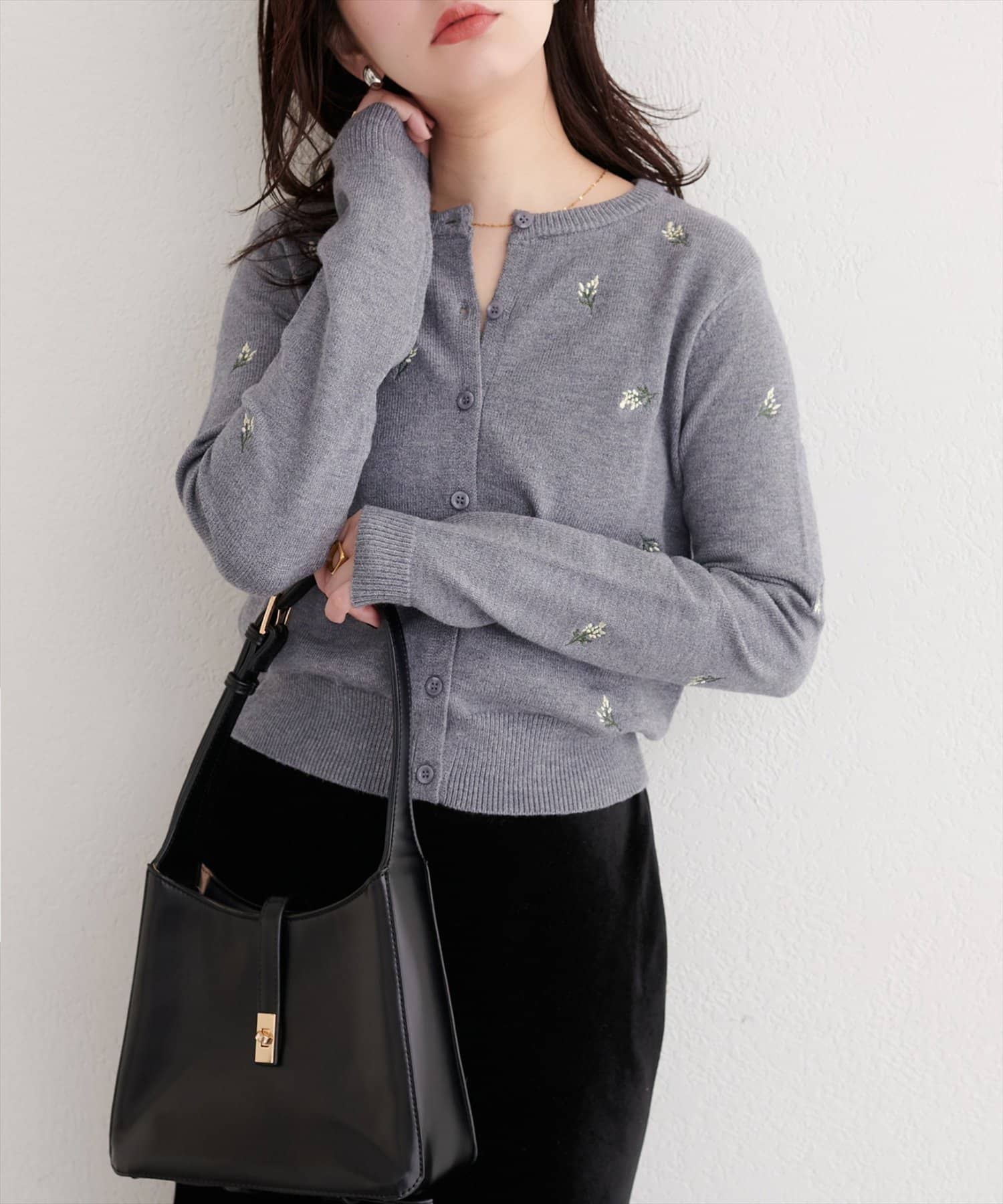 全体的に施された花柄の刺繍は、主張しすぎない上品なデザインで、