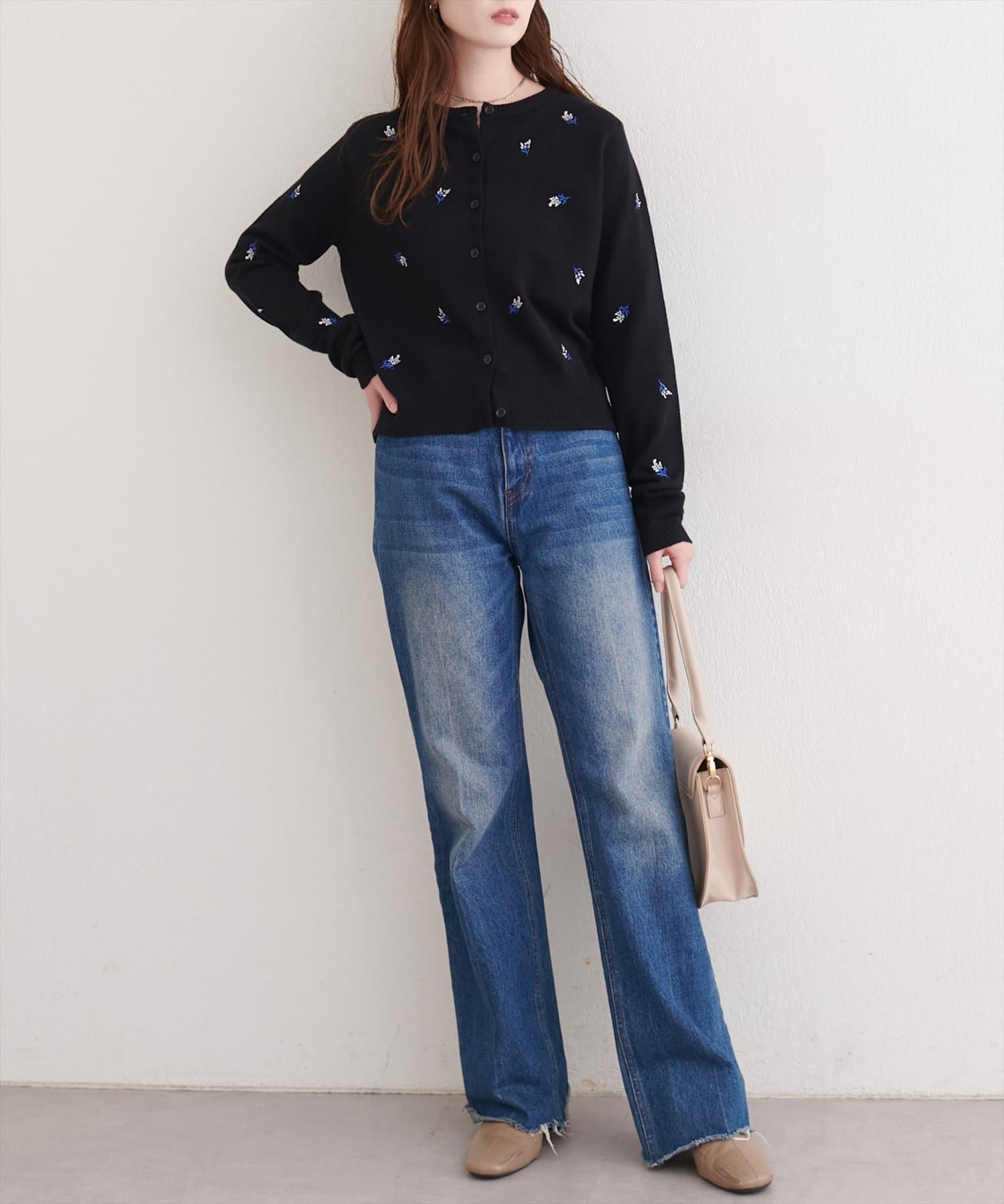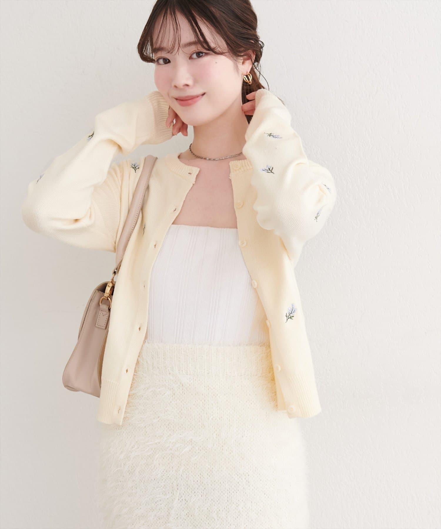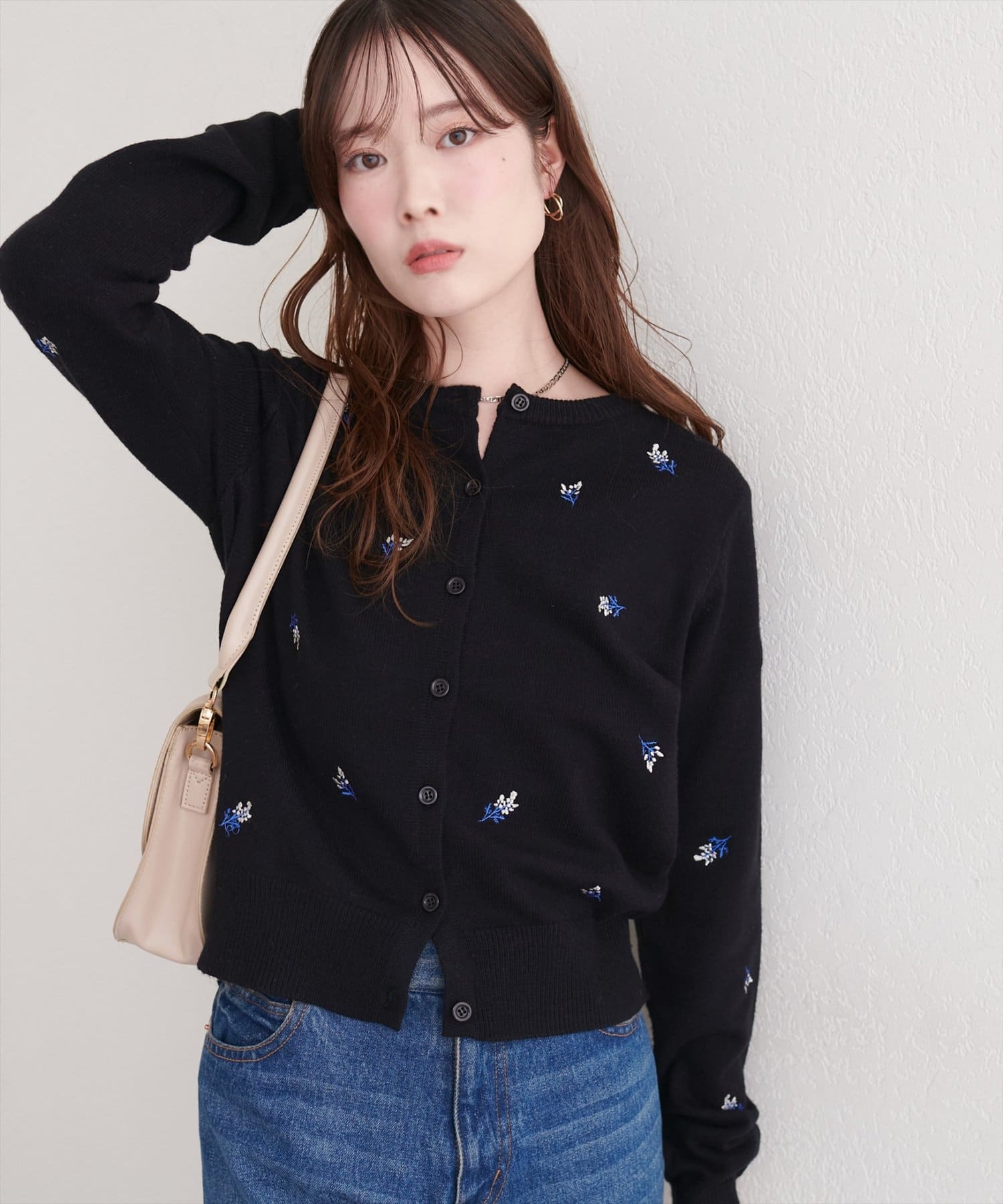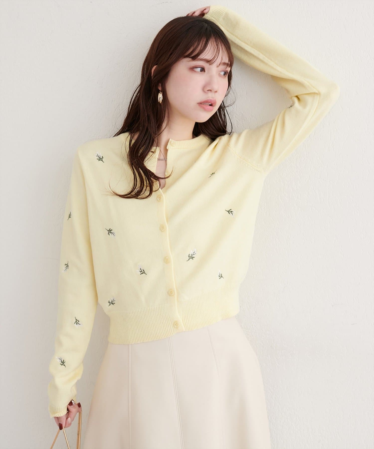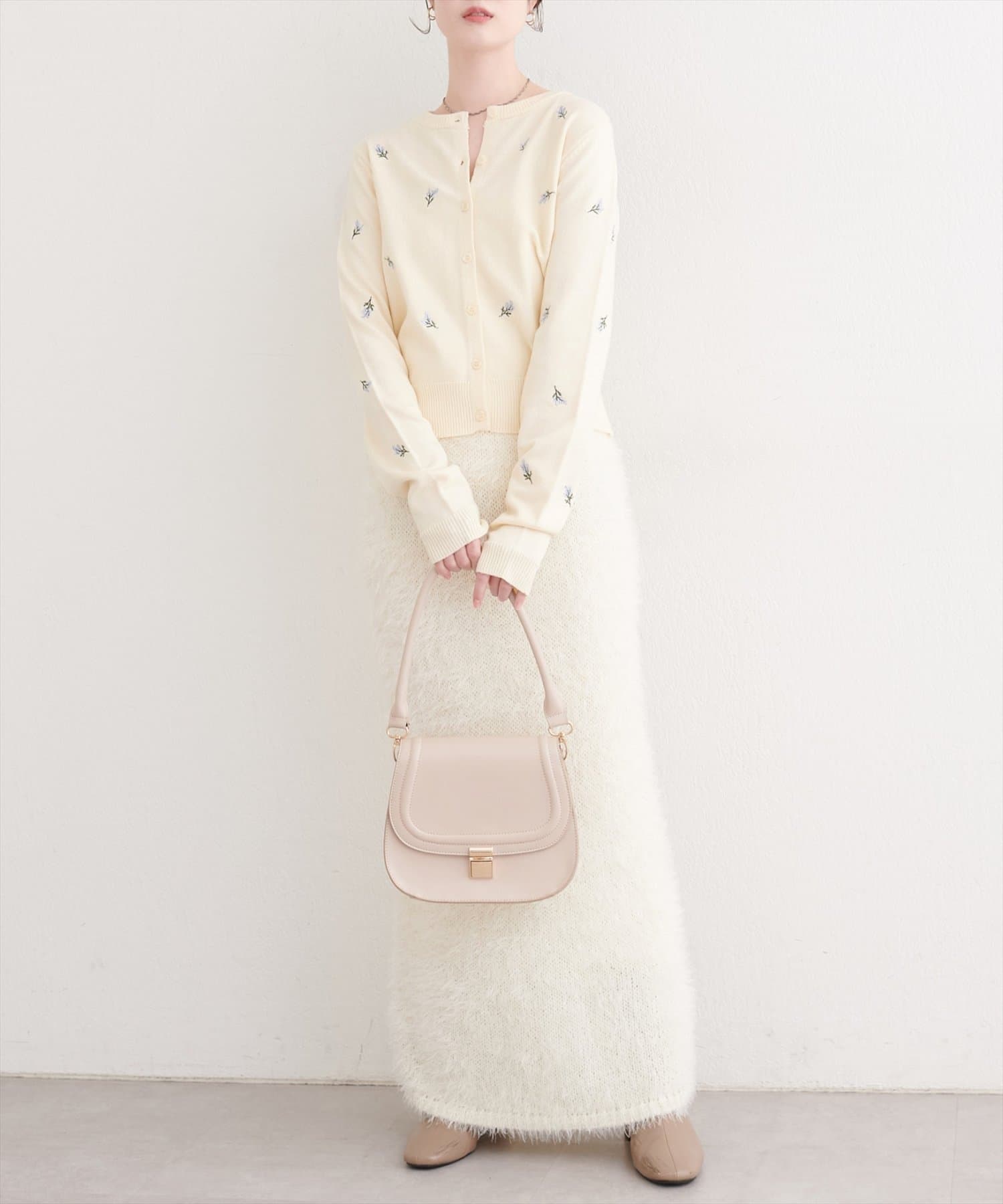 全体的に施された花柄の刺繍は、主張しすぎない上品なデザインで、