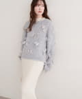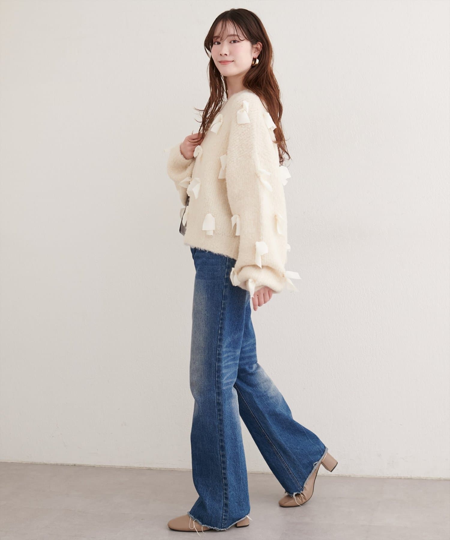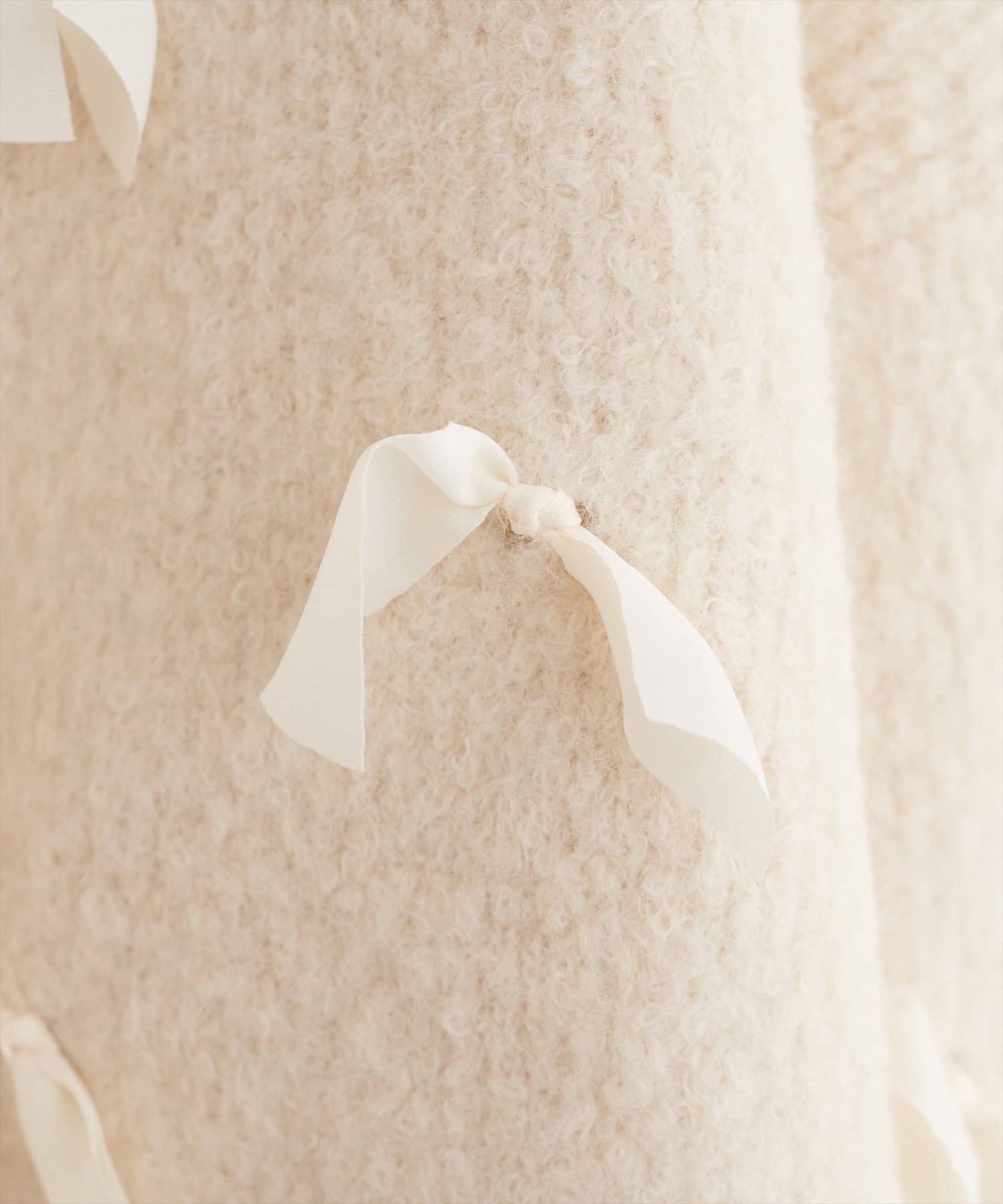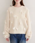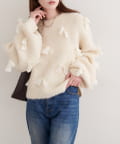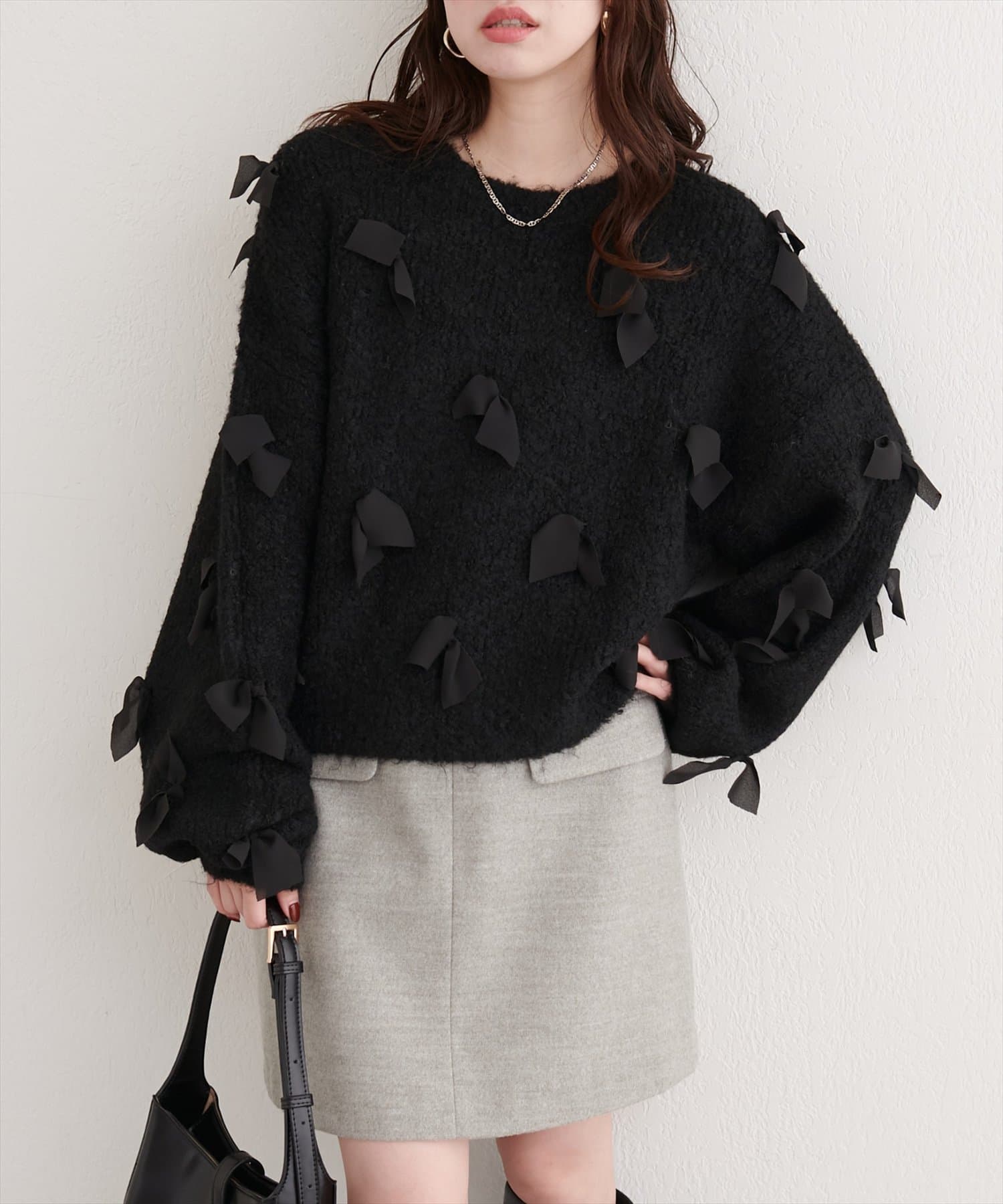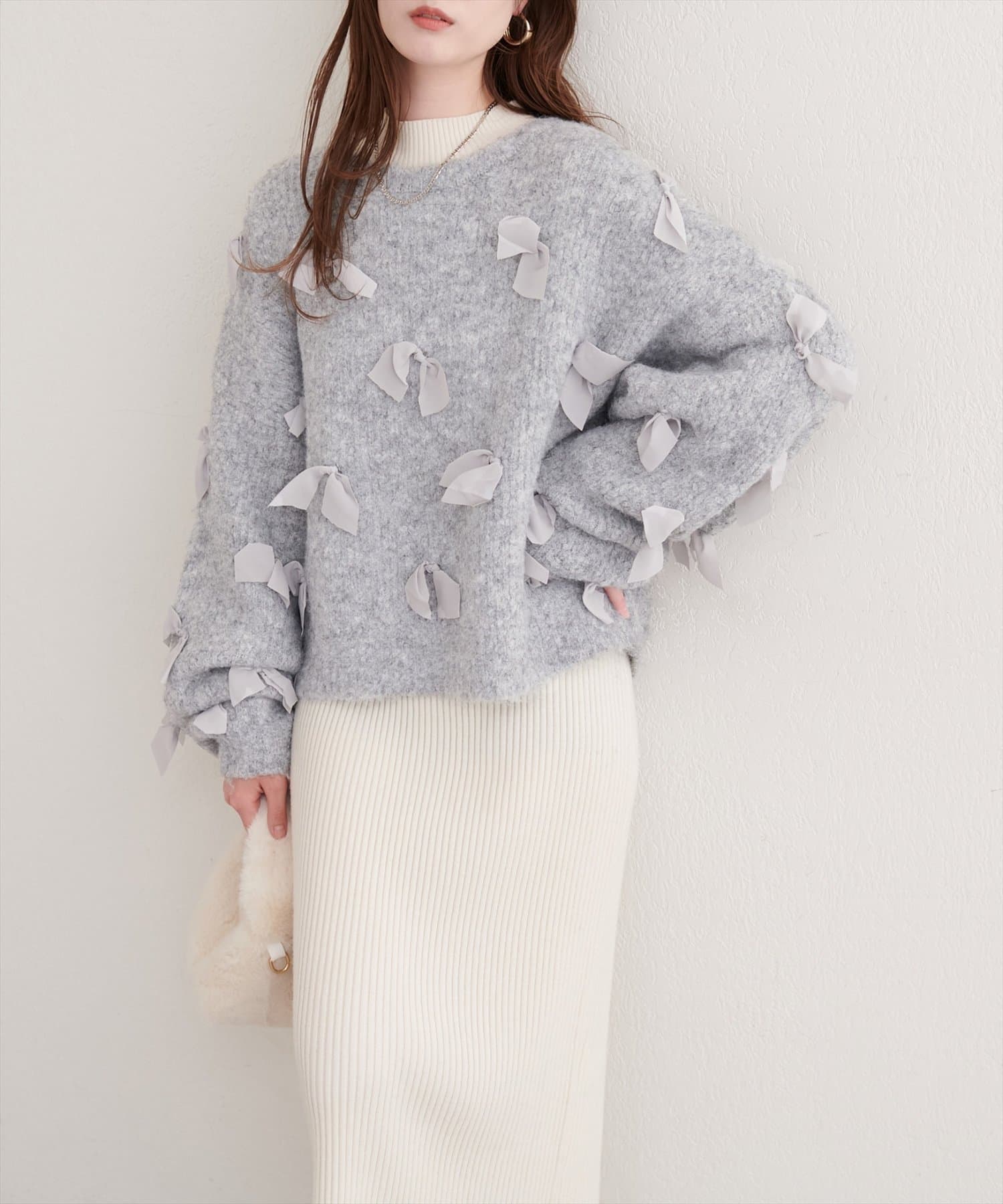 全体的にあしらわれた、愛らしいリボンが特徴的なニットアイテム。