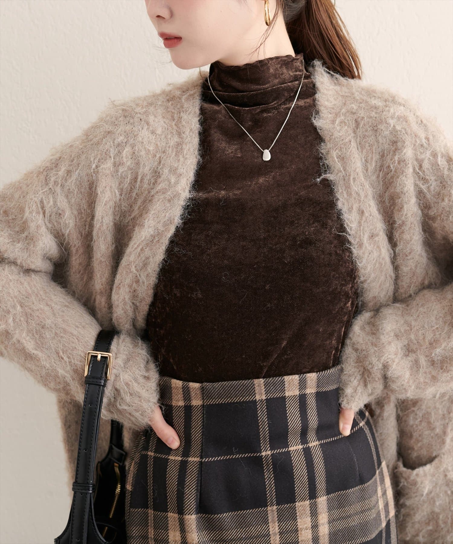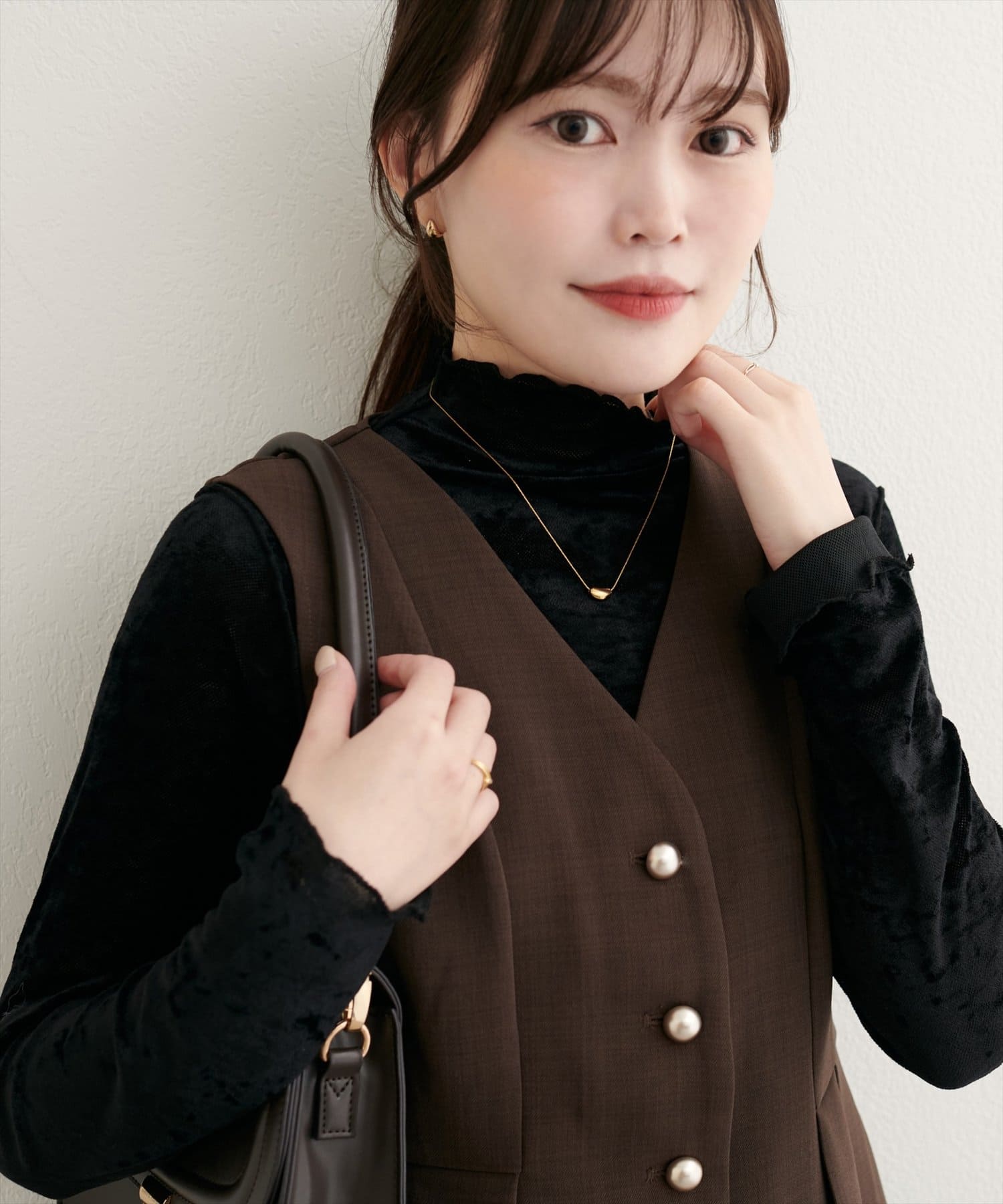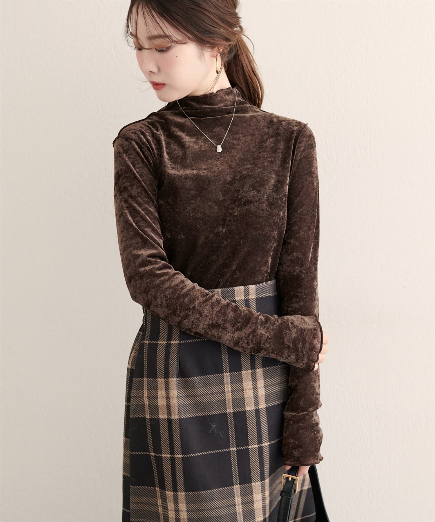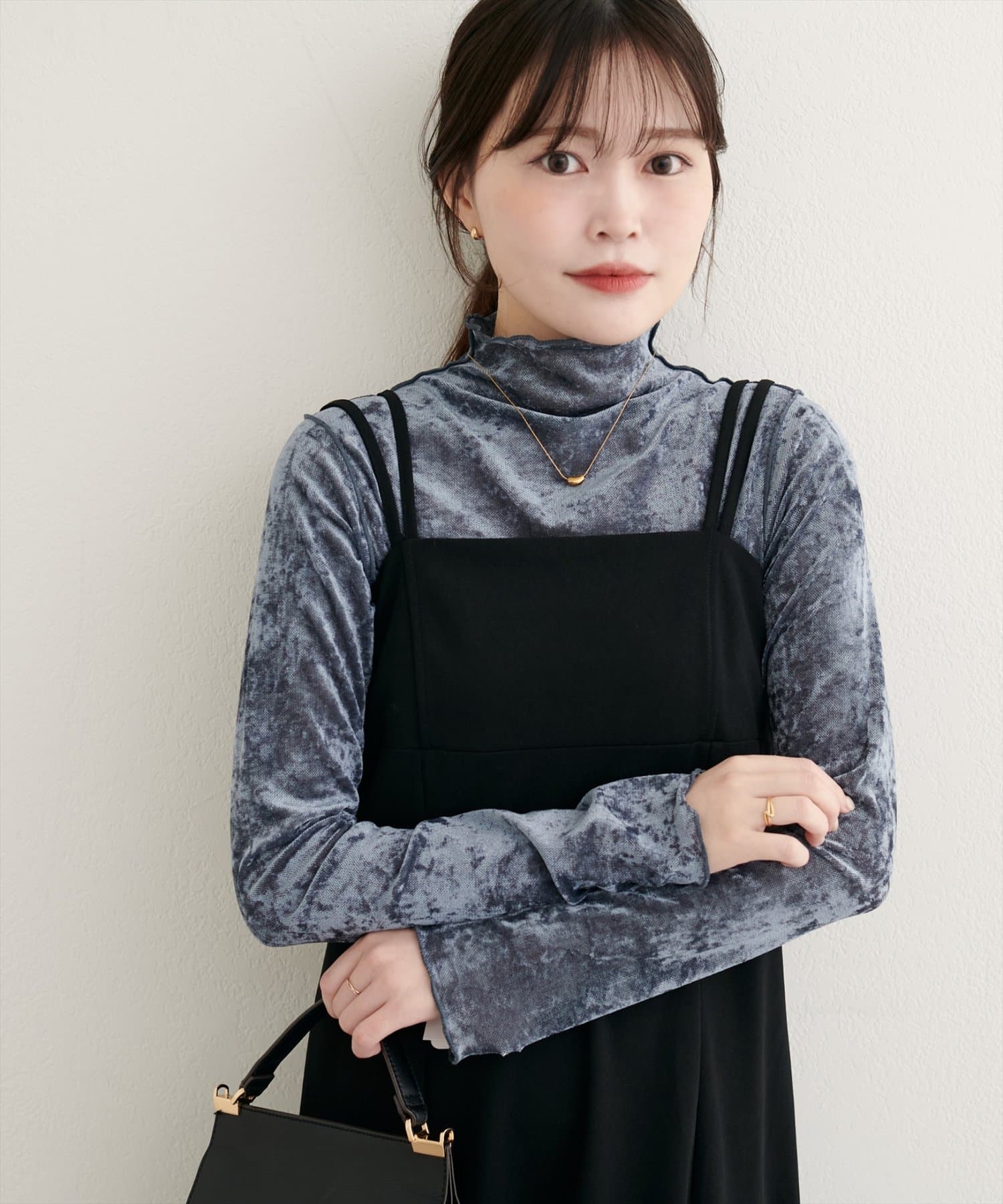 繊細な透け感と、上品なフロッキー加工が魅力のボトルネックプルオーバー。