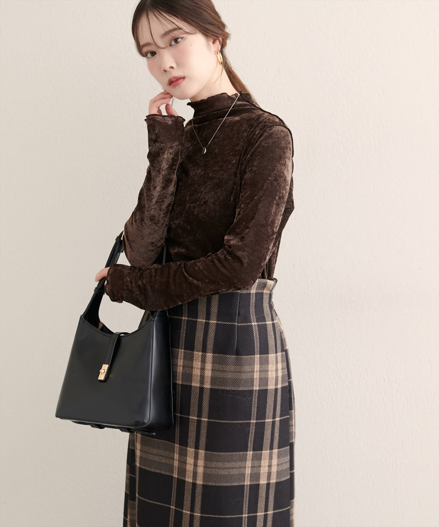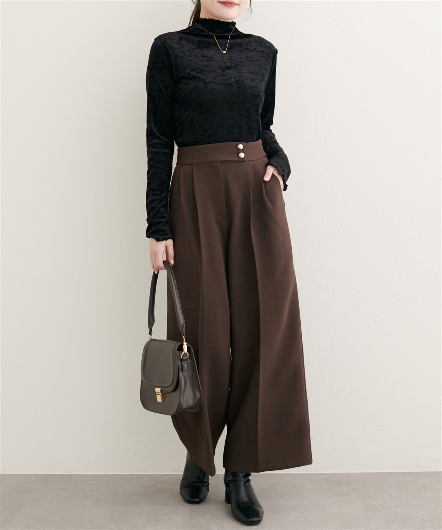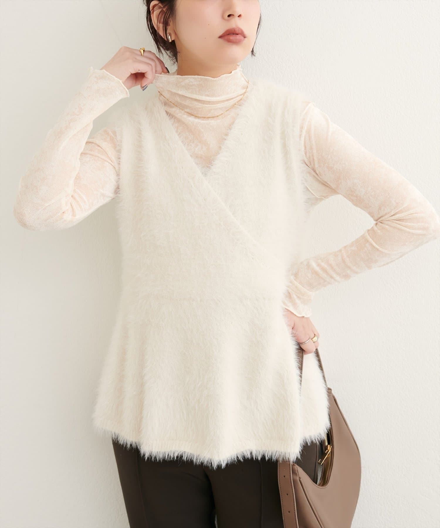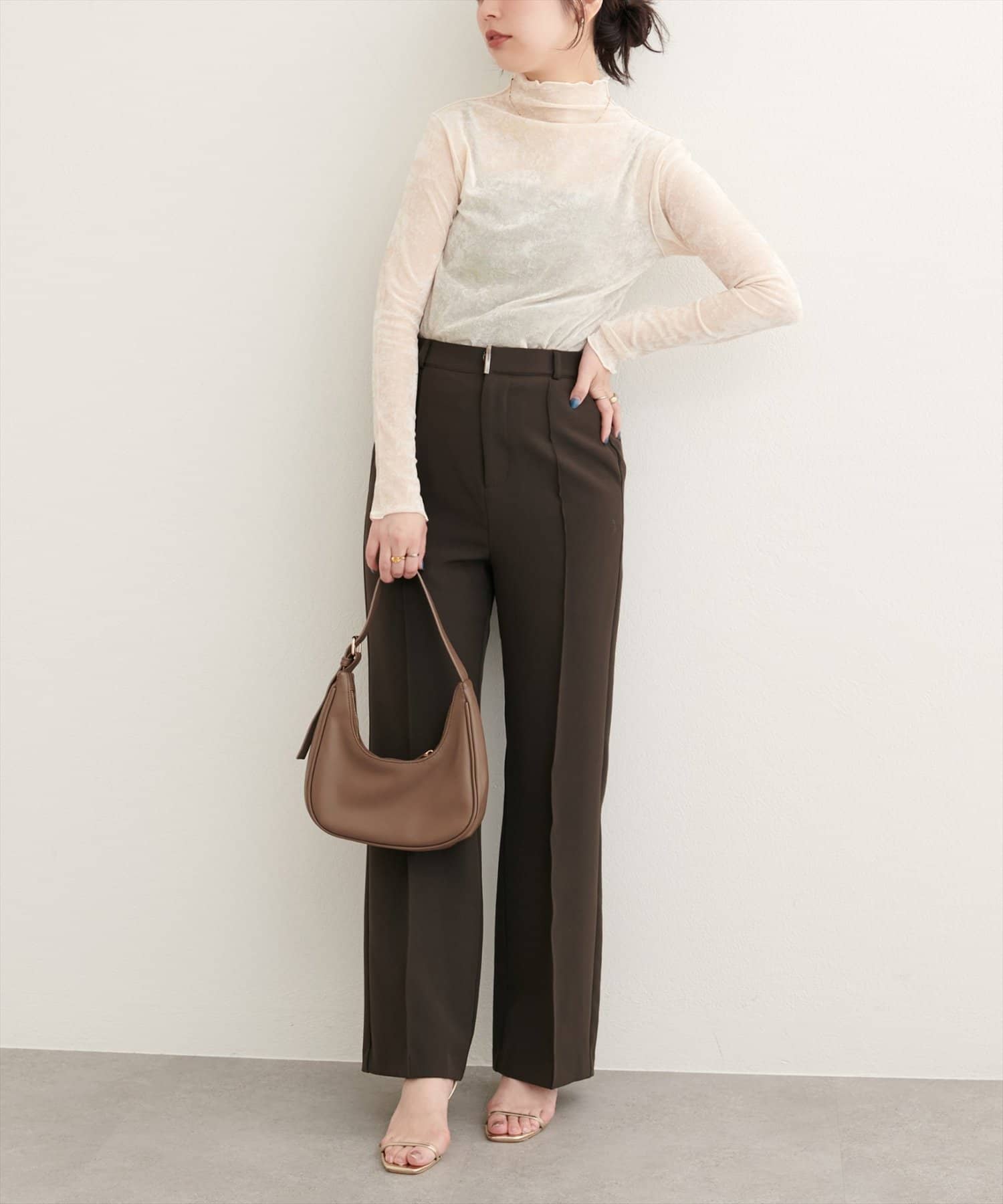 繊細な透け感と、上品なフロッキー加工が魅力のボトルネックプルオーバー。