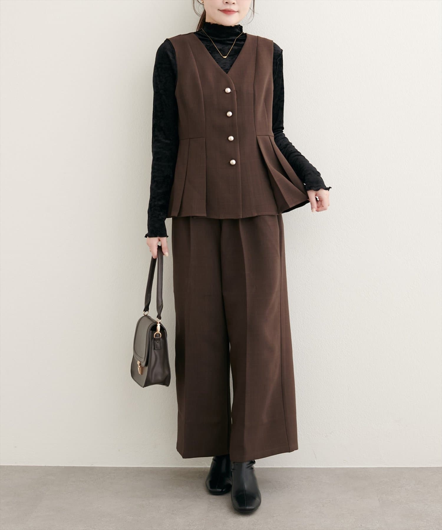 これからの季節は、上からジャケットやベストなどを合わせるコーデがおすすめ◎